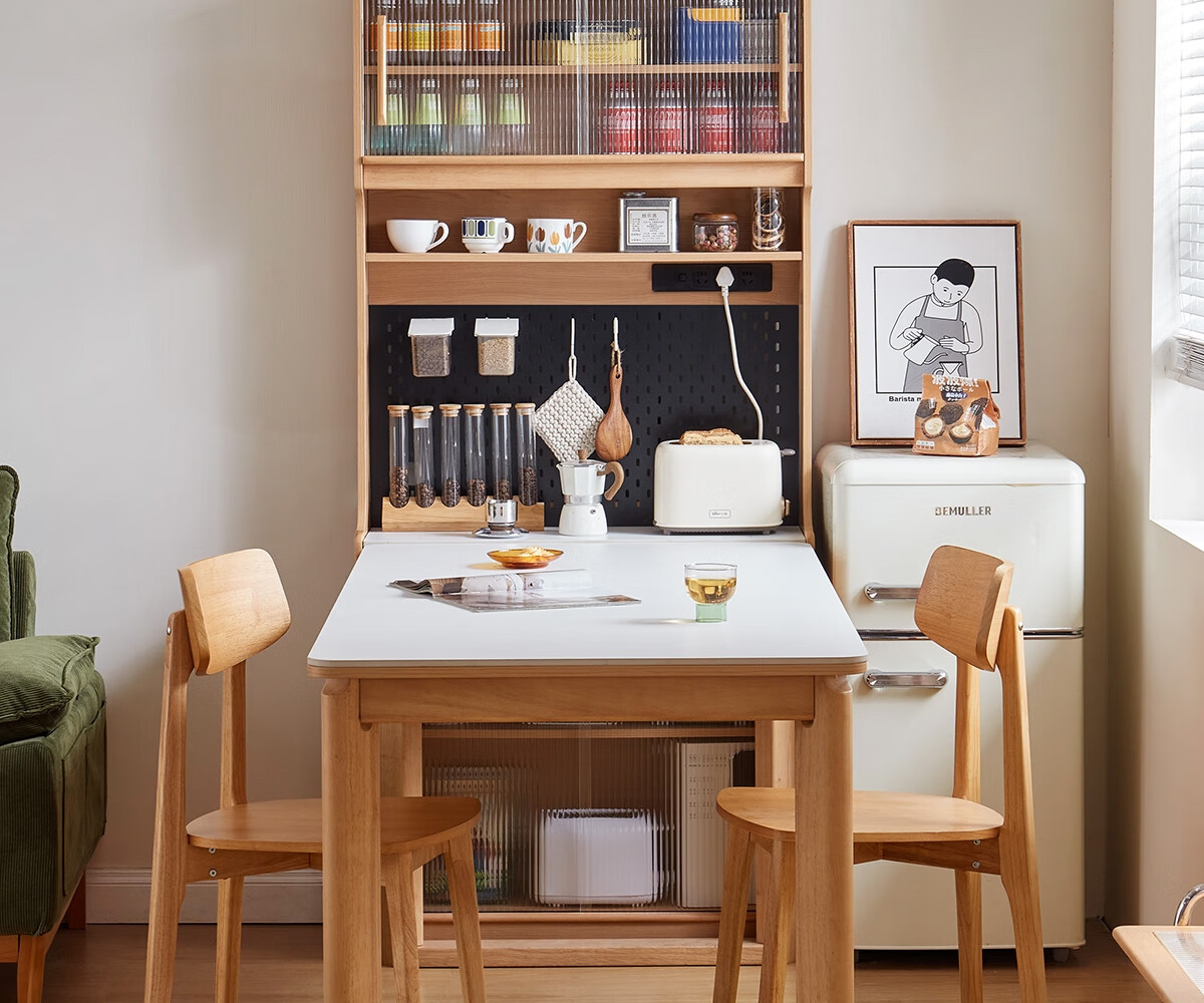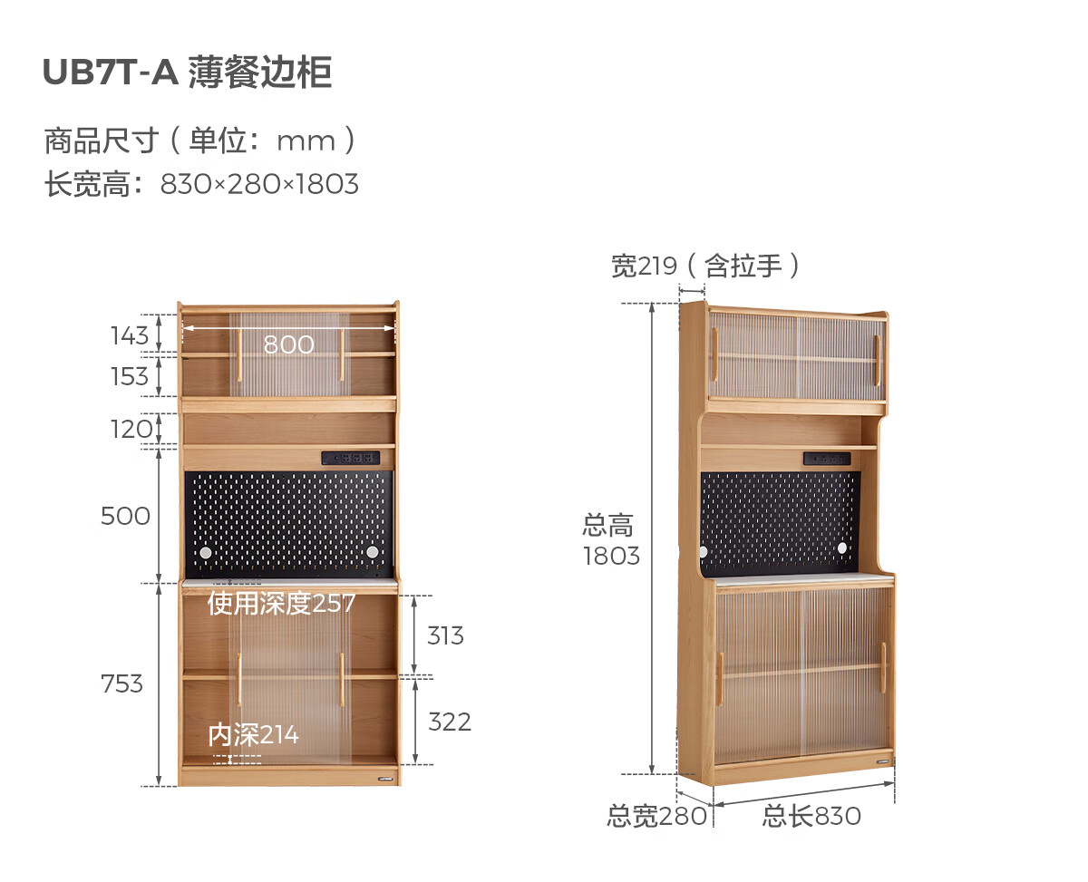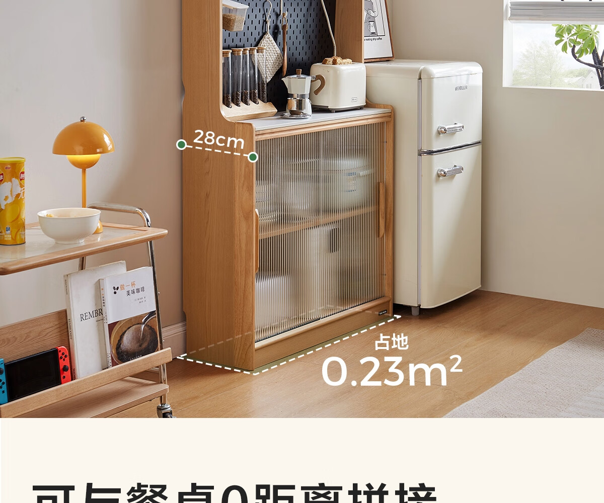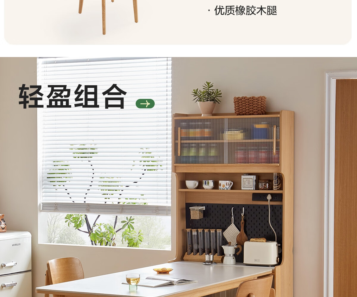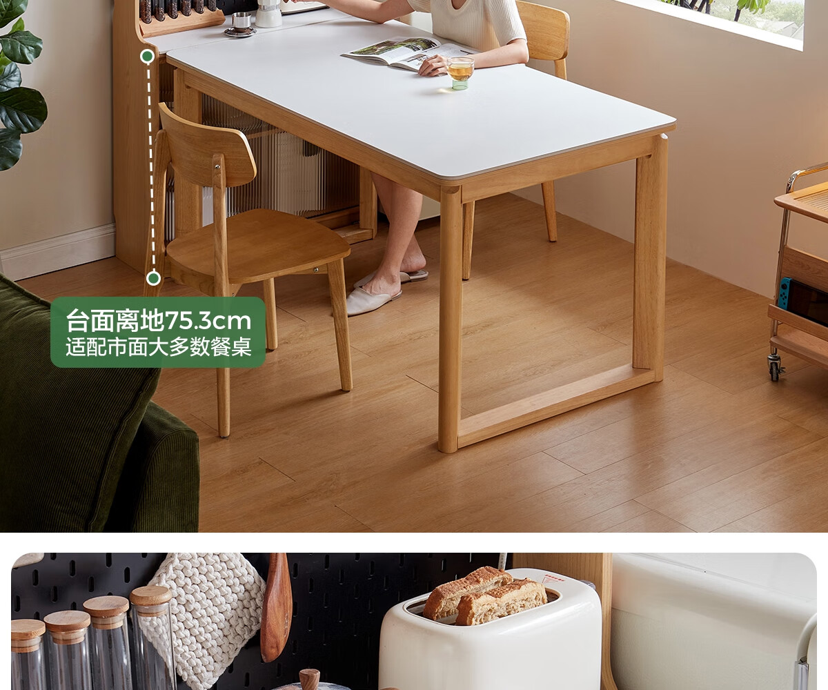 Lin's home sideboard wall-mounted integrated storage cabinet living room tea cabinet home with dining table storage cabinet Lin Mu series UB7T combination 0.8m sideboard + 1.4m5R dining table