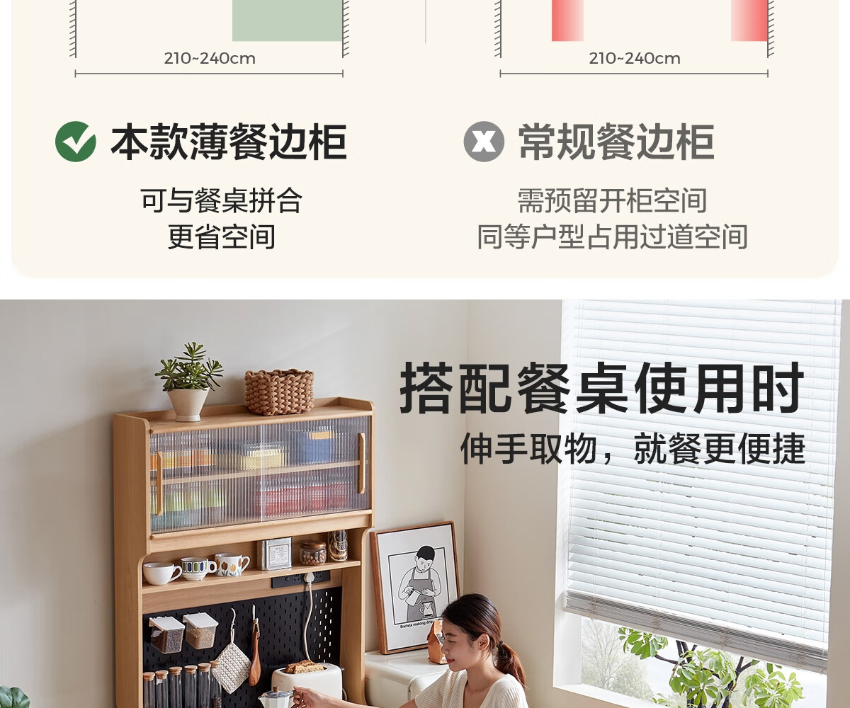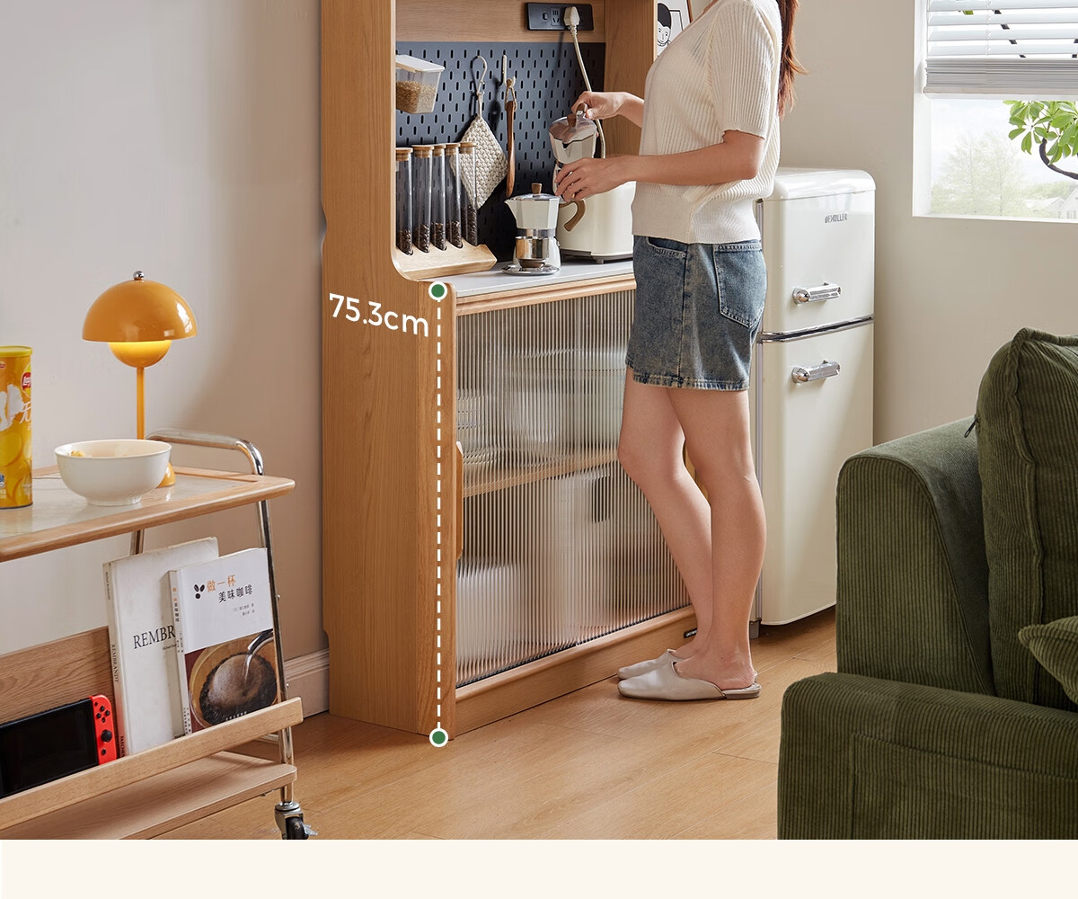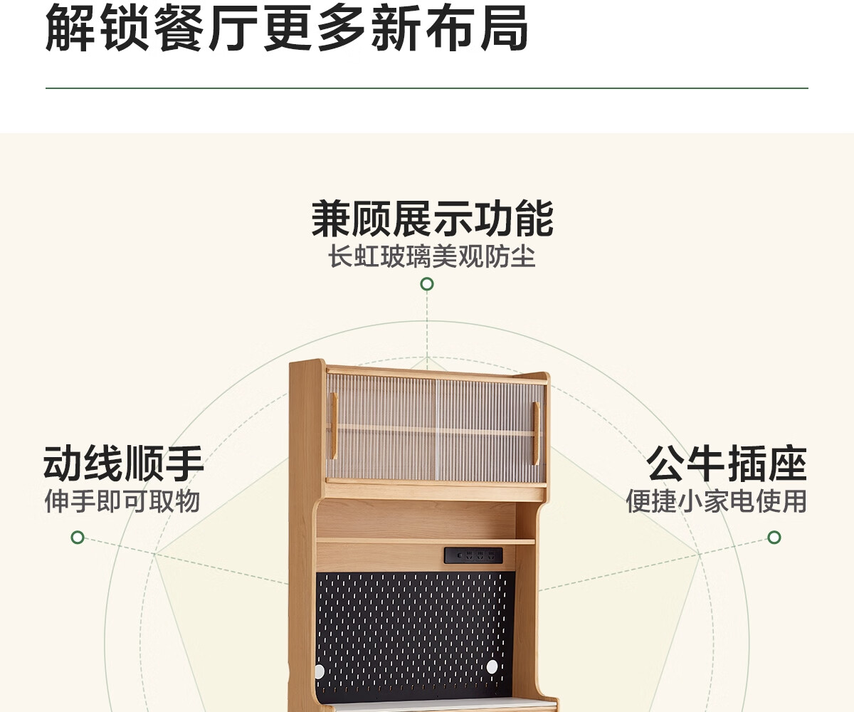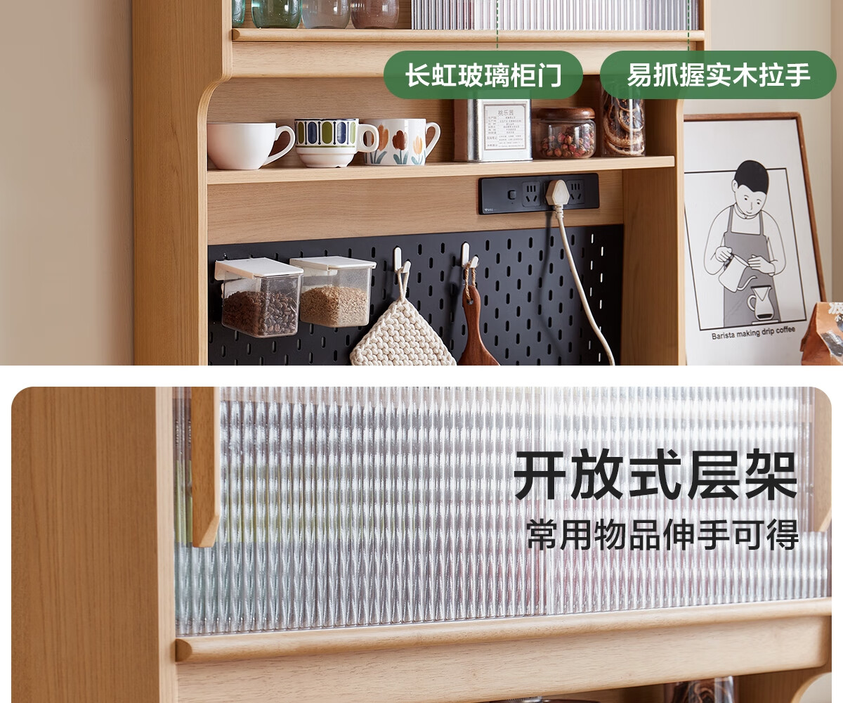 Lin's home sideboard wall-mounted integrated storage cabinet living room tea cabinet home with dining table storage cabinet Lin Mu series UB7T combination 0.8m sideboard + 1.4m5R dining table