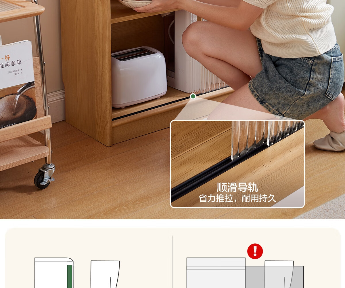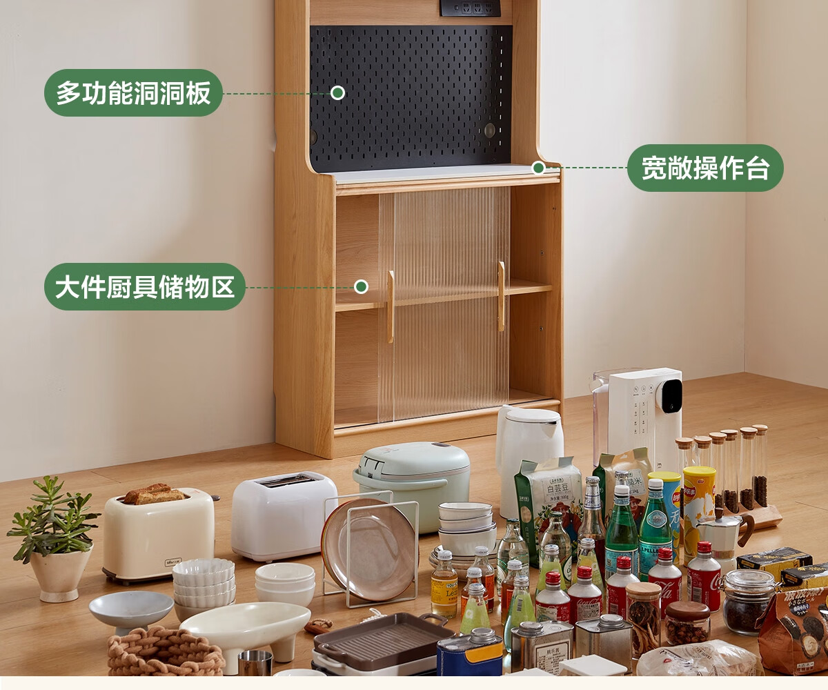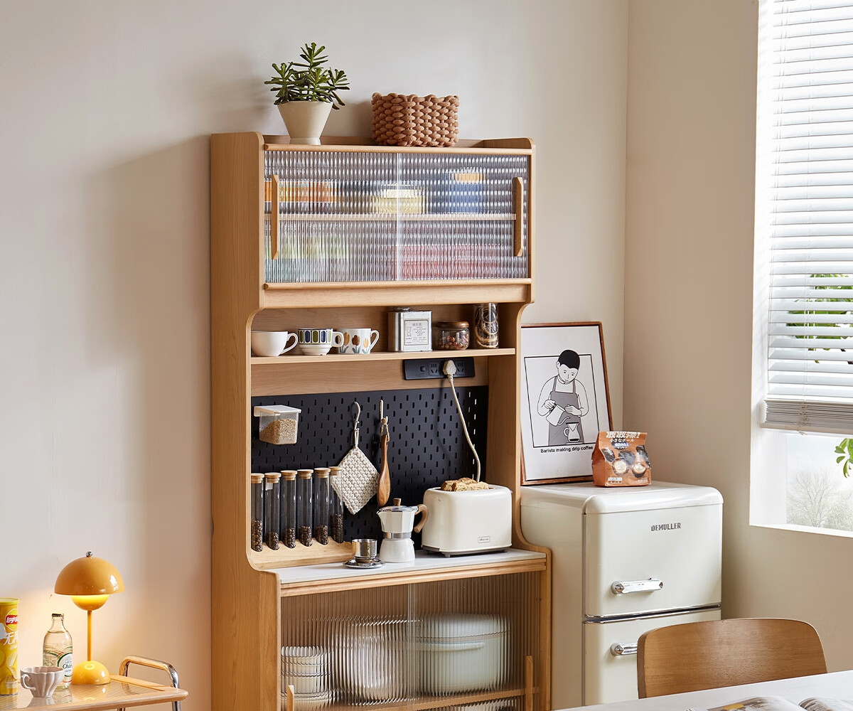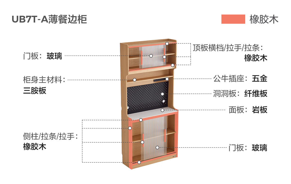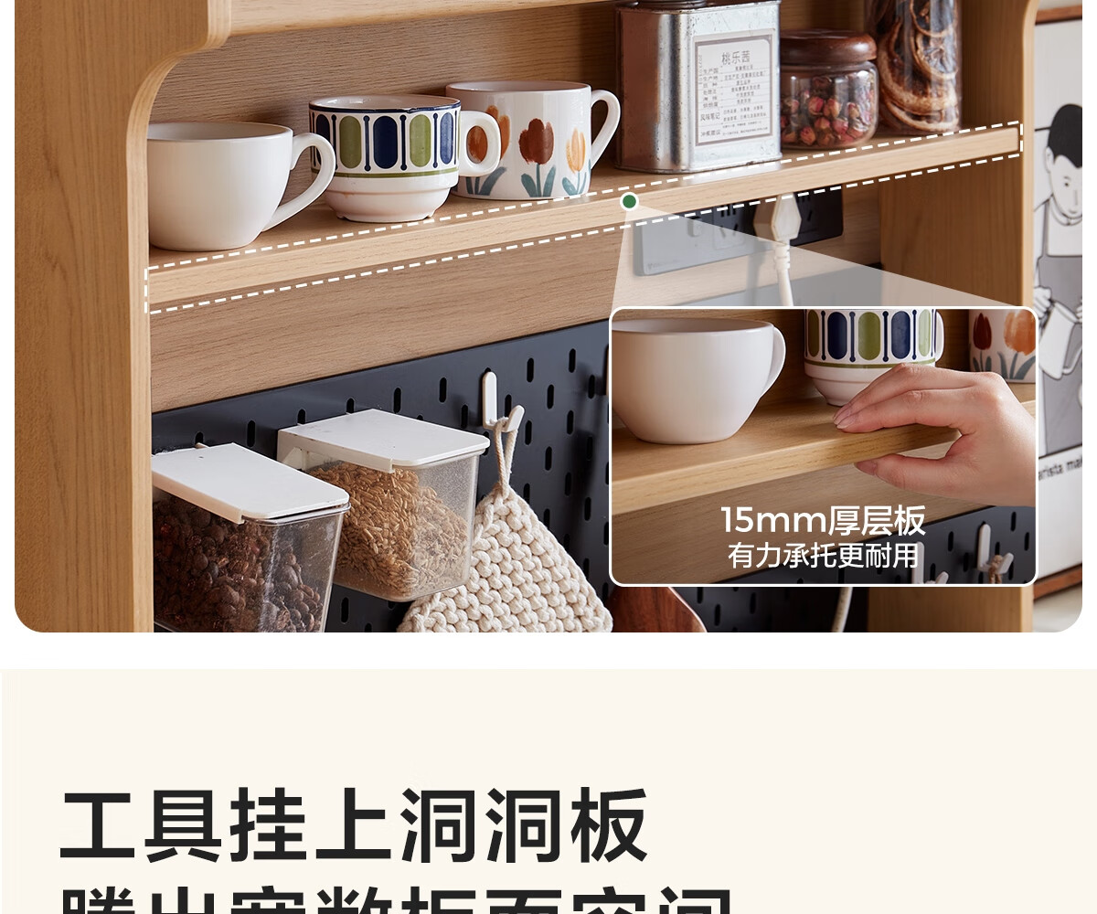 Lin's home sideboard wall-mounted integrated storage cabinet living room tea cabinet home with dining table storage cabinet Lin Mu series UB7T combination 0.8m sideboard + 1.4m5R dining table