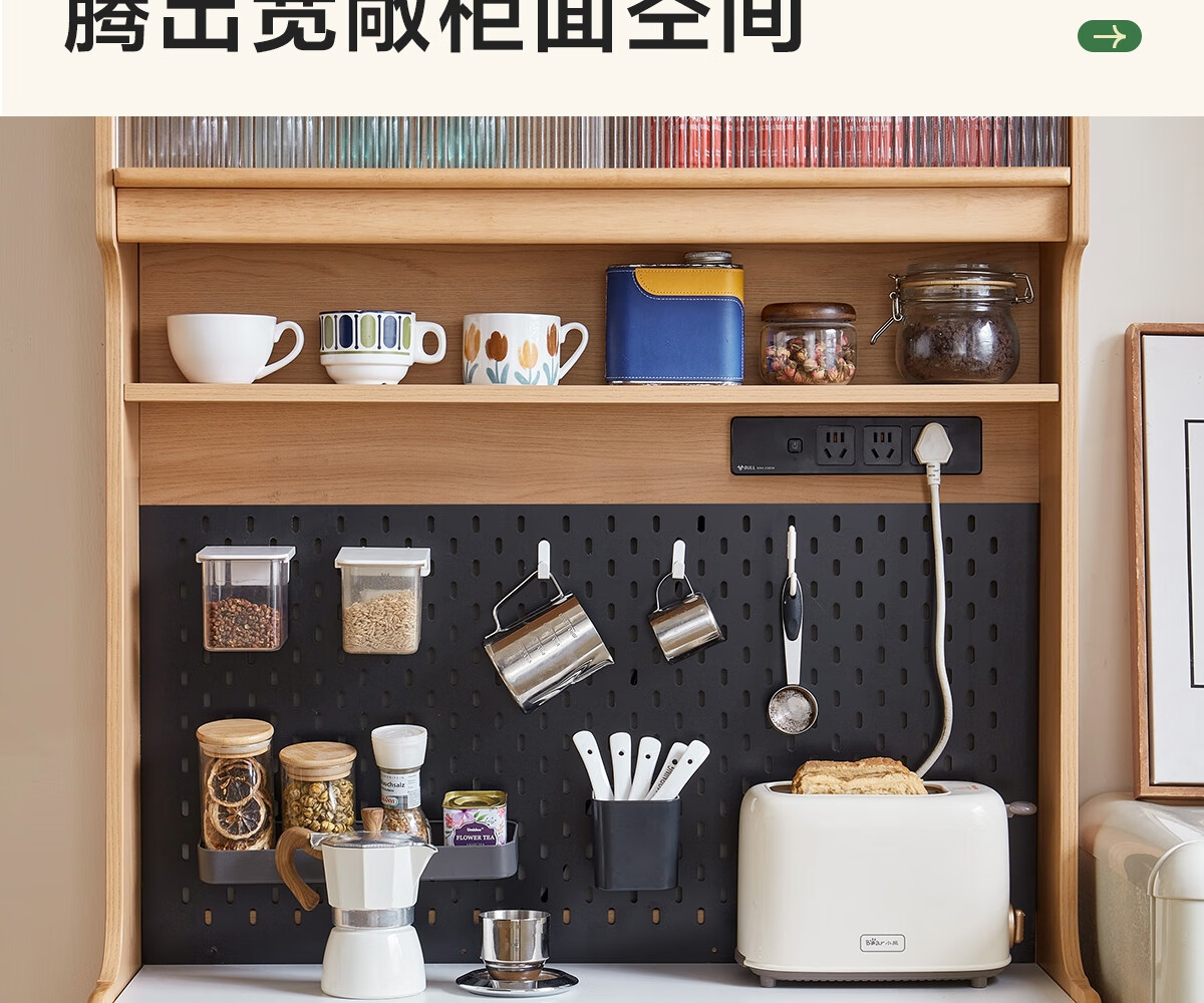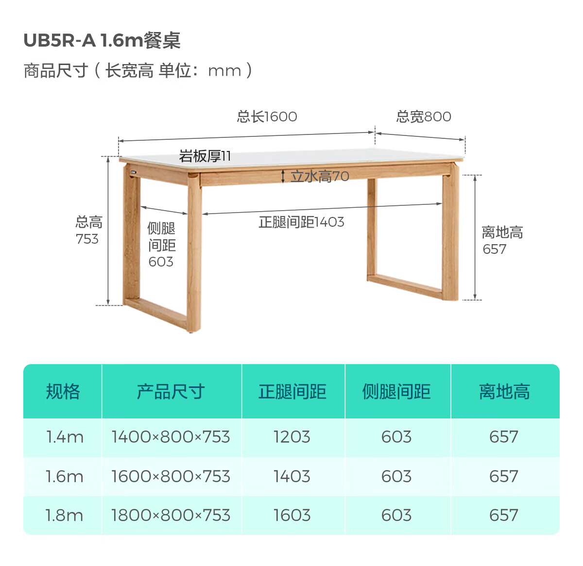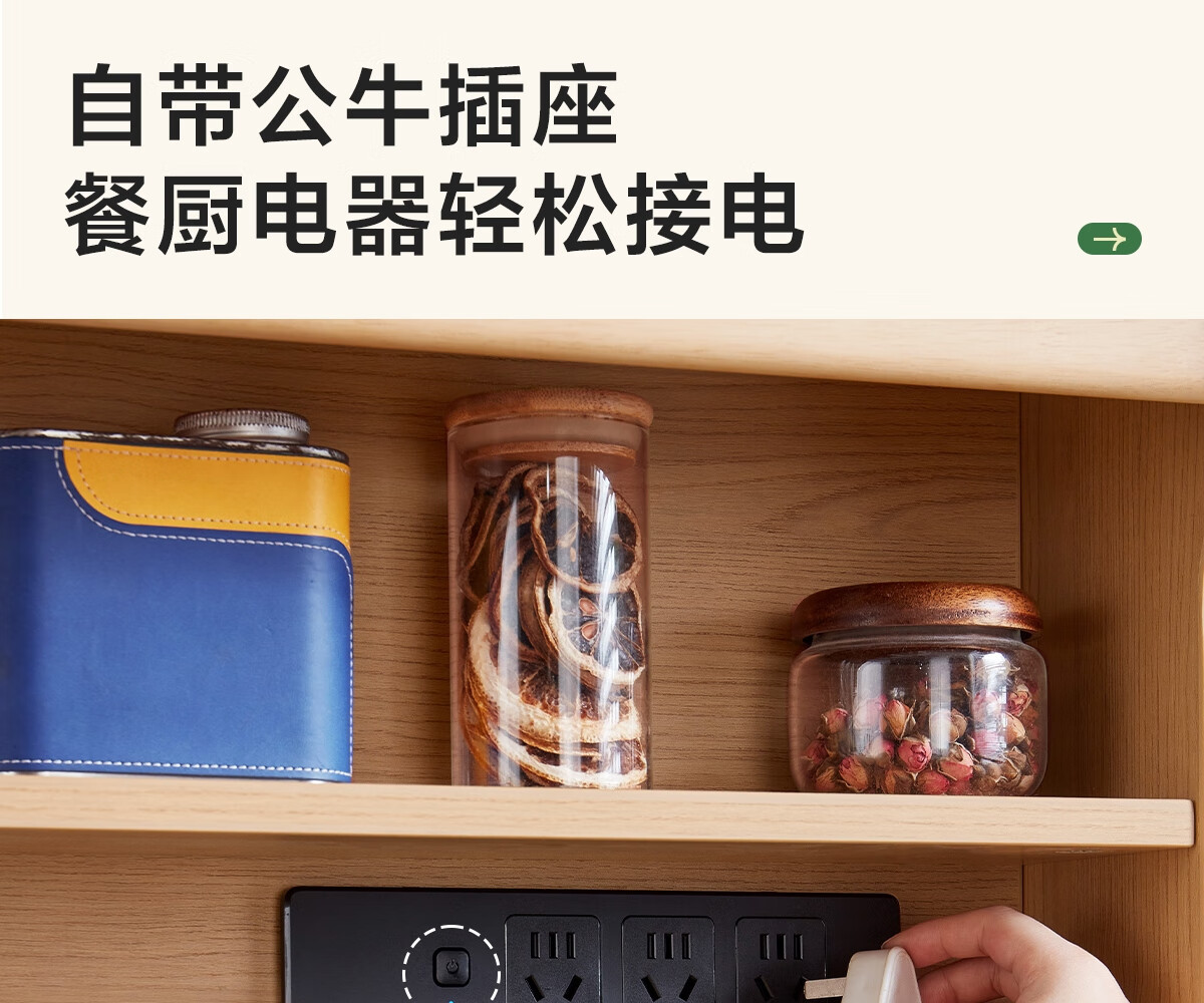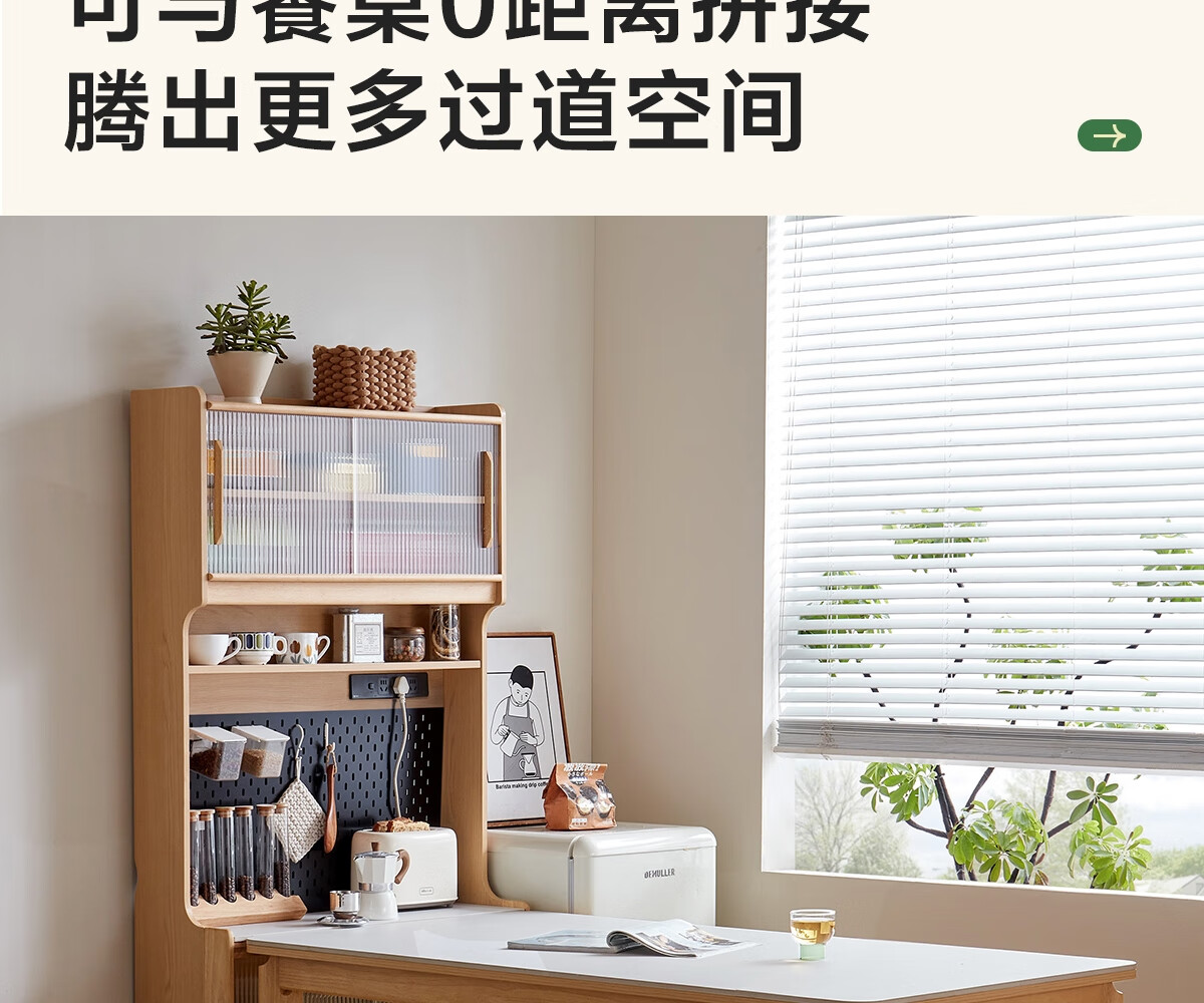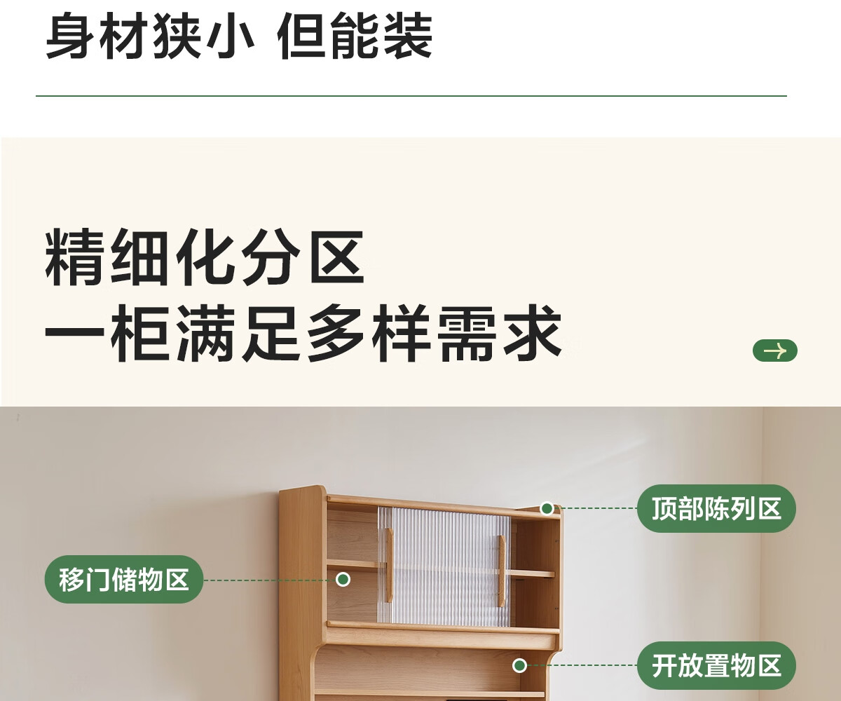 Lin's home sideboard wall-mounted integrated storage cabinet living room tea cabinet home with dining table storage cabinet Lin Mu series UB7T combination 0.8m sideboard + 1.4m5R dining table