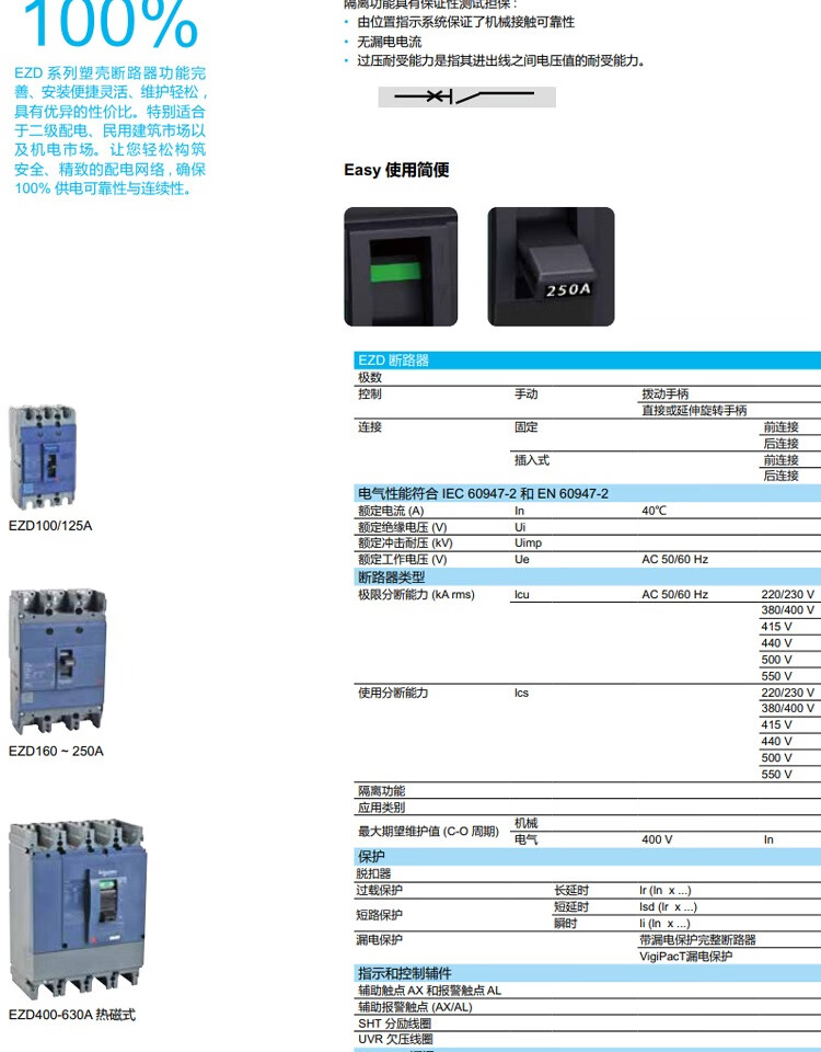 Schneider Electric EZD100E/160E/250E/400E/630E4PEZD series molded case circuit breaker EZD400E4P400AEZD400E4400K