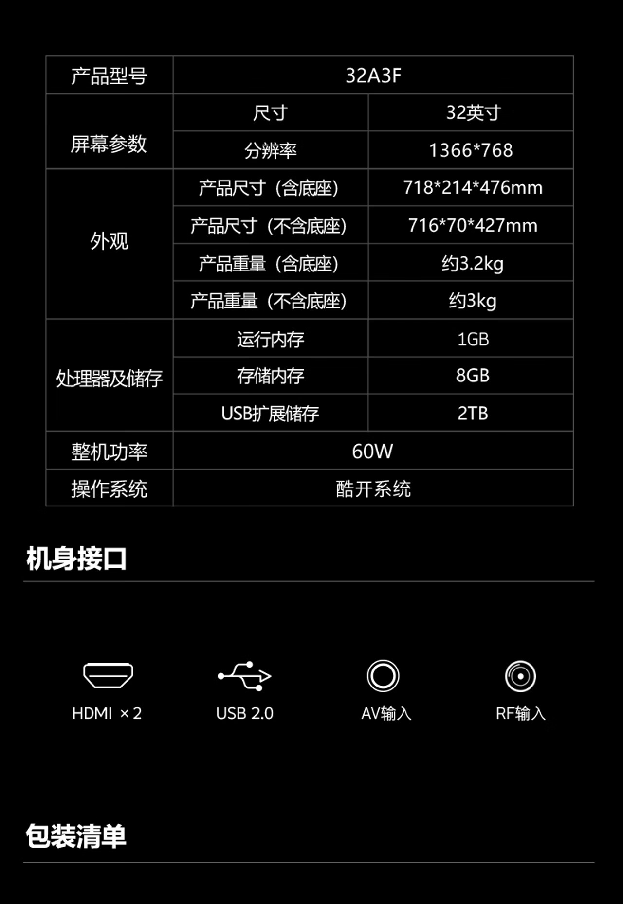 Skyworth 32A3F full HD ultra-thin full screen smart wifi network home bedroom wireless projection tablet educational game LCD mobile office 32 inches 32 inches door installation 32A3F + single column bracket