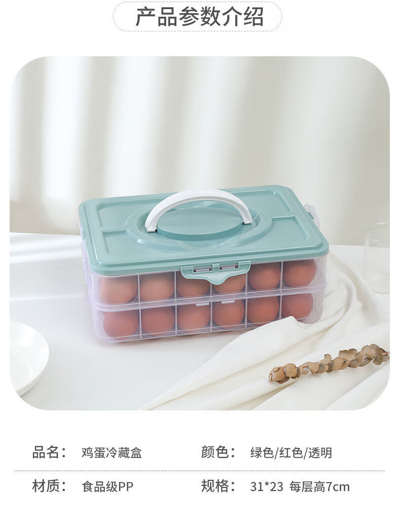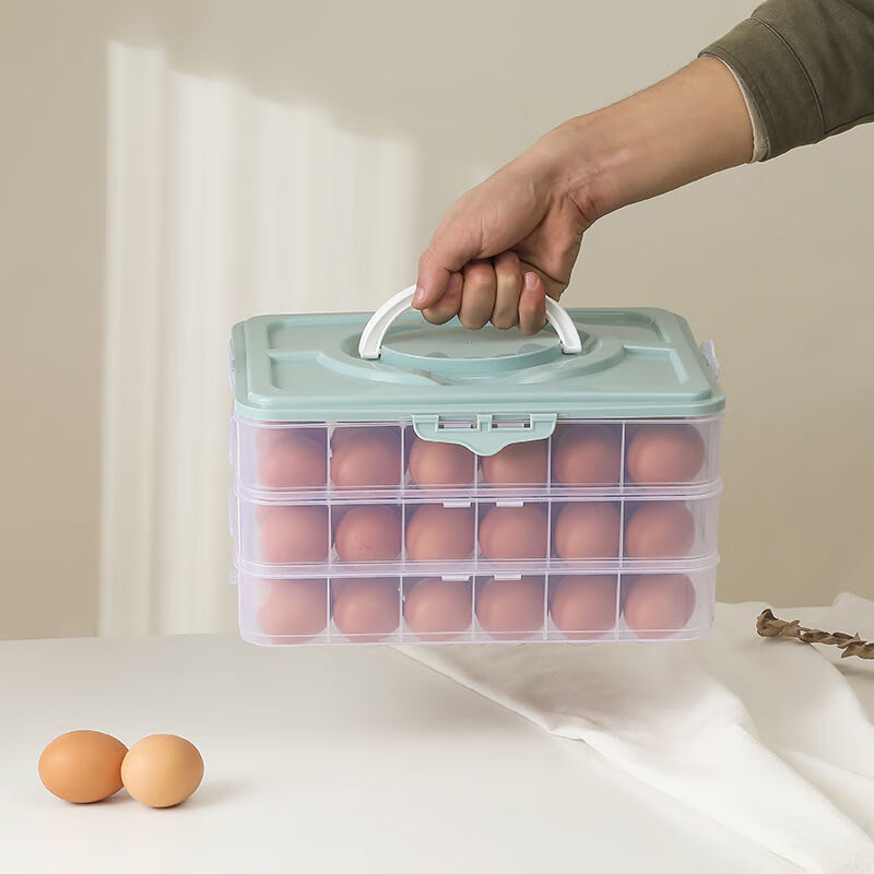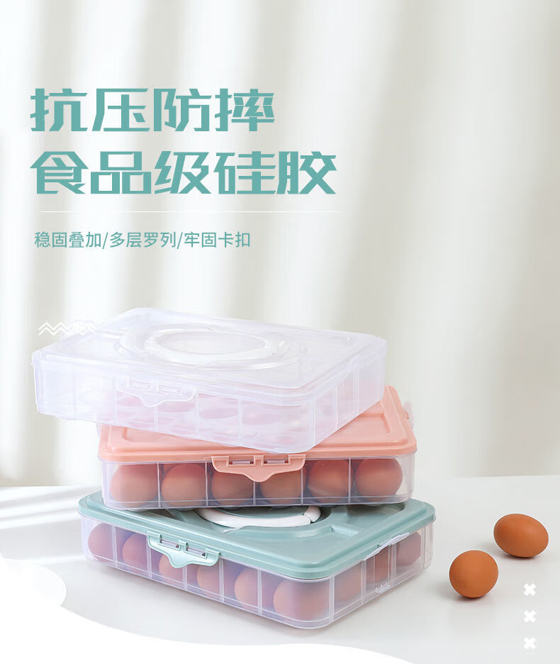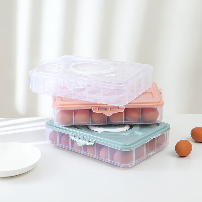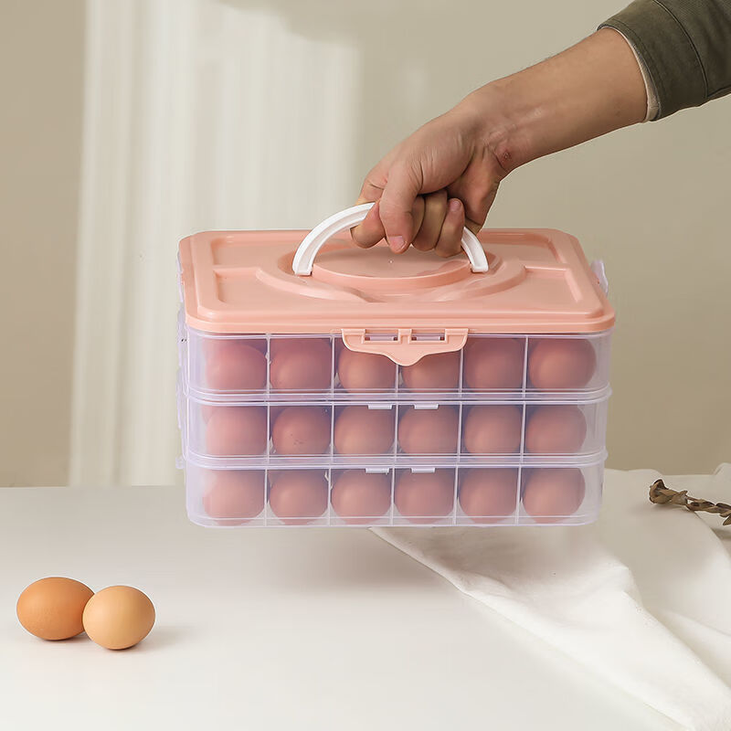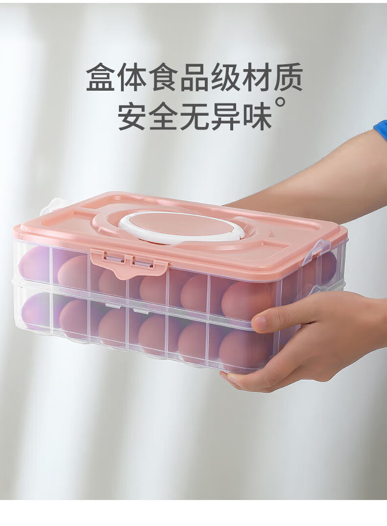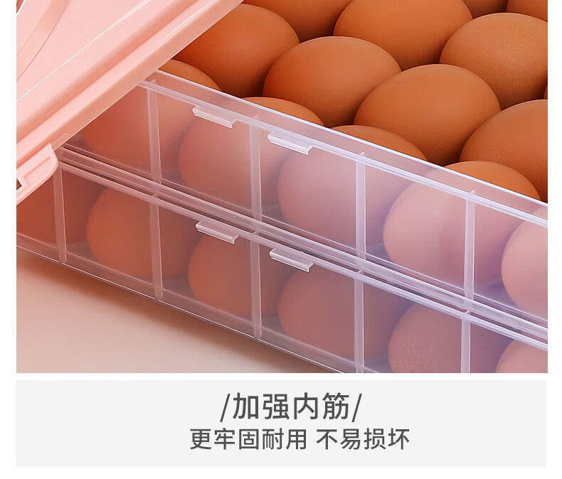 An Junsheng portable egg box refrigerator egg storage box egg tray food preservation box storage box with lid for egg boxes pink (excluding eggs) enhanced double-breasted 2 layers 1 cover 48 compartments