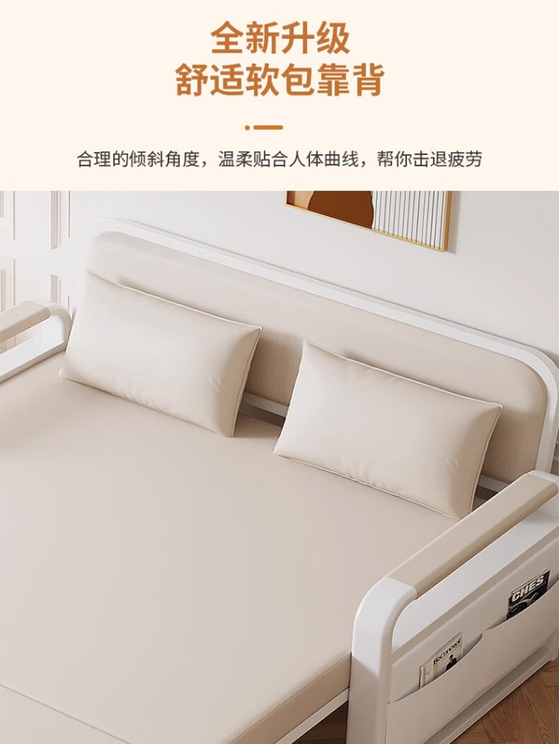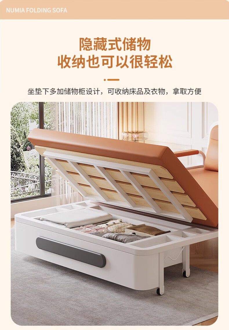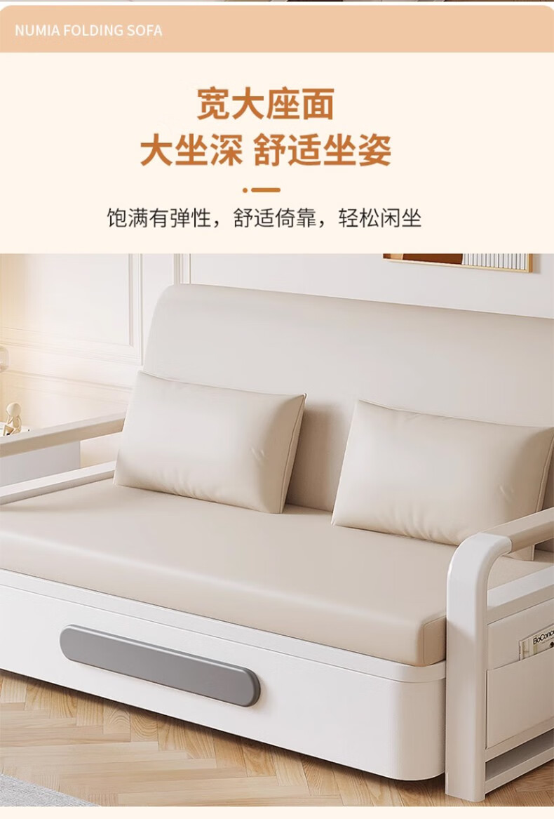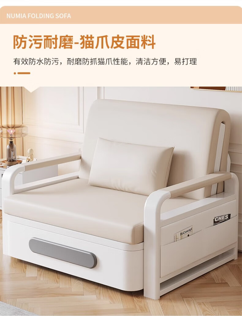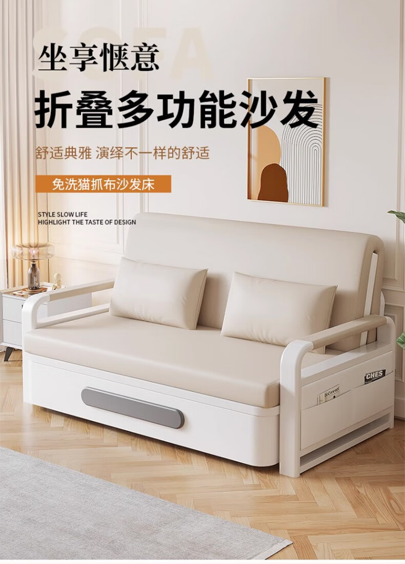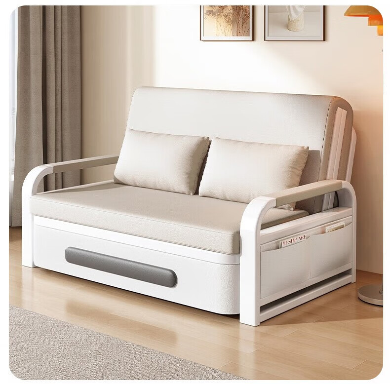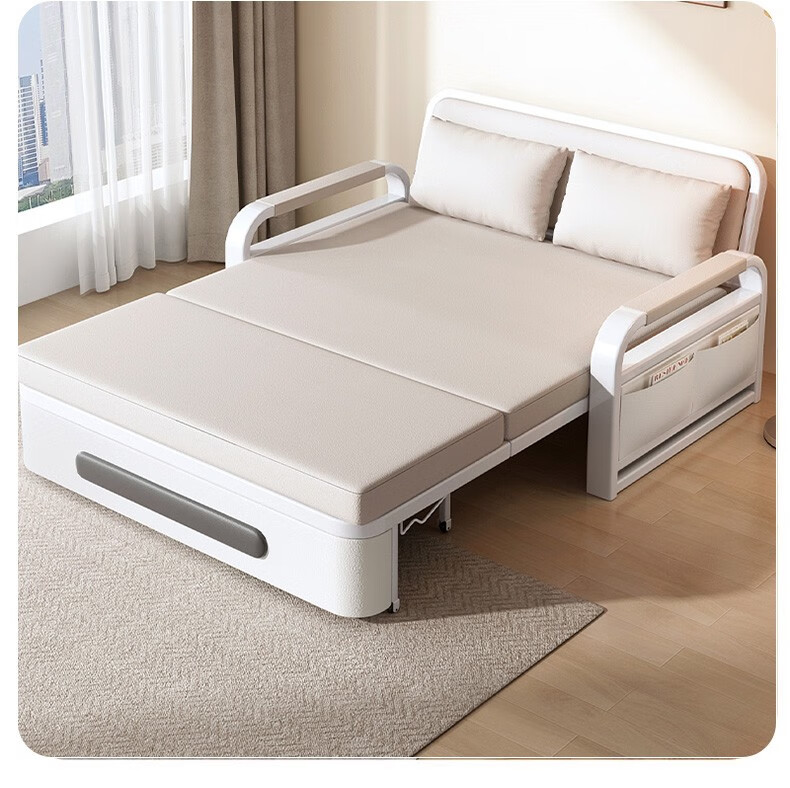 Folding sofa bed dual-purpose multi-functional small apartment folding dual-purpose telescopic bed pull-out living room storage simple sofa white frame off-white cat claw leather 1.2m storage +7cm sponge