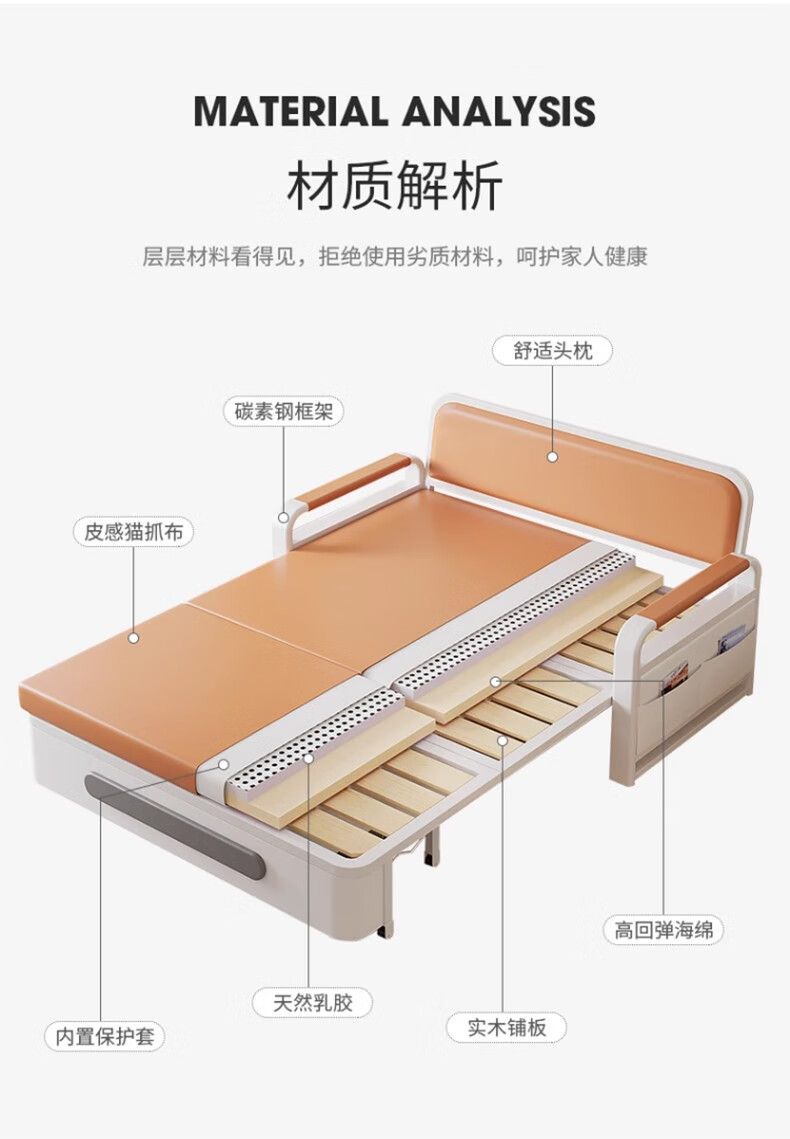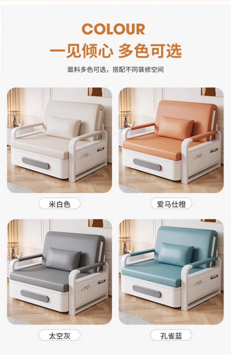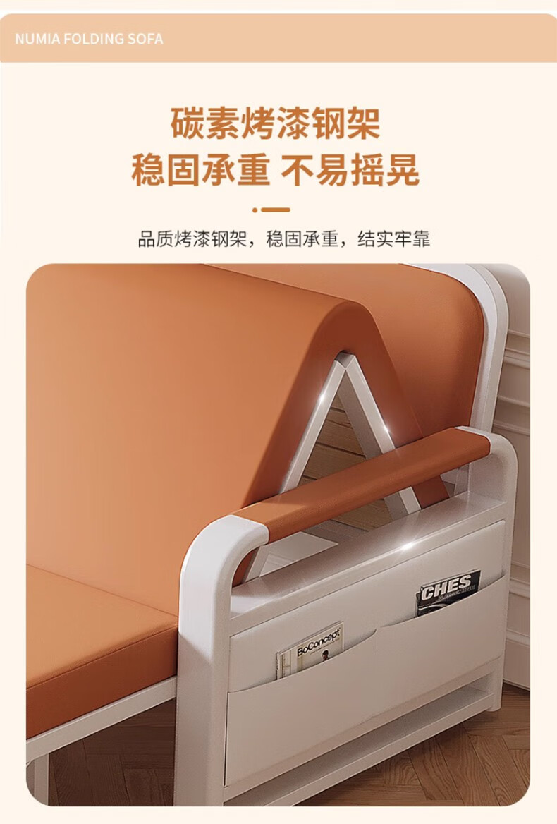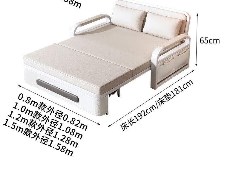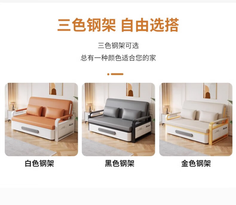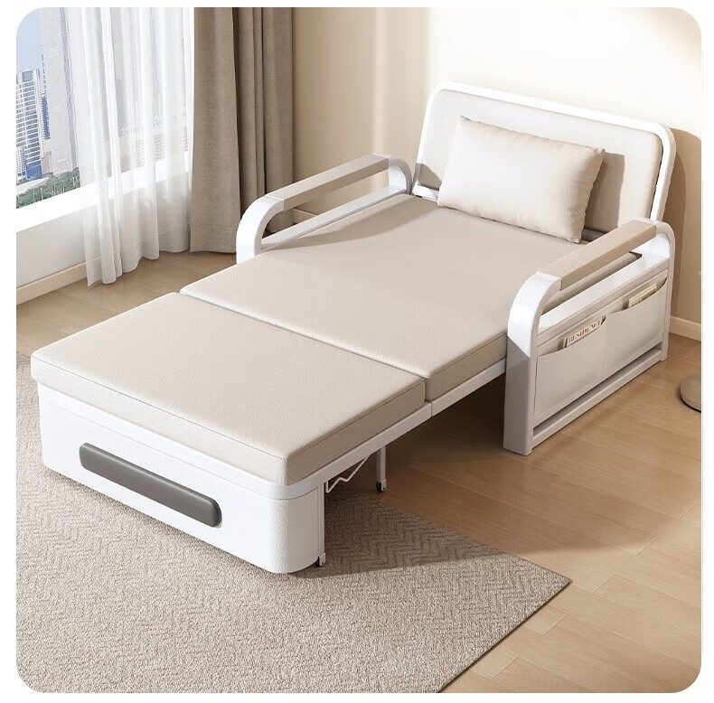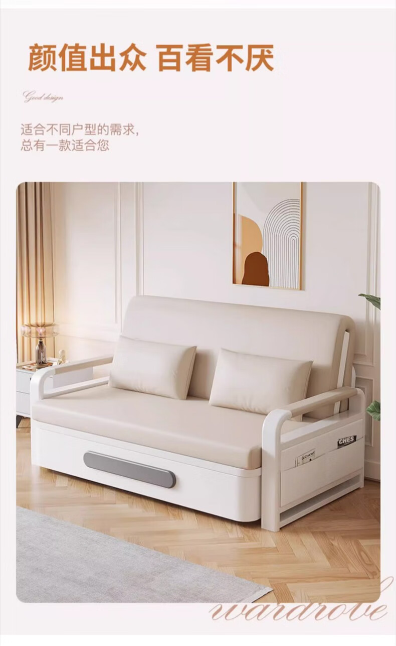 Folding sofa bed dual-purpose multi-functional small apartment folding dual-purpose telescopic bed pull-out living room storage simple sofa white frame off-white cat claw leather 1.2m storage +7cm sponge