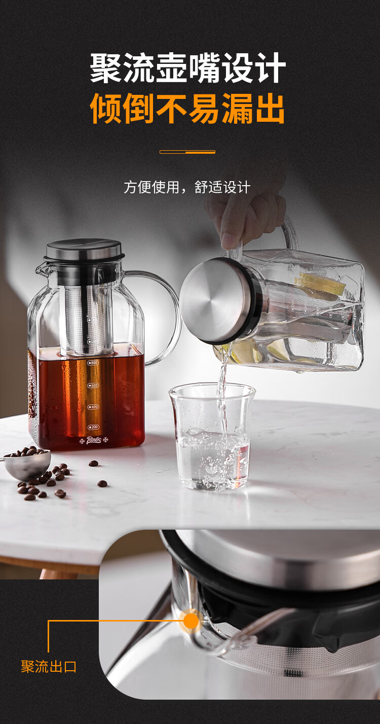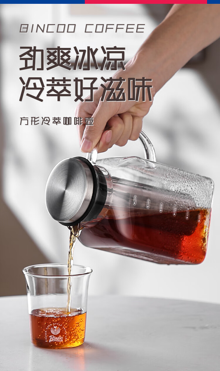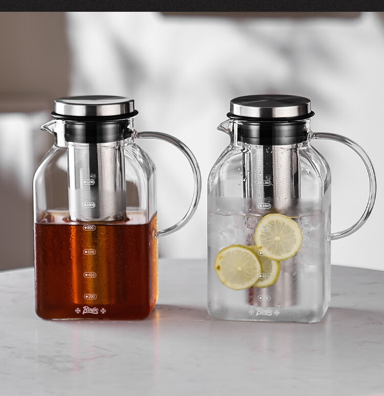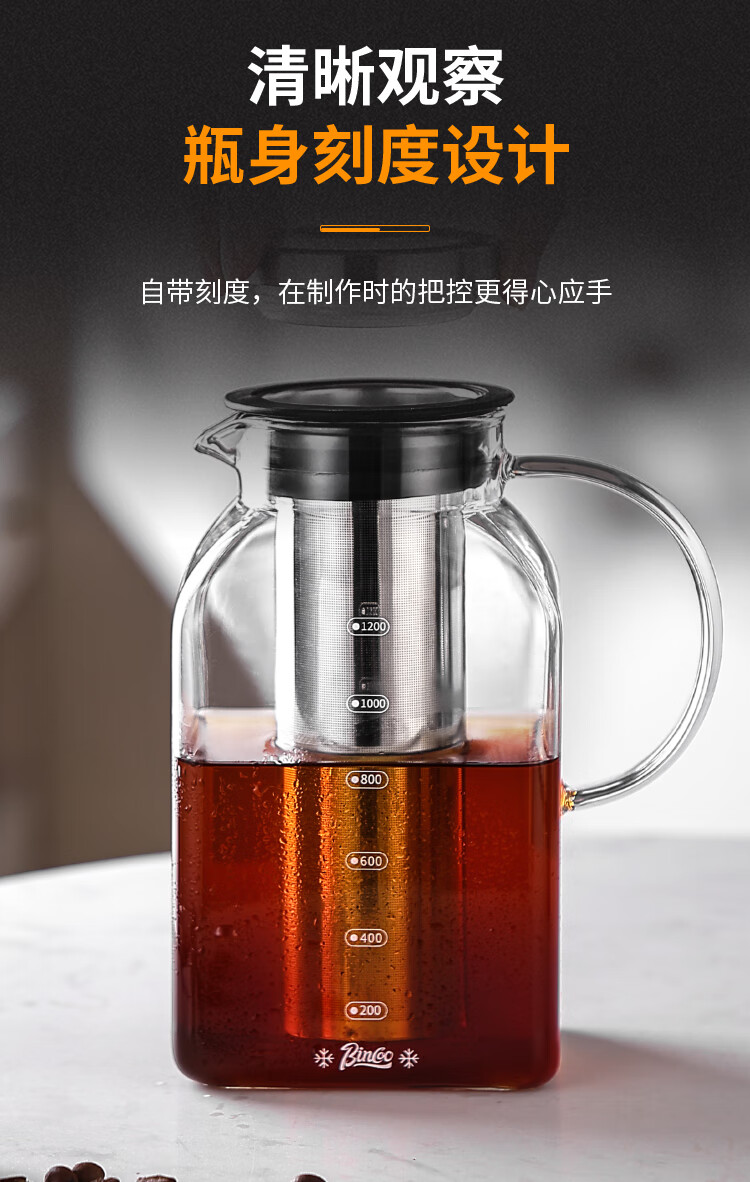 Bincoo coffee cold brew kettle household glass cold kettle large capacity coffee pot cold brew fruit teapot ice brew kettle square cold brew kettle 1200ml*2