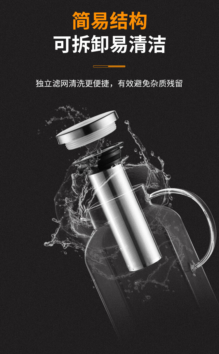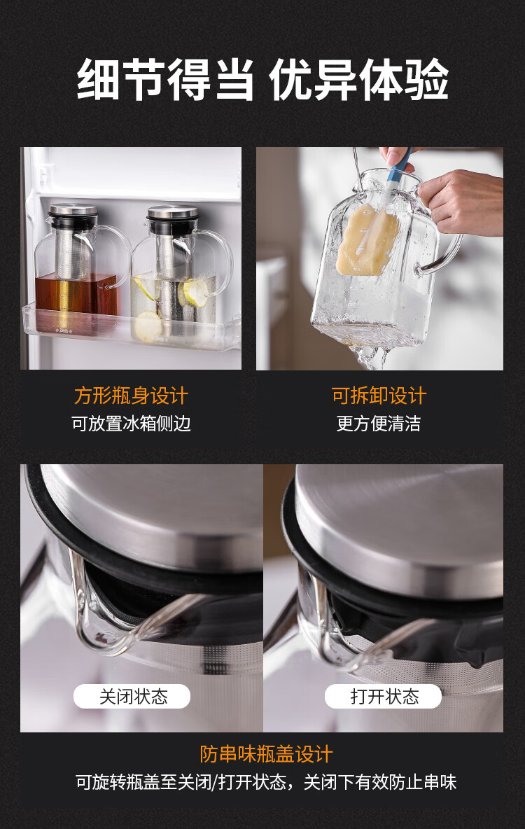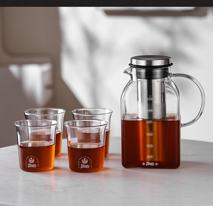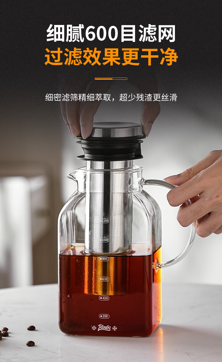 Bincoo coffee cold brew kettle household glass cold kettle large capacity coffee pot cold brew fruit teapot ice brew kettle square cold brew kettle 1200ml*2