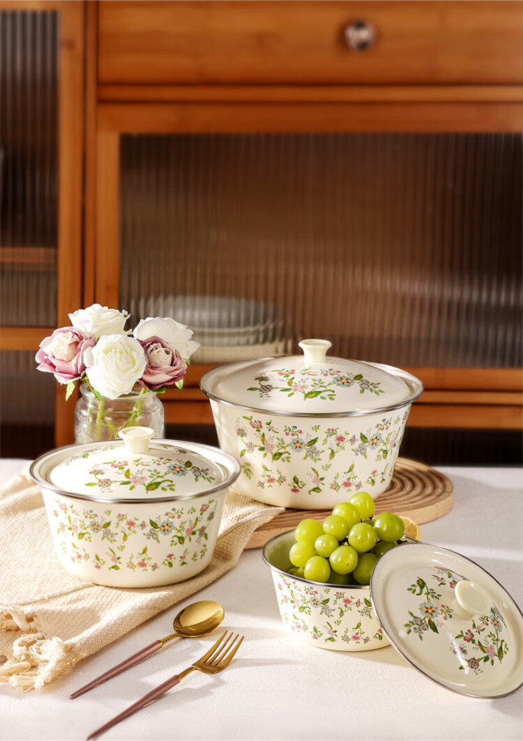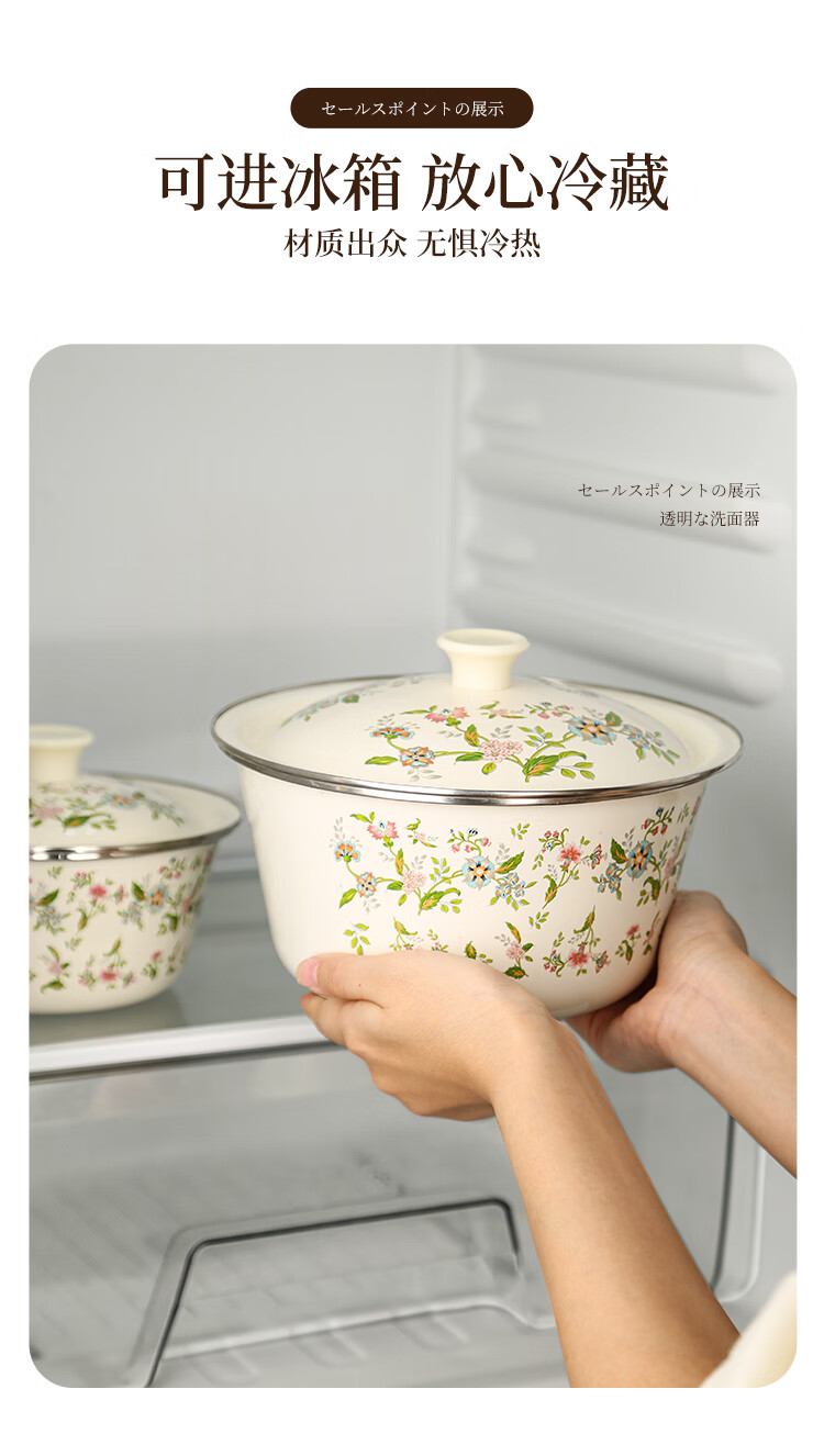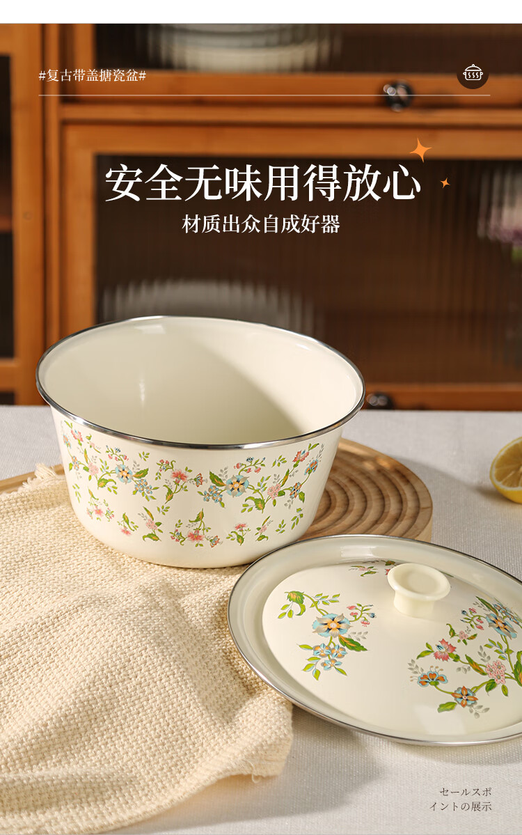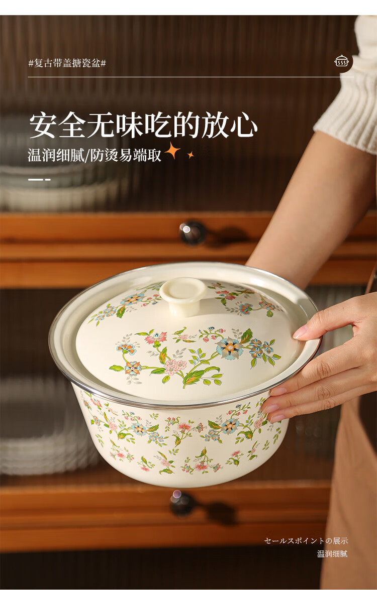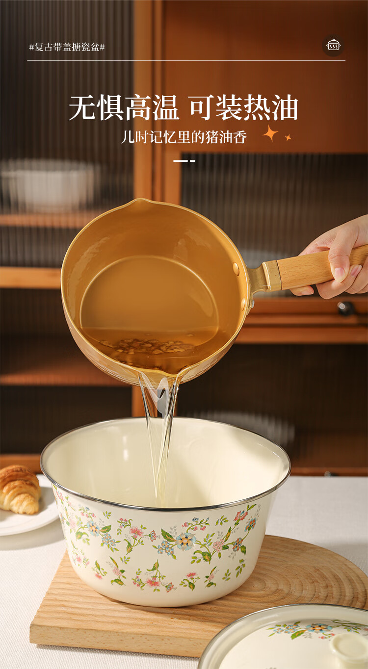 Newair enamel lard jar with lid, household old-fashioned oil storage basin for meat oil, large capacity, high temperature resistant chili oil, food grade, medium size with lid - 20cm, holds about four kilograms of lard, no specifications