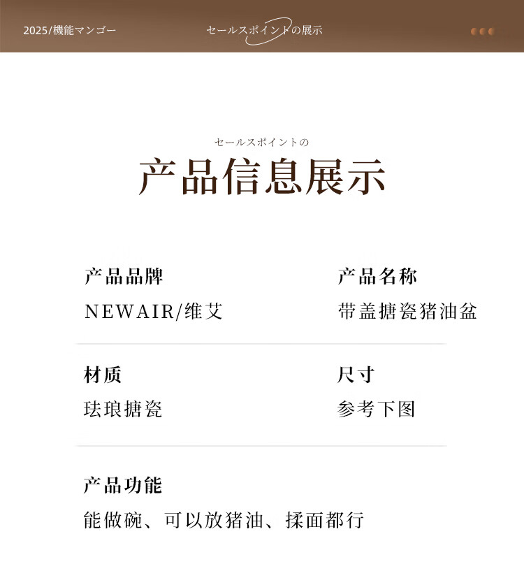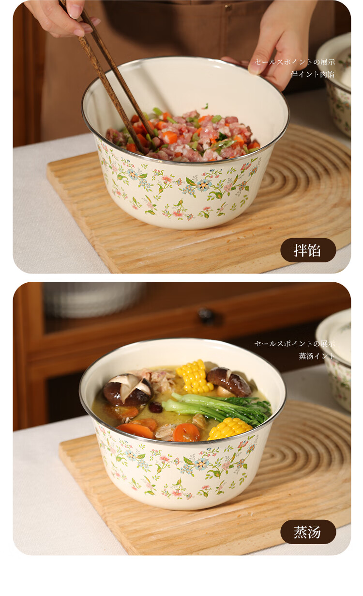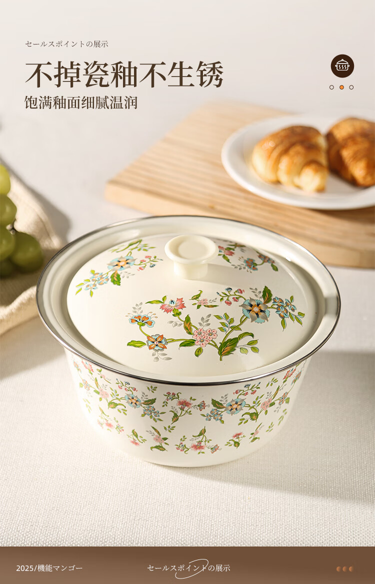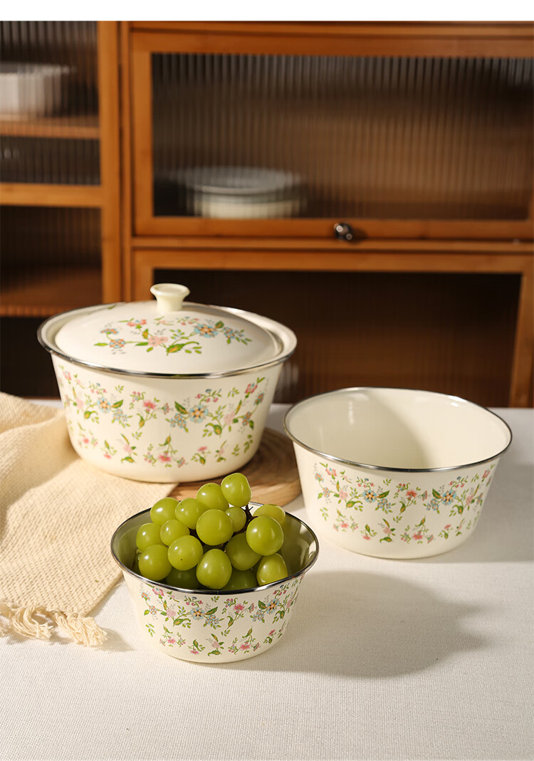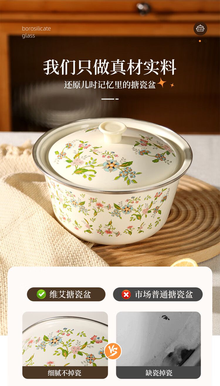 Newair enamel lard jar with lid, household old-fashioned oil storage basin for meat oil, large capacity, high temperature resistant chili oil, food grade, medium size with lid - 20cm, holds about four kilograms of lard, no specifications