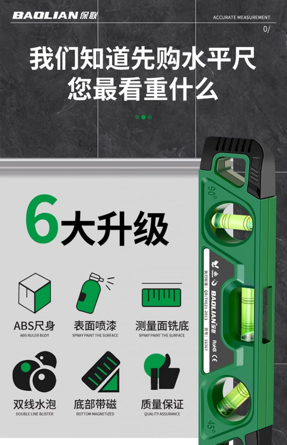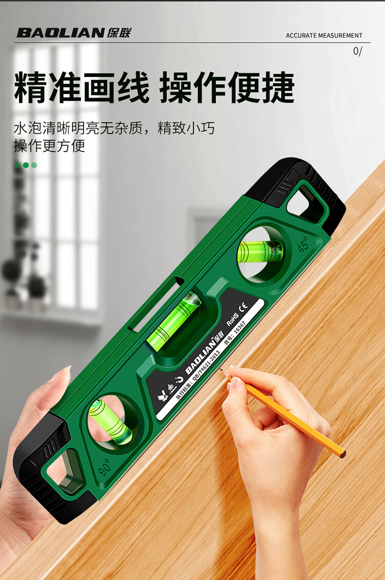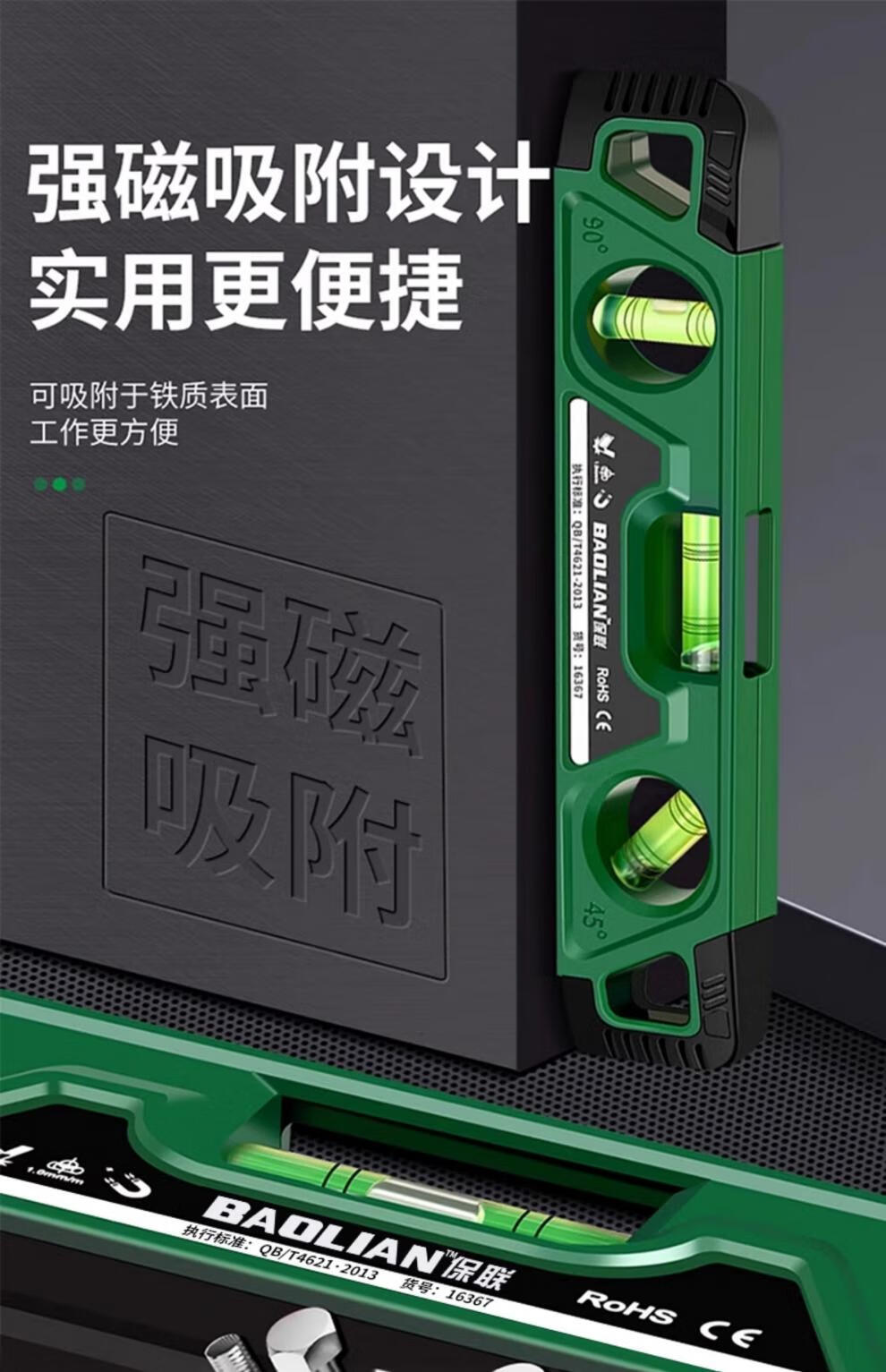 Baolian magnetic torpedo level 230mm mini level micro measurement woodworking balance ruler upgraded new torpedo type three bubble strong magnetic level