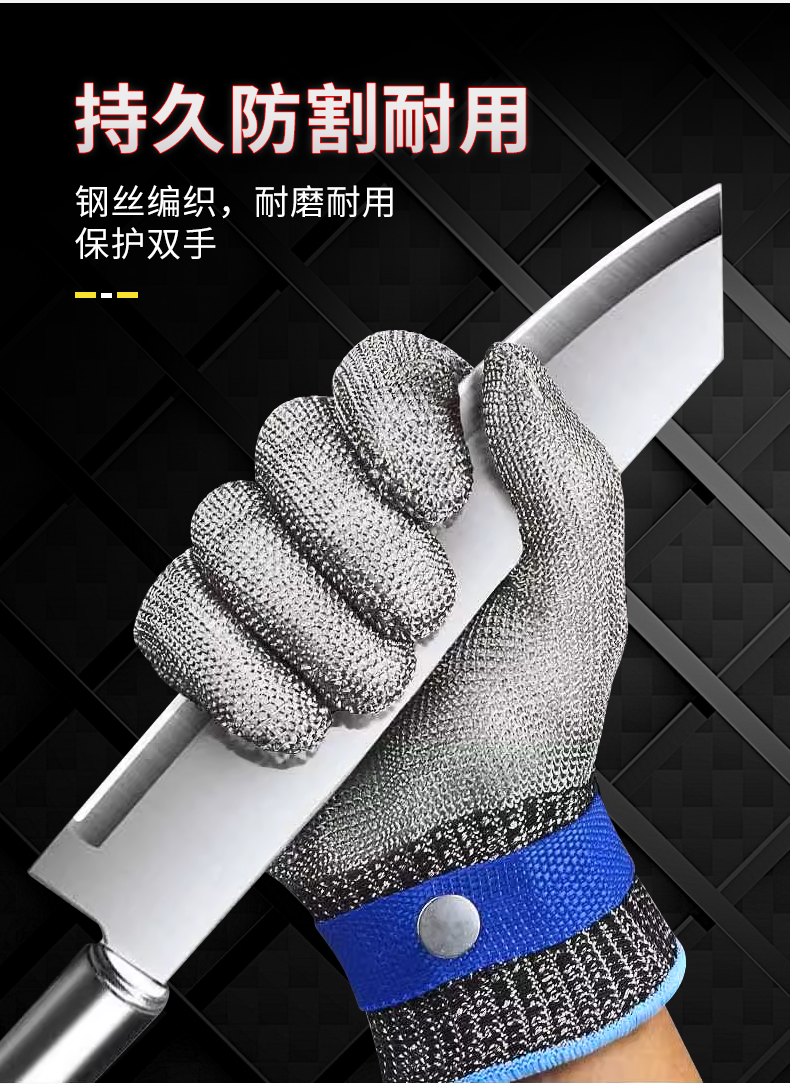 Steel wire cut-resistant gloves with level 9 stab-proof, five-finger stainless steel cut-resistant, wear-resistant for cutting meat, fish and vegetables, outdoor carpentry site protective industrial-grade labor protection gloves, 10 pieces, free nylon gloves, strengthened steel wire cut-proof