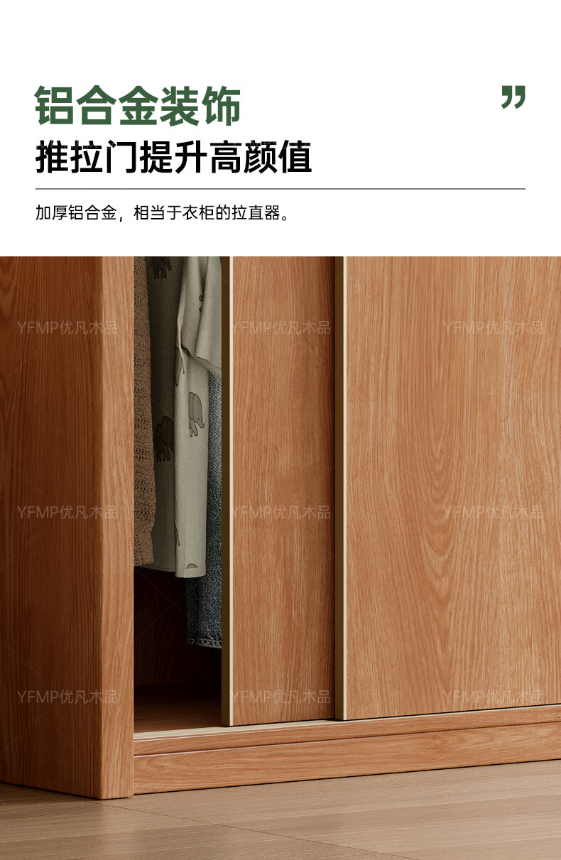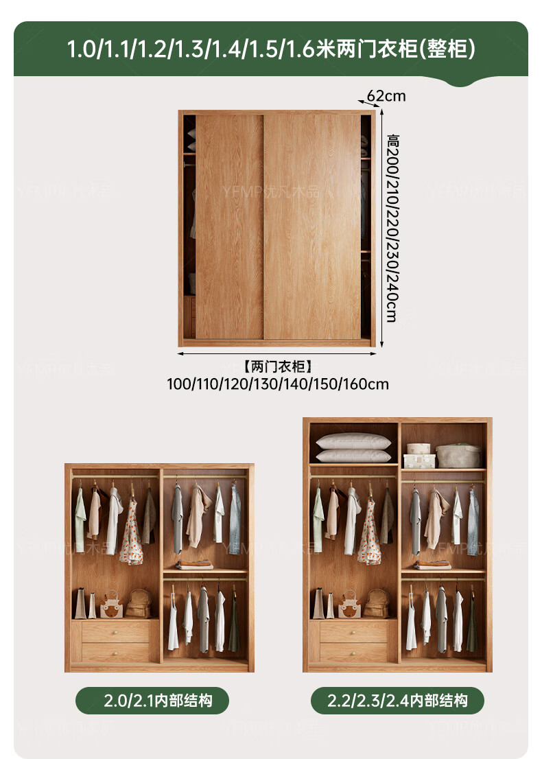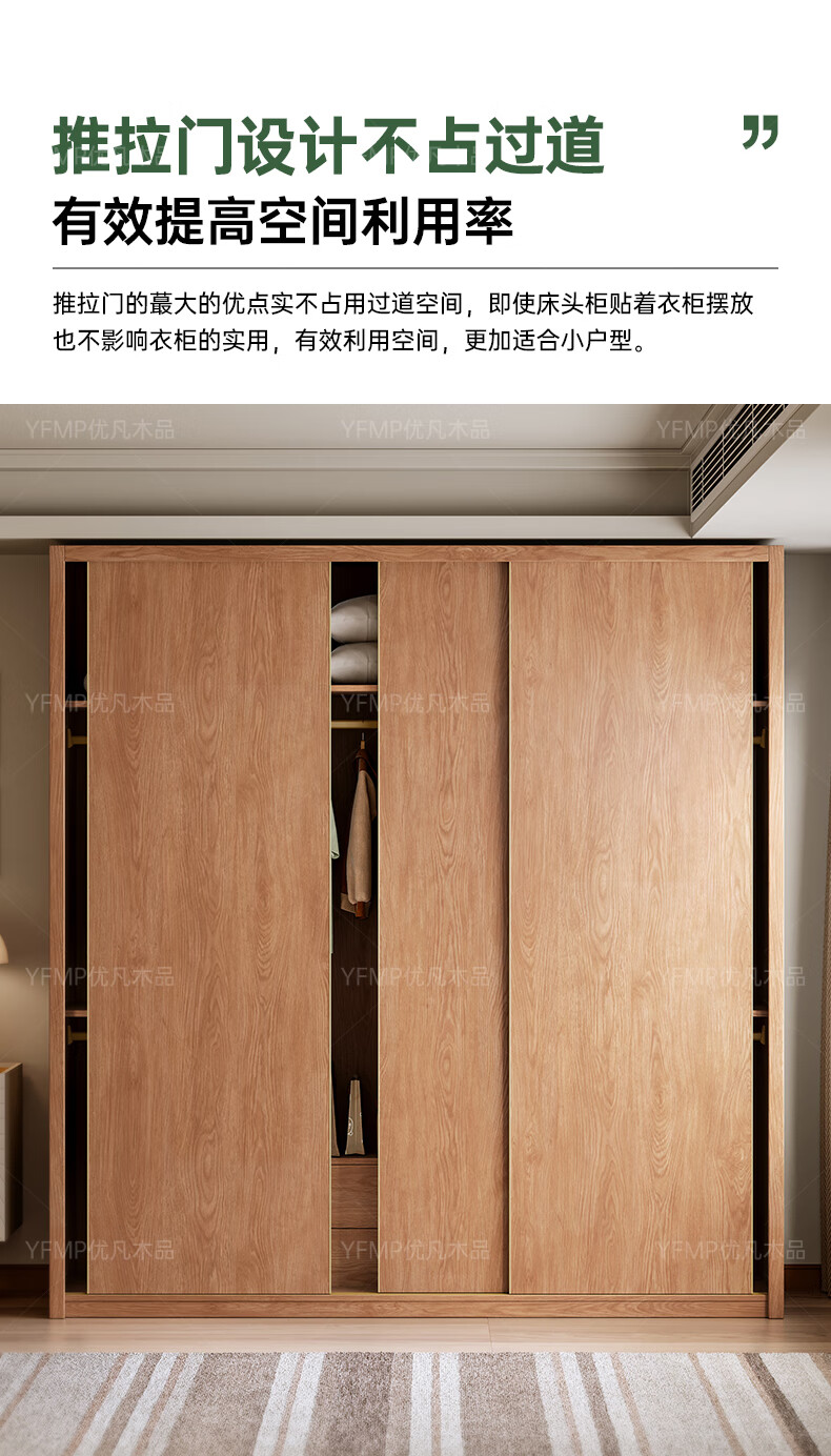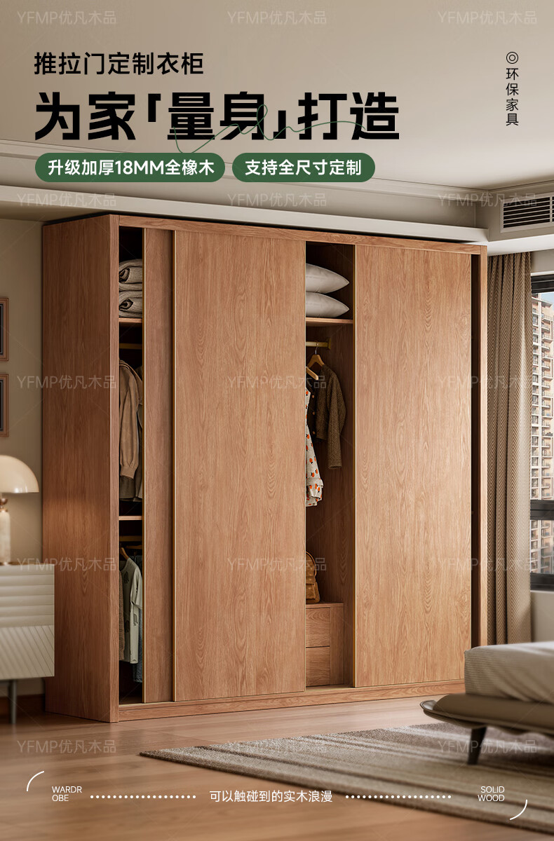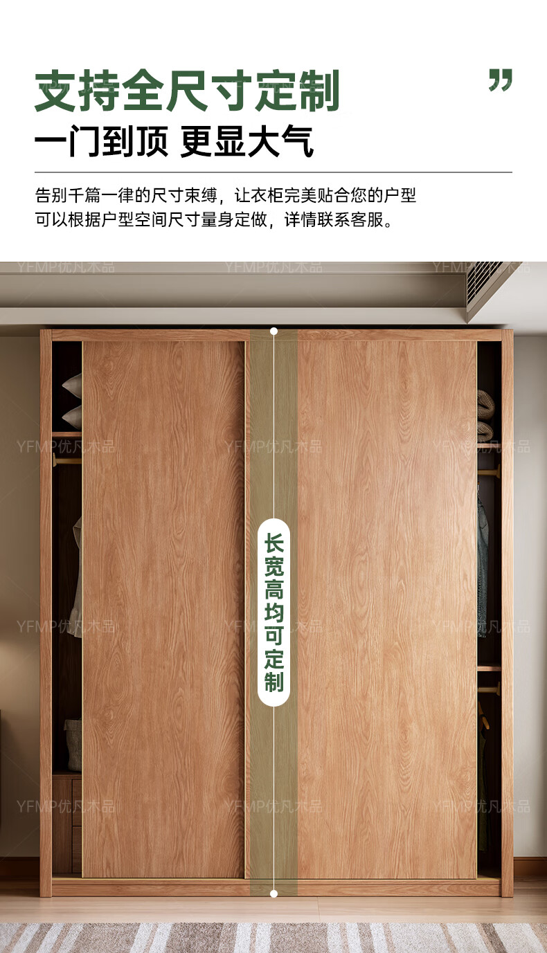 Youfan Wood Products all solid wood sliding door wardrobe segmented small apartment solid wood customized bedroom home handle-free wardrobe storage cabinet 1.0m wide * 2.0m high two-door wardrobe