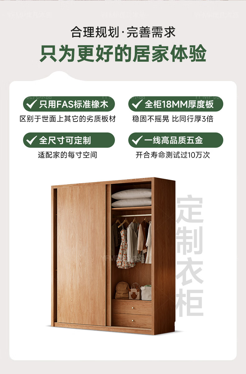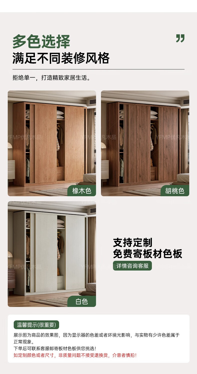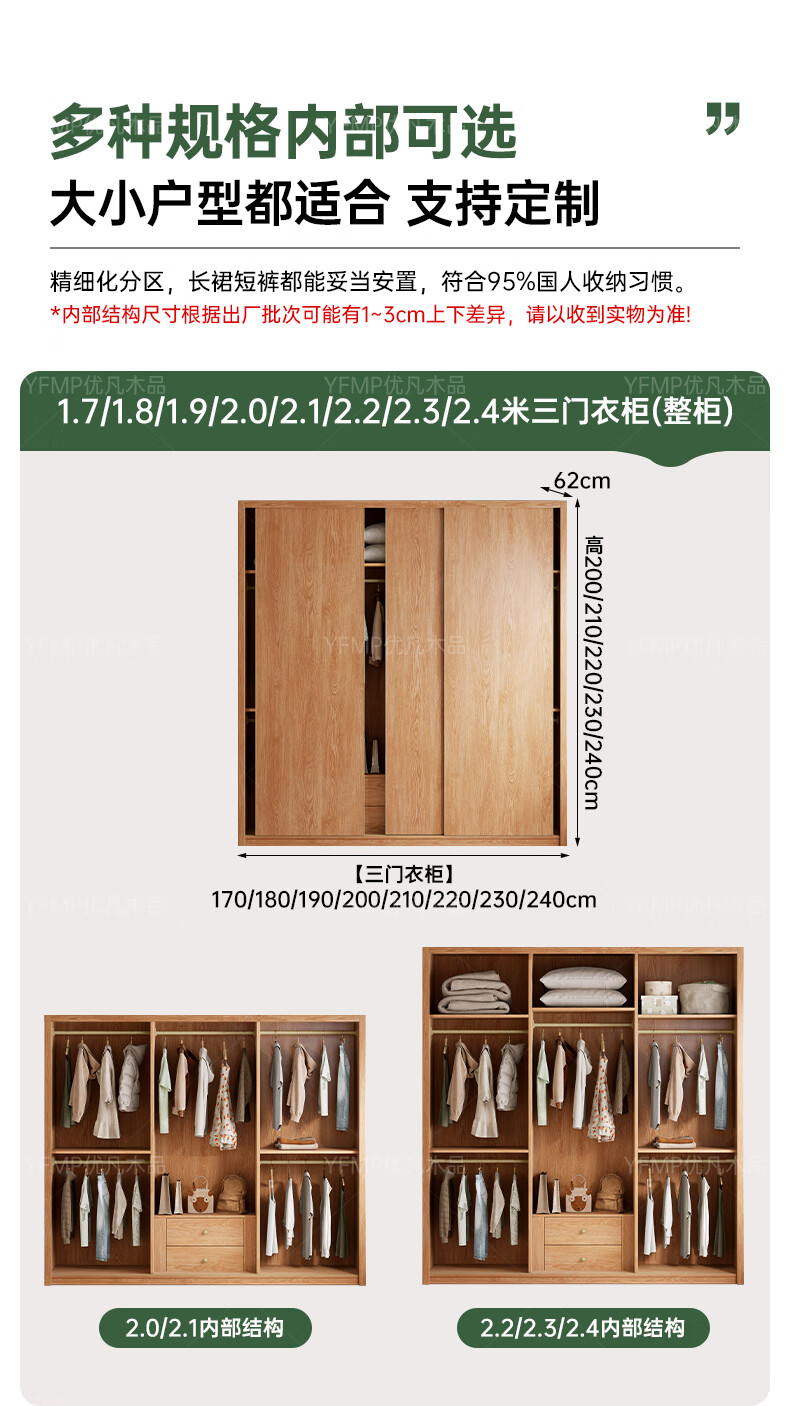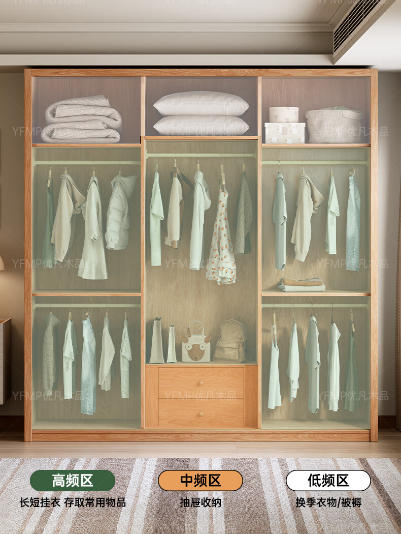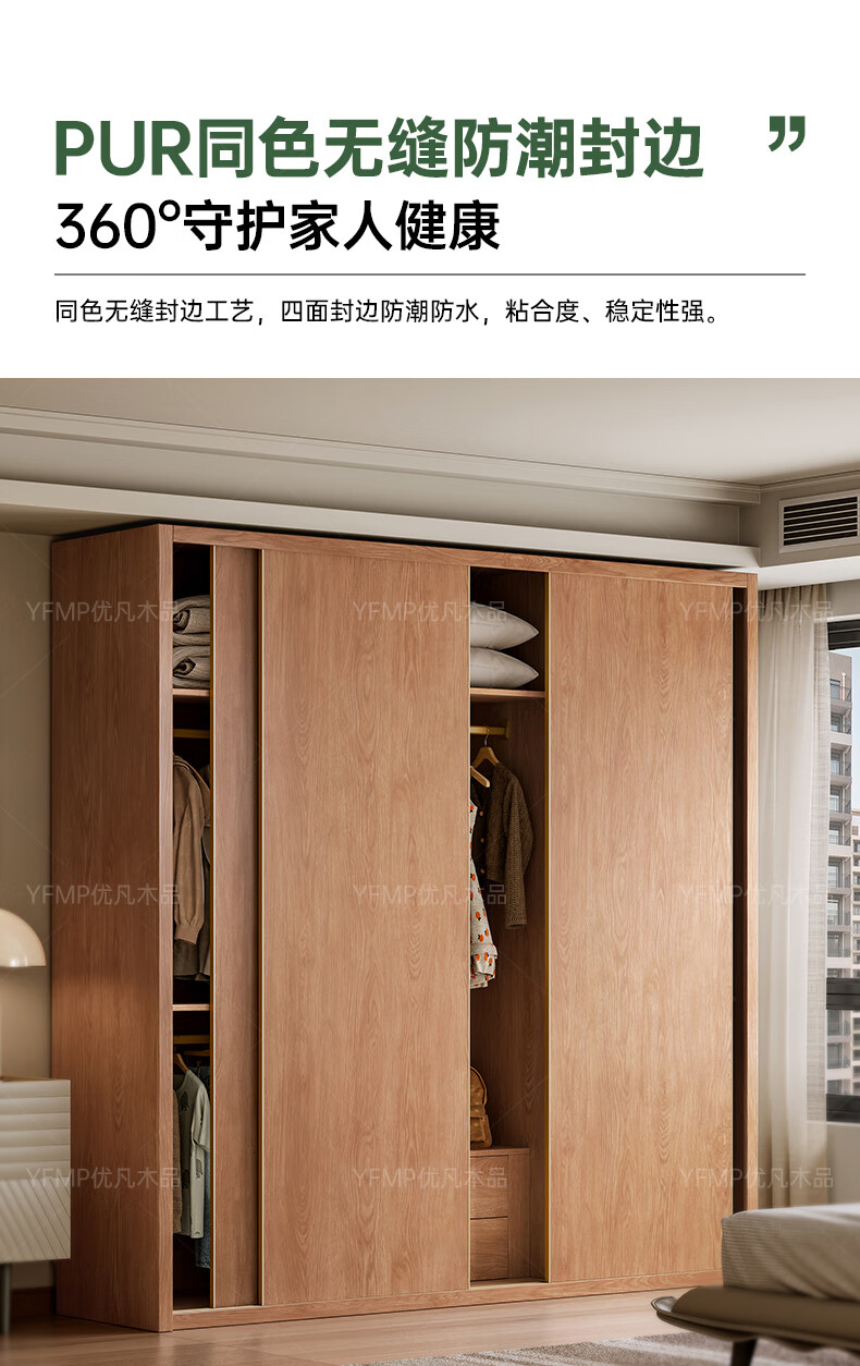 Youfan Wood Products all solid wood sliding door wardrobe segmented small apartment solid wood customized bedroom home handle-free wardrobe storage cabinet 1.0m wide * 2.0m high two-door wardrobe