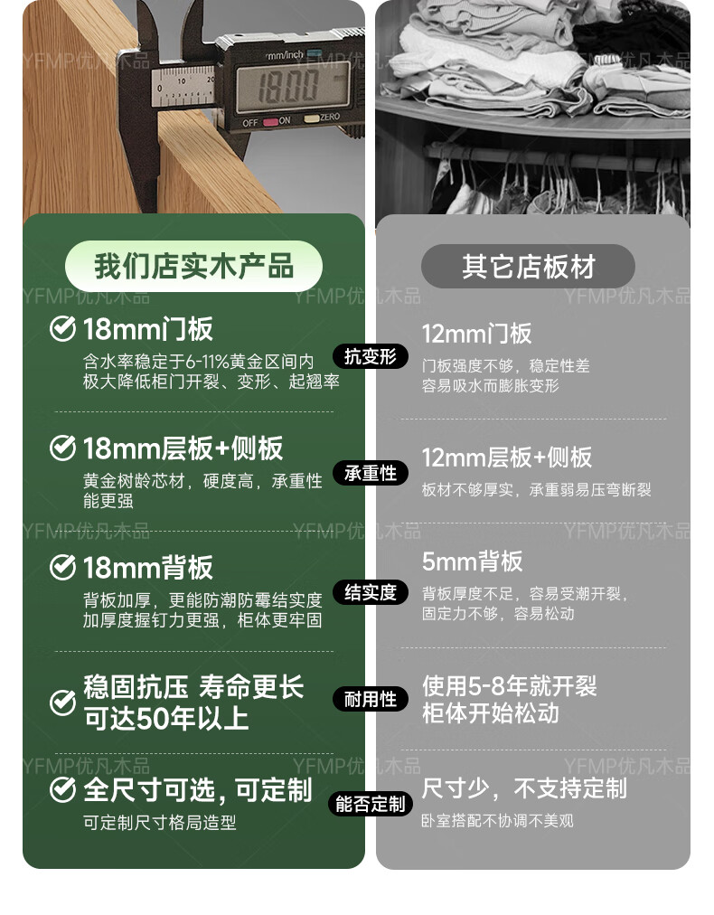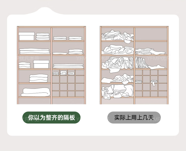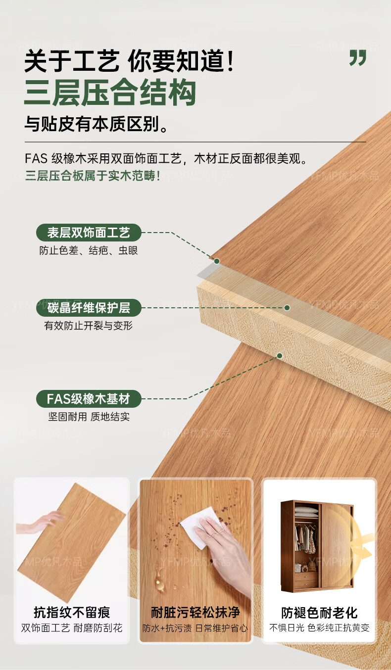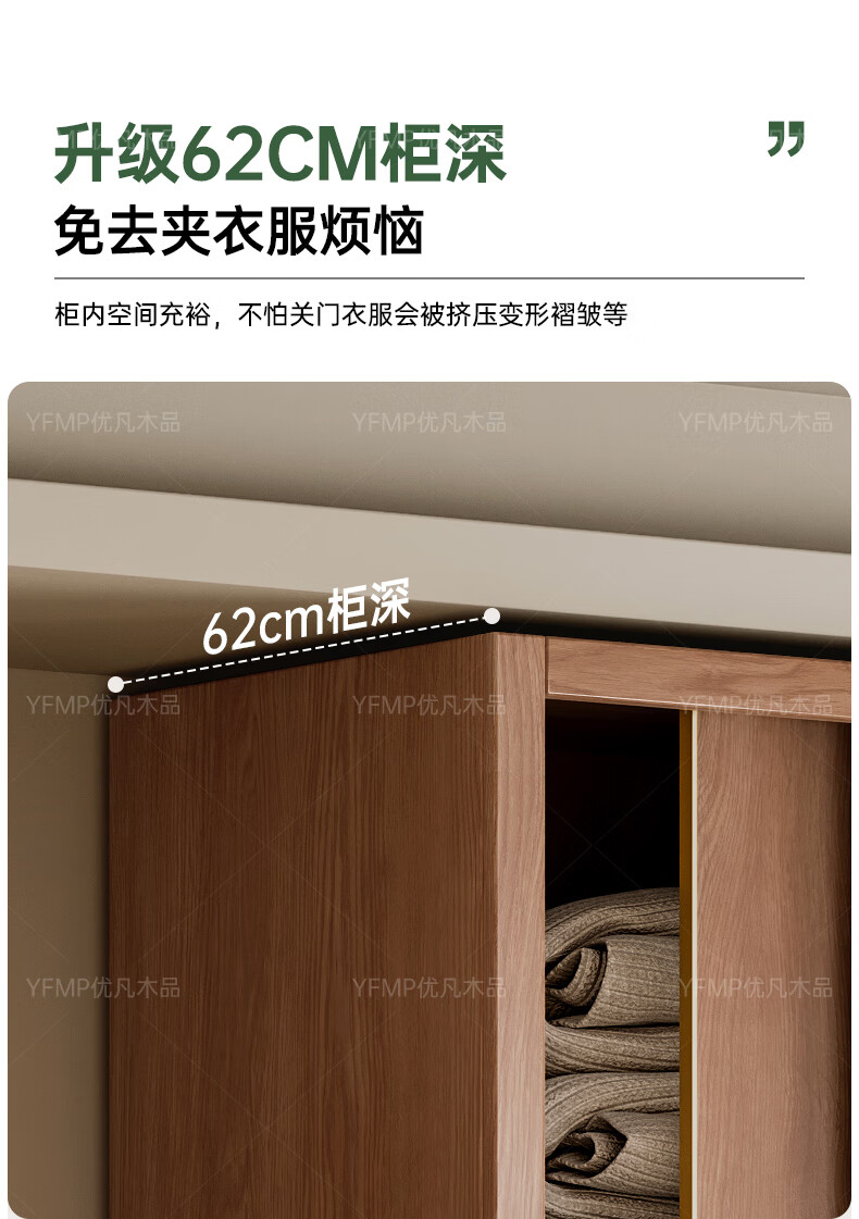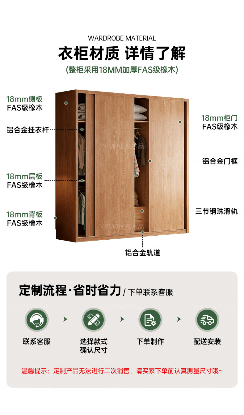Youfan Wood Products all solid wood sliding door wardrobe segmented small apartment solid wood customized bedroom home handle-free wardrobe storage cabinet 1.0m wide * 2.0m high two-door wardrobe