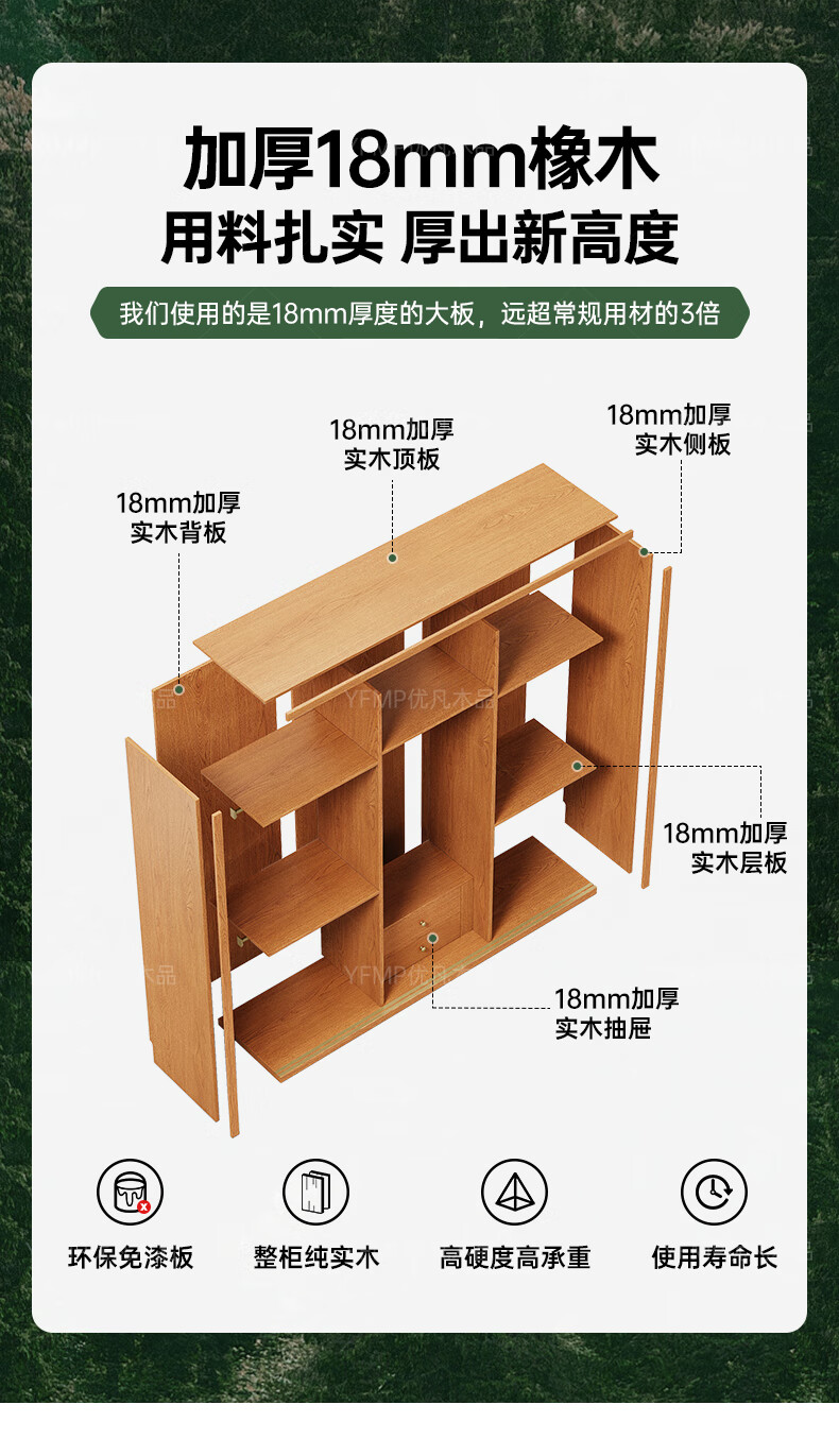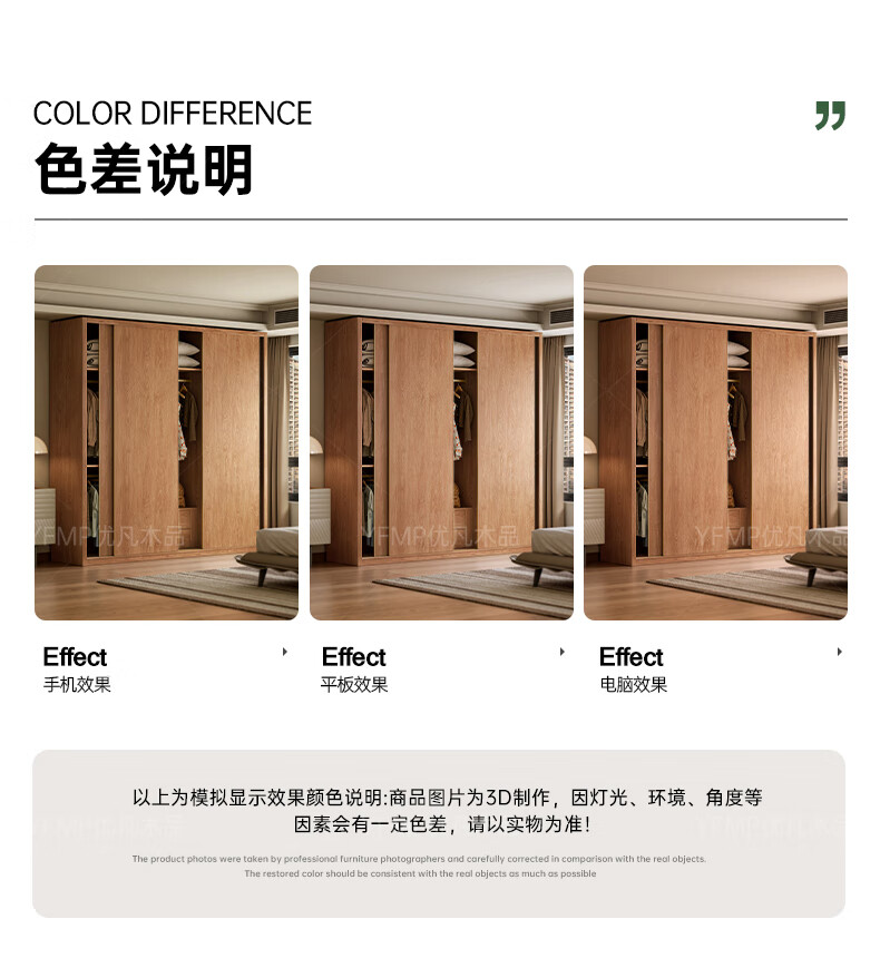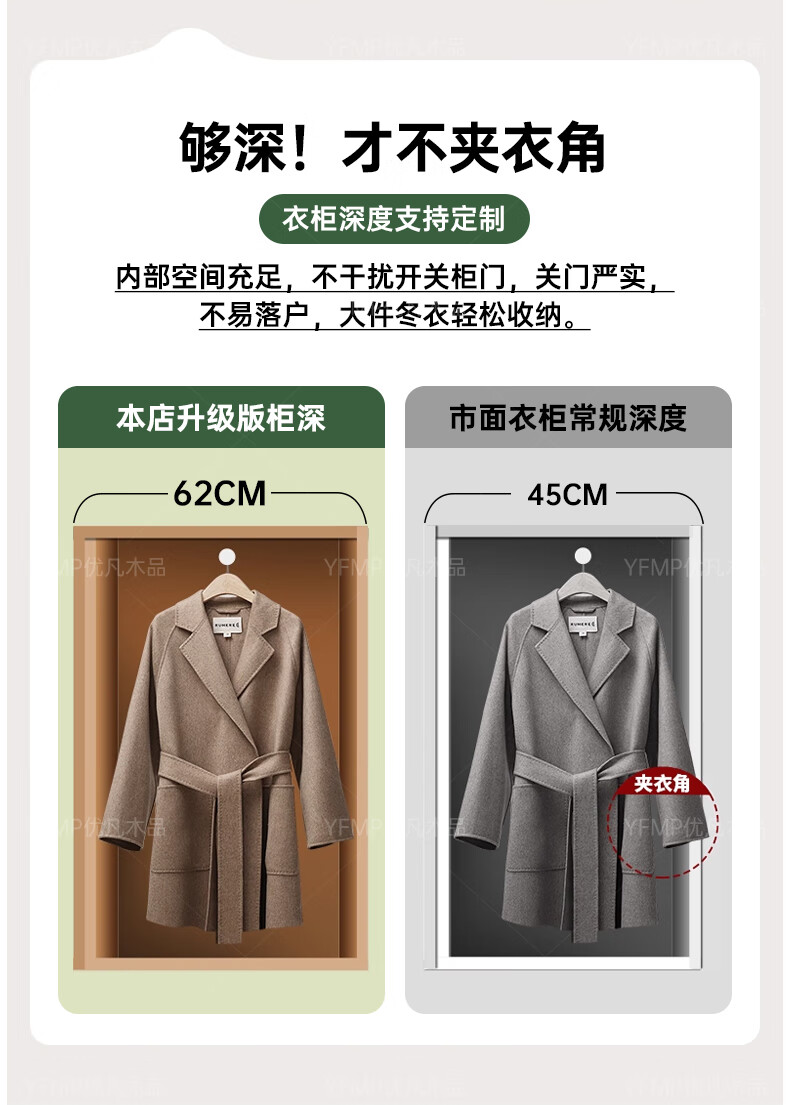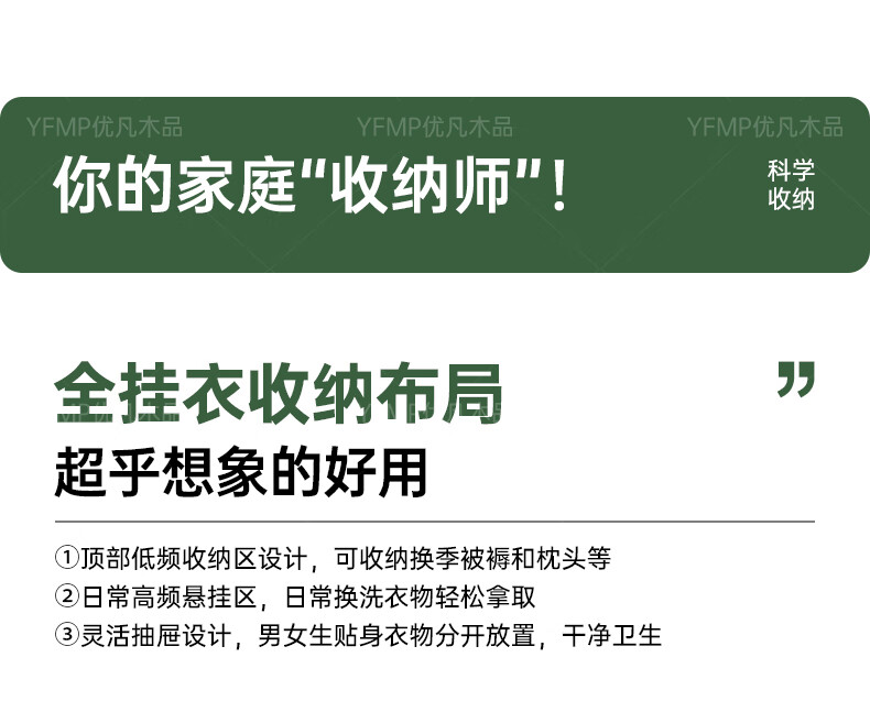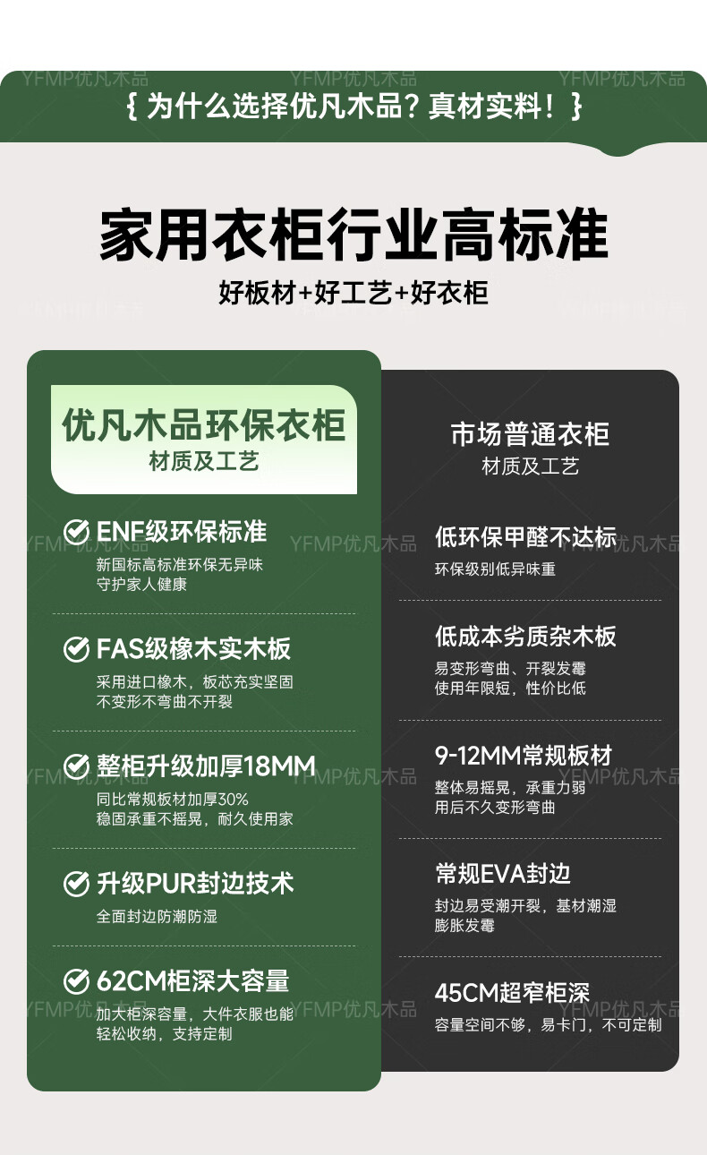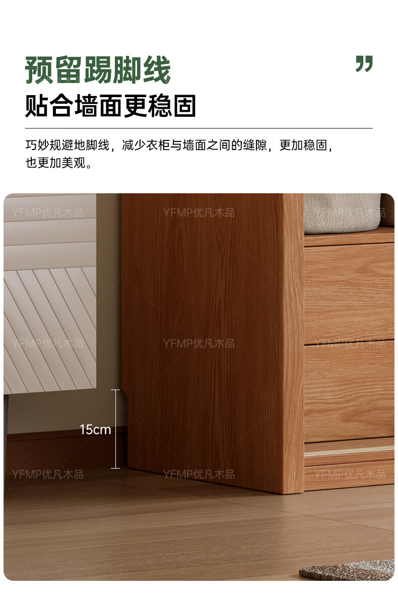 Youfan Wood Products all solid wood sliding door wardrobe segmented small apartment solid wood customized bedroom home handle-free wardrobe storage cabinet 1.0m wide * 2.0m high two-door wardrobe