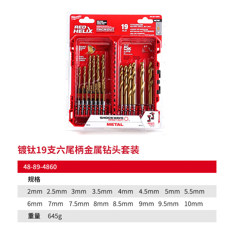 Milwaukee titanium-plated twist drill set high-strength twist drill bits for stainless steel 48-89-4859 (set of 10)
