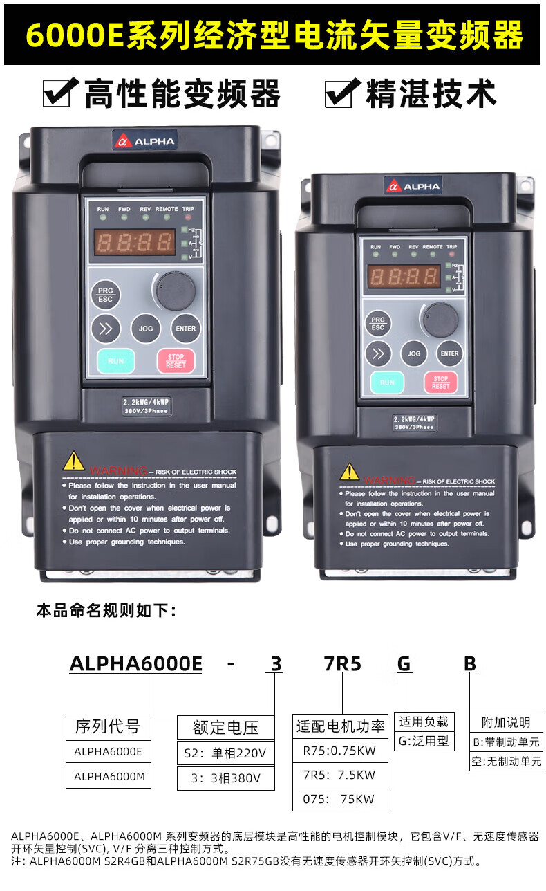 Alpha inverter ALPHA6000E0.75KW1.5KW2.2KW4KW three-phase inverter 6000E-3018GB/3022PB