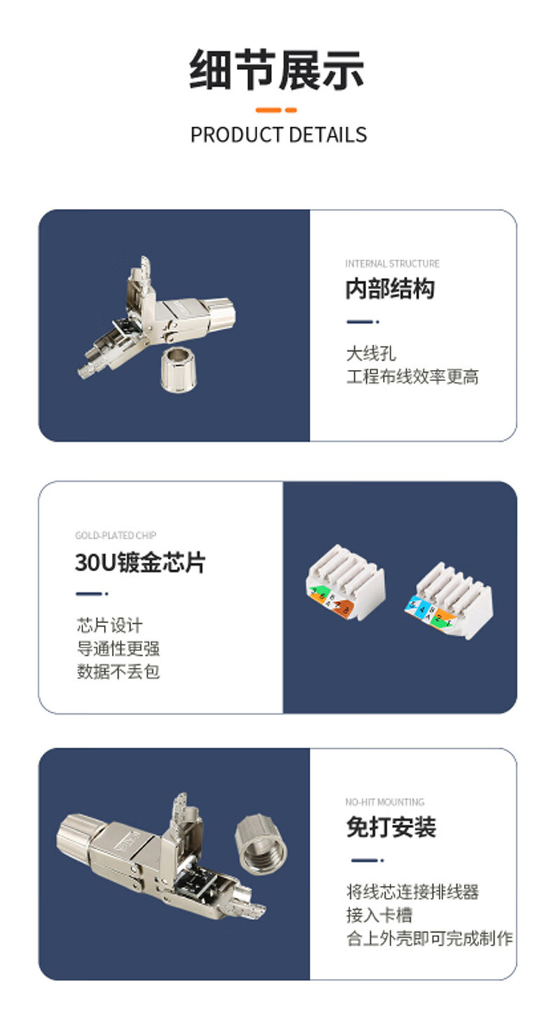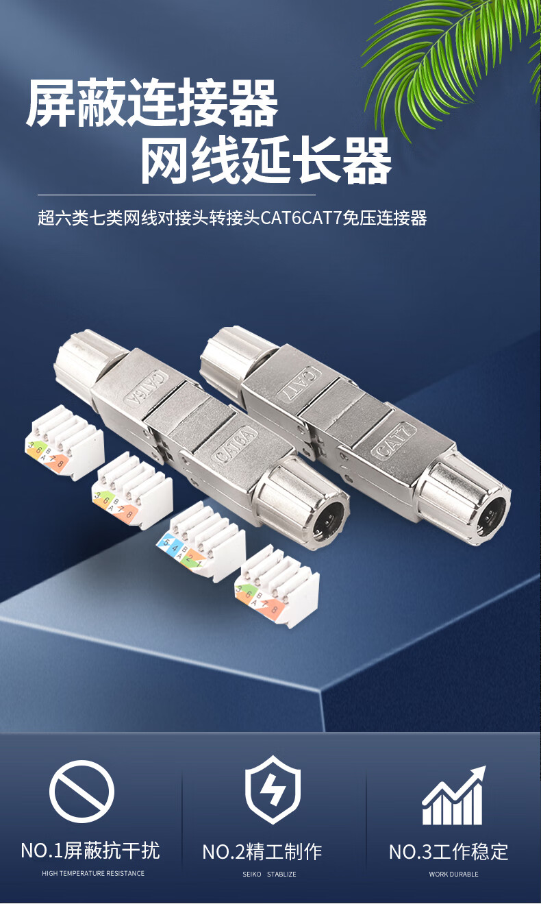 Category 6e and Category 7 network cable to connector adapter CAT6CAT7 pressure-free shielded network extension straight-through connector Category 6e and Category 7 shielded thick network cable dedicated CAT6A No specifications