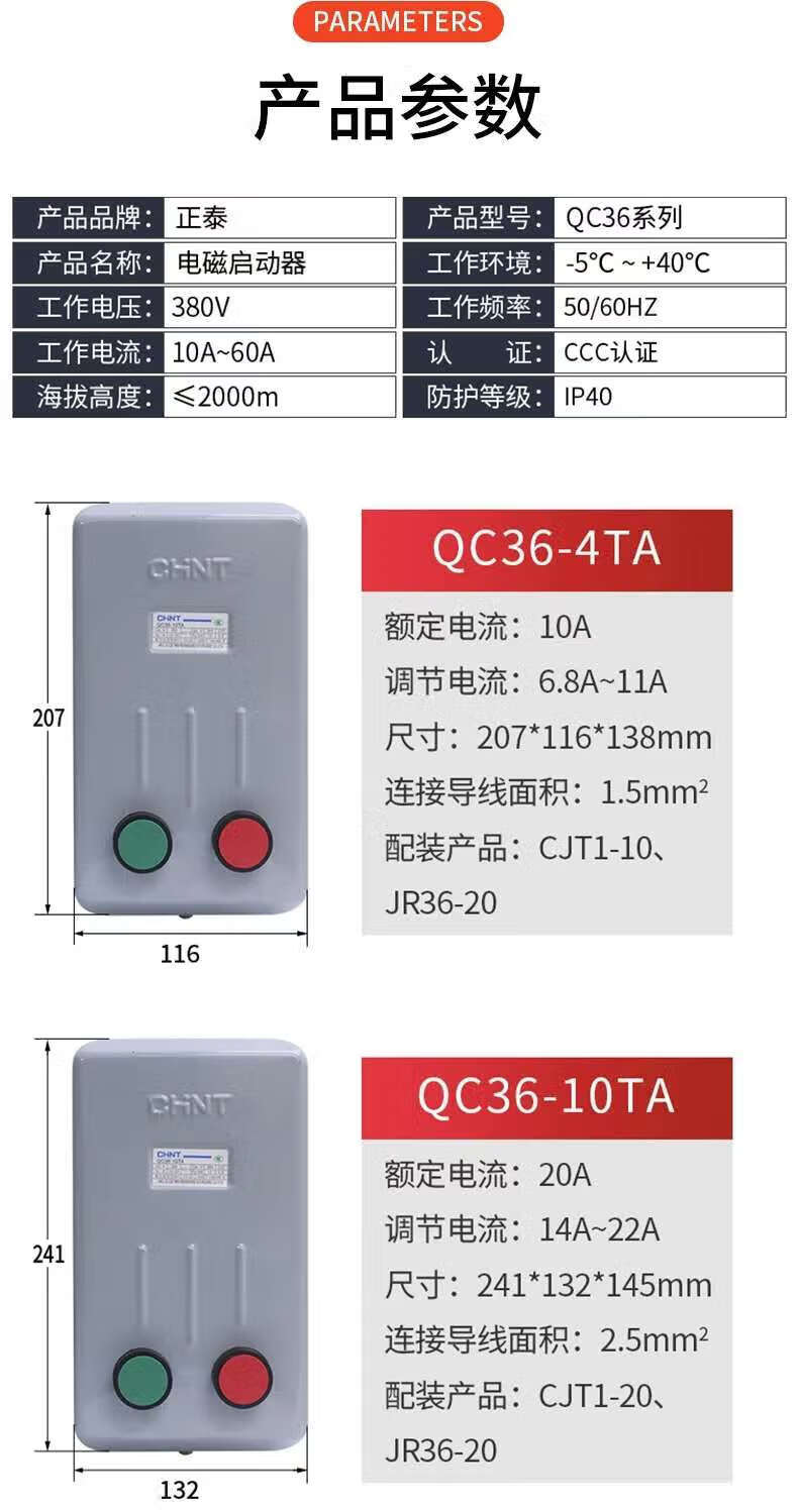 Chint electromagnetic starter magnetic starter QC36-4TA motor starter