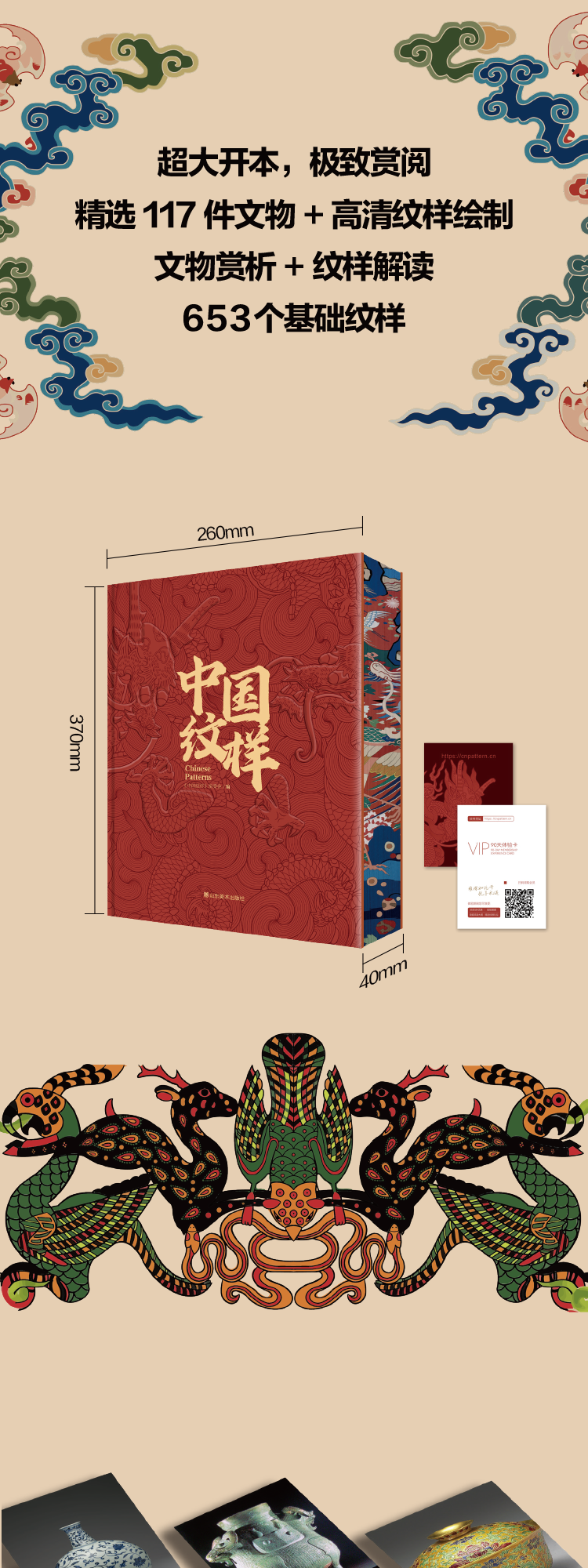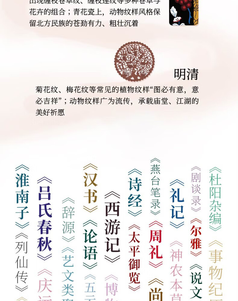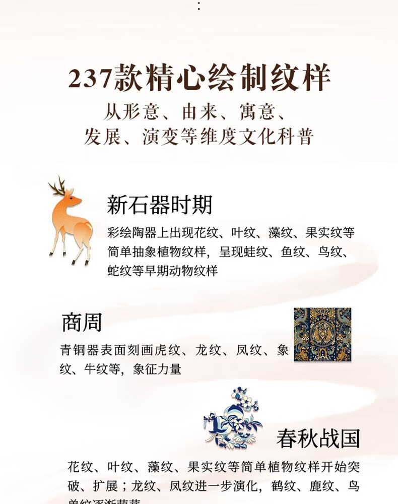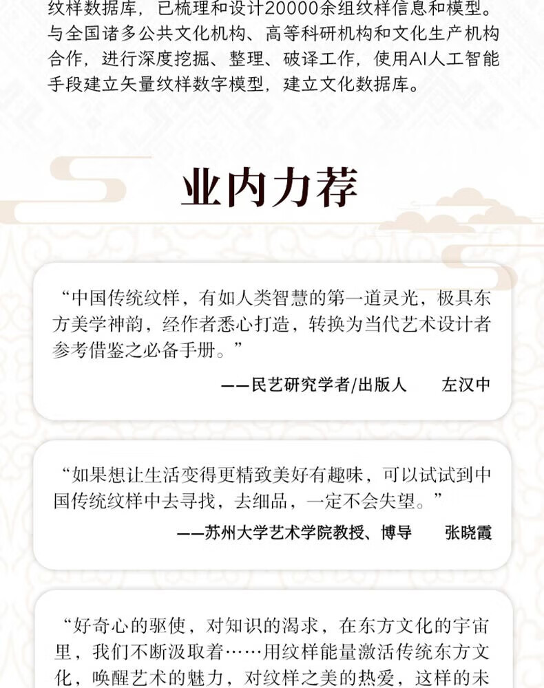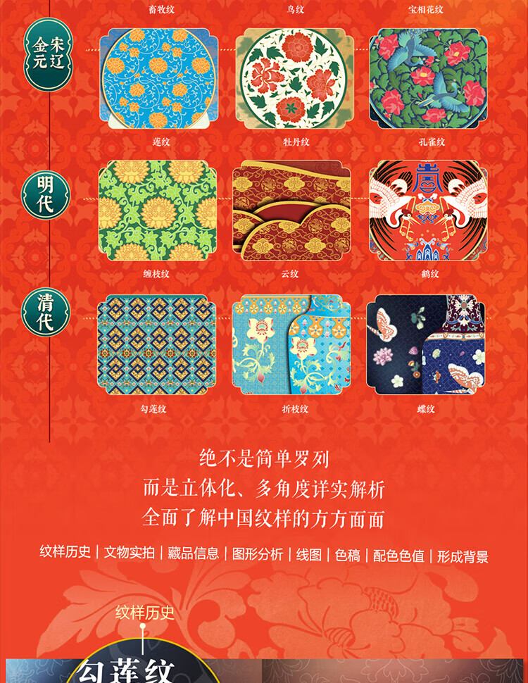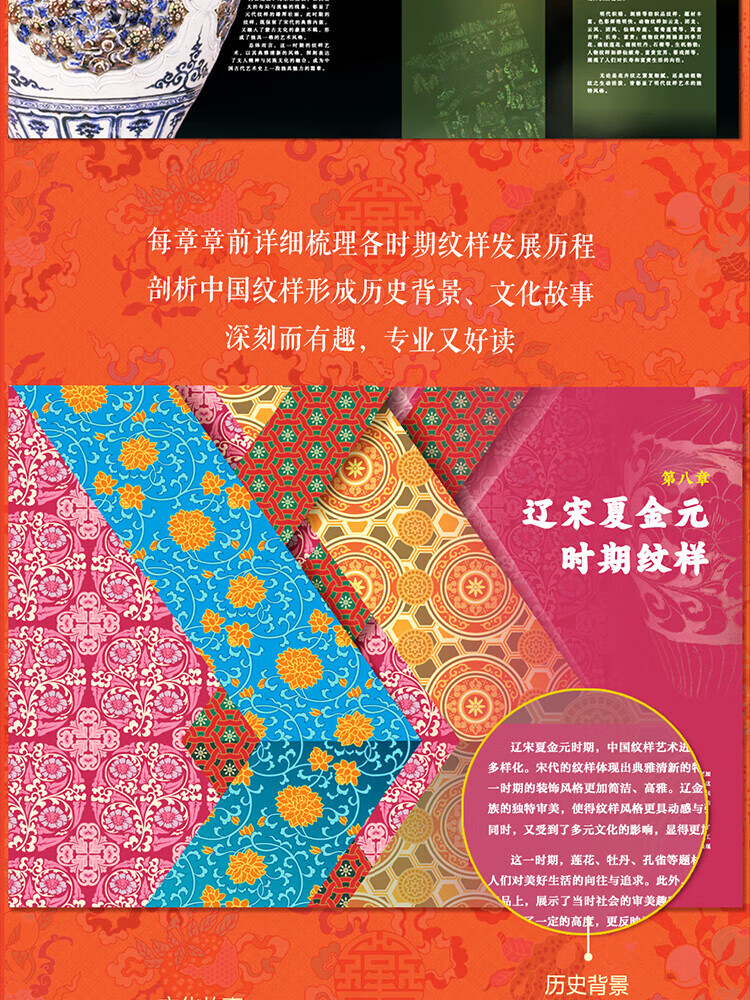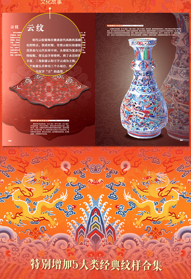 The Complete Book of Chinese Patterns, Collection of Patterns, The Beauty of Patterns on Ancient Chinese Artifacts, The Illustrated Book of New Patterns on Brocade of the Song Dynasty, The Beauty of Chinese Patterns, The Story of Patterns, The Story of Traditional Chinese Classic Patterns, The Story of Patterns, such as cloud patterns, dragon patterns, phoenix patterns, fish patterns, flower and bird patterns, Chinese Patterns, Hardcover Brushed Edition