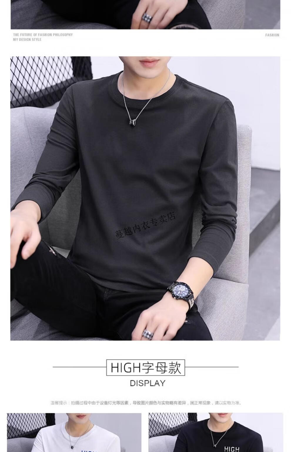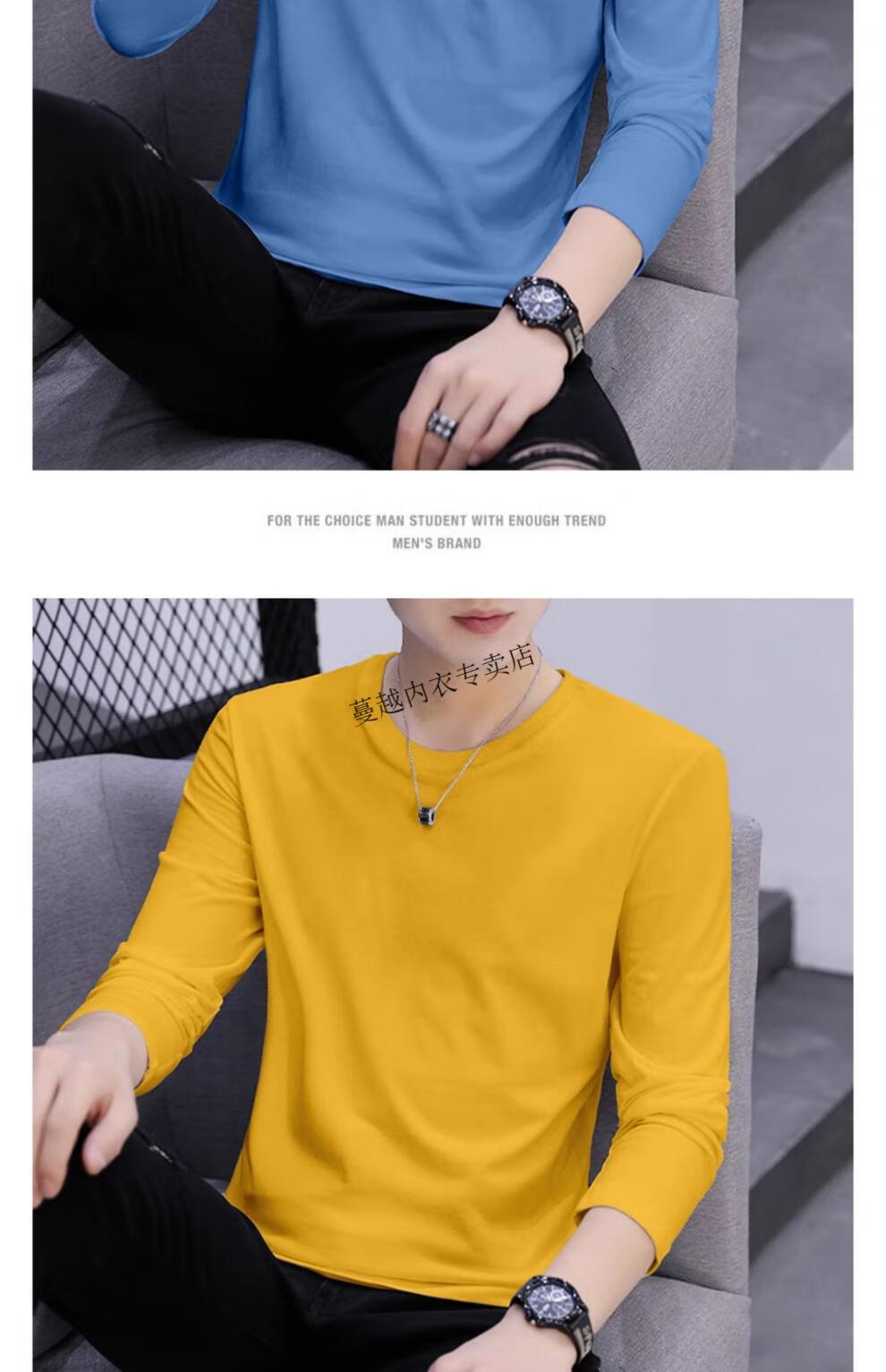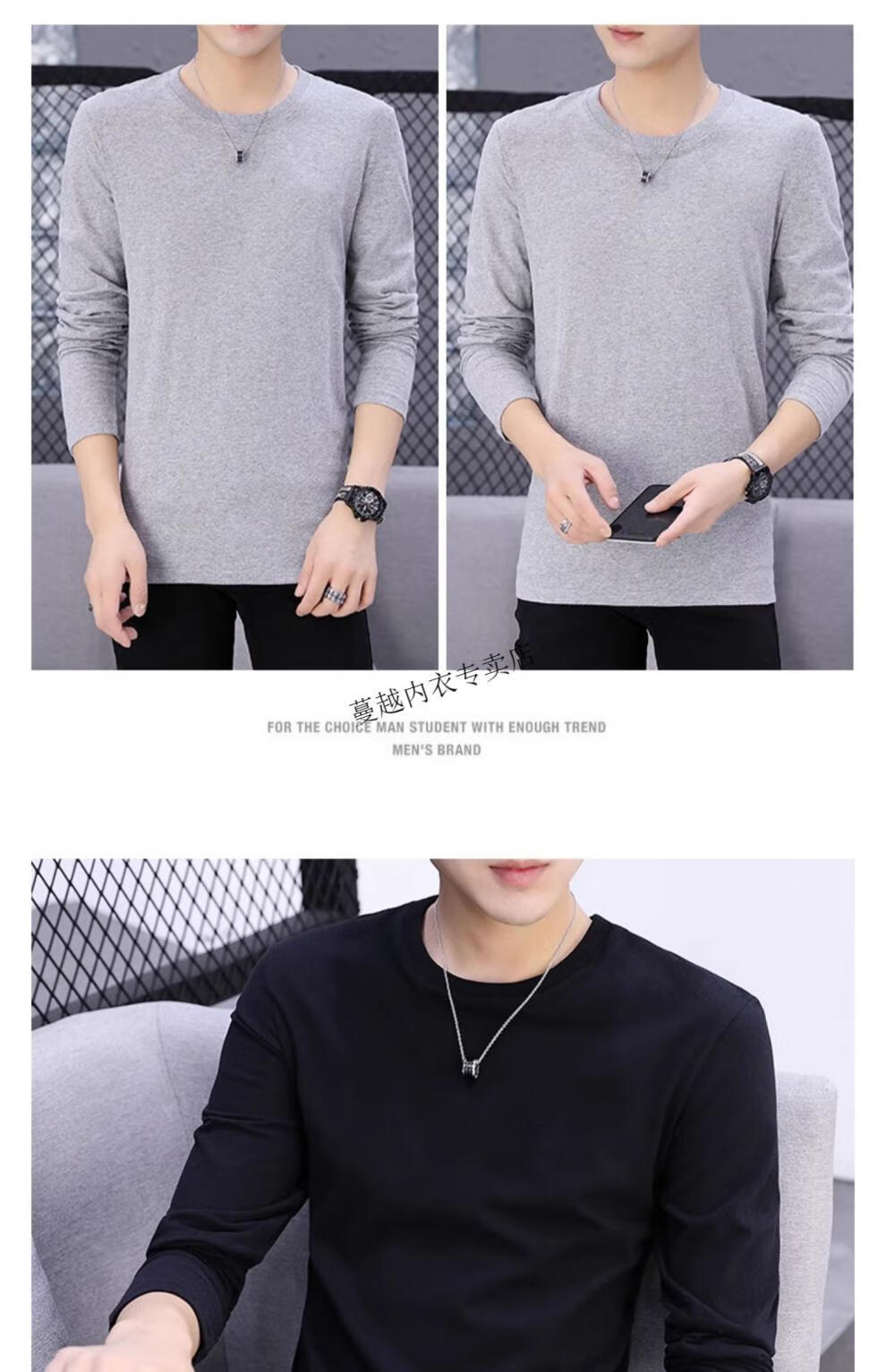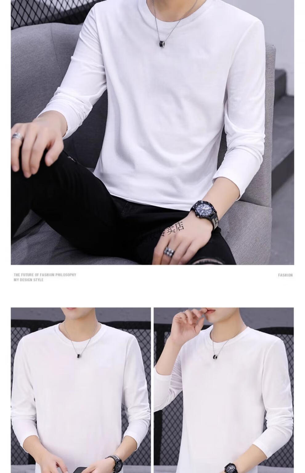Modal men's tops, men's long-sleeved T-shirts, trendy solid color pure cotton white autumn clothes with spring and summer bottoming shirts long-sleeved pure white M