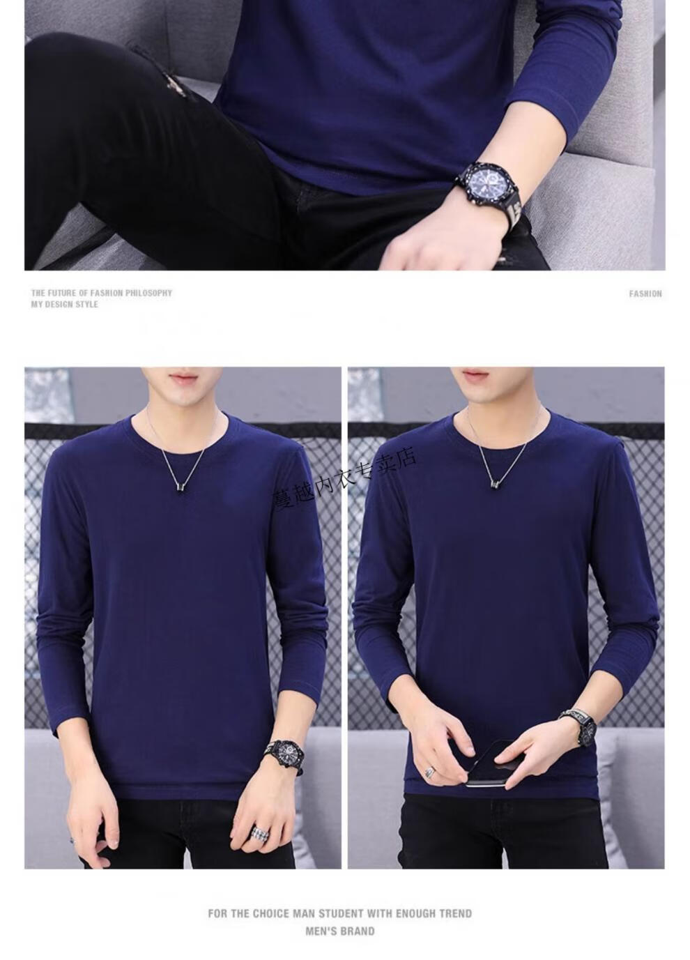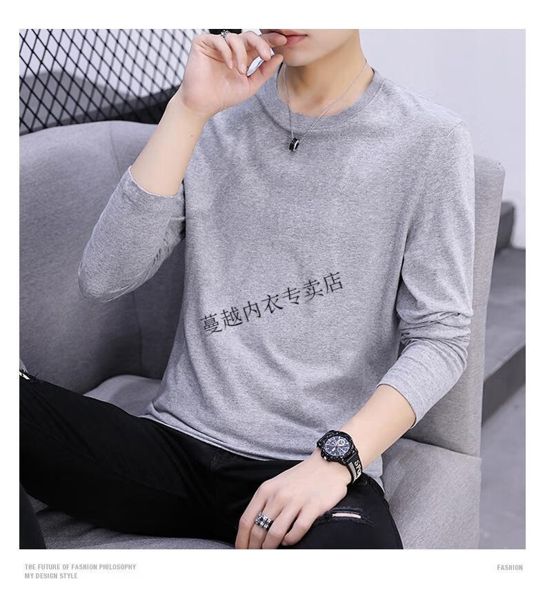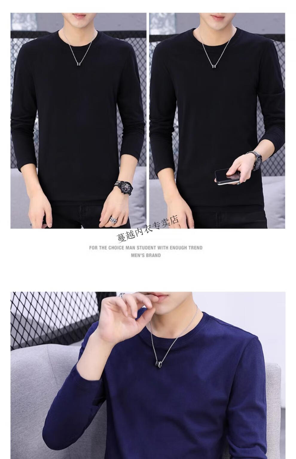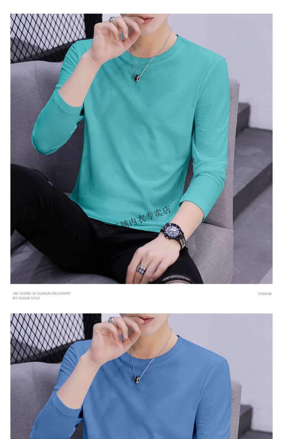 Modal men's tops, men's long-sleeved T-shirts, trendy solid color pure cotton white autumn clothes with spring and summer bottoming shirts long-sleeved pure white M