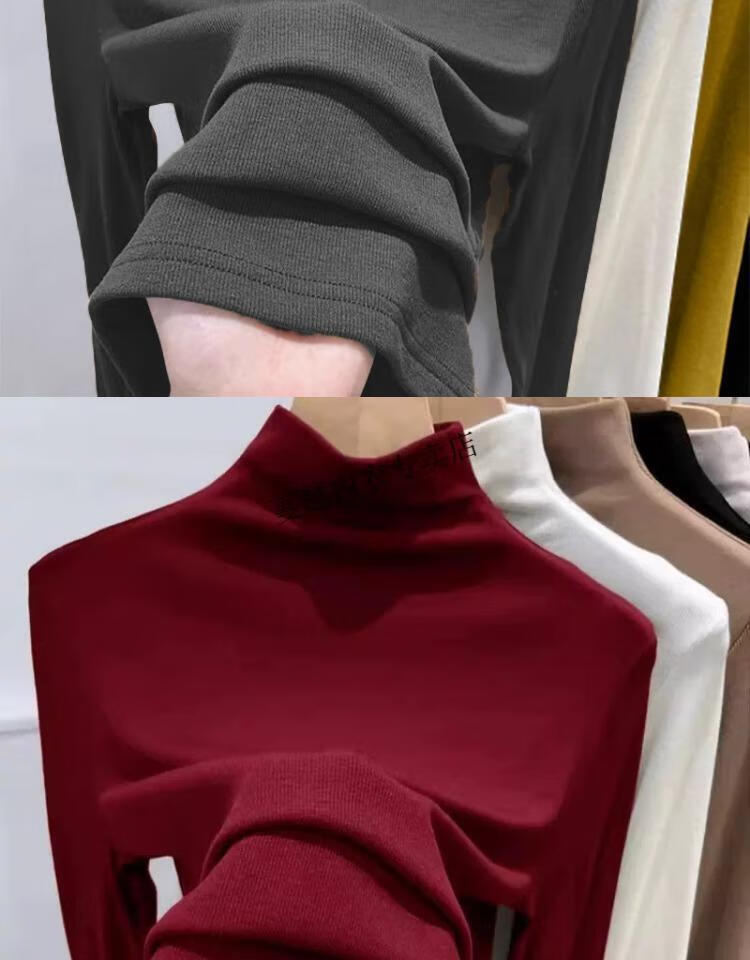 Modal Ancora red half turtleneck bottoming shirt for women slim fit autumn and winter German velvet new long-sleeved small fragrant style inner top burgundy M recommended under 90 pounds