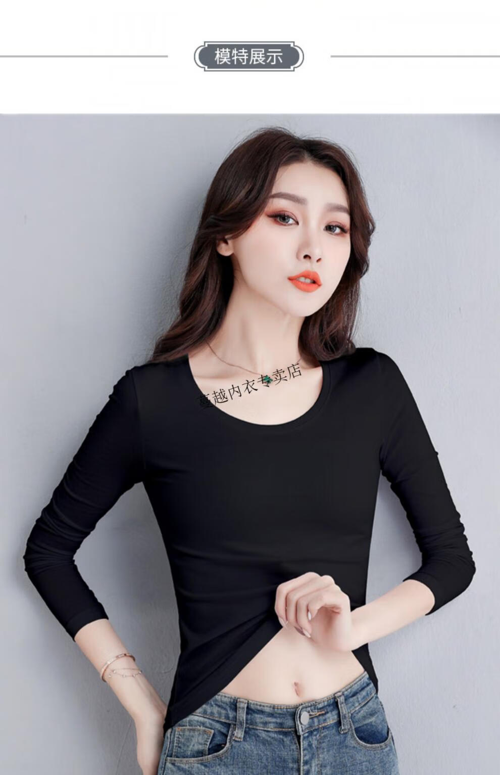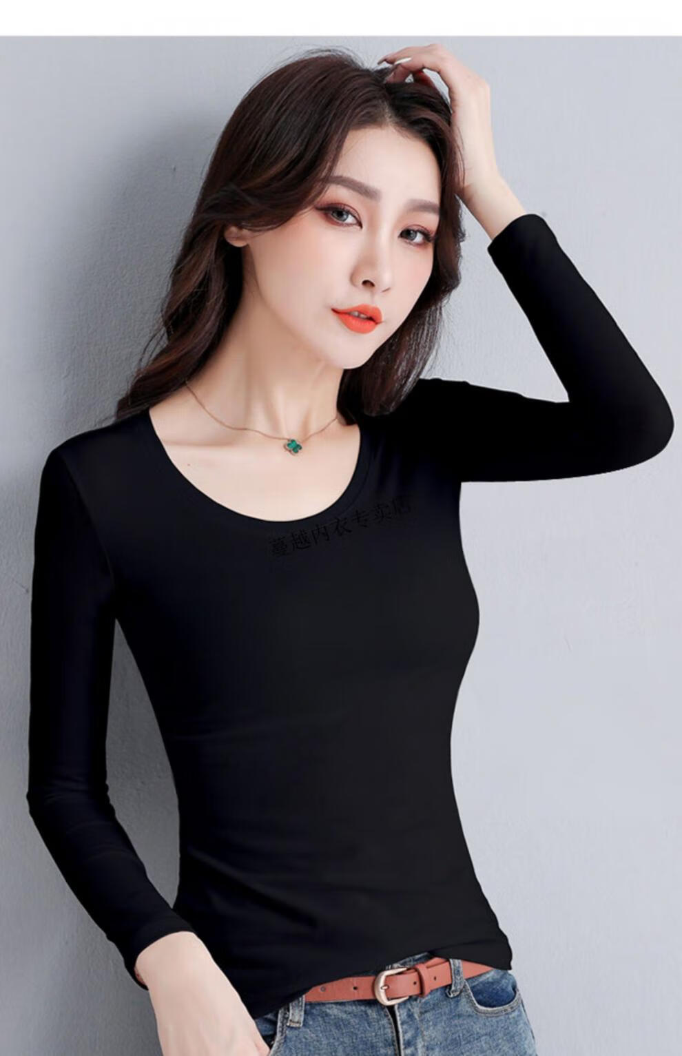 Modal pure cotton black bottoming shirt for women, long-sleeved inner wear, 2026 new spring, autumn and winter clothing, versatile slim fit, thin T-shirt, autumn coat, black V-neck, long-sleeved, velvet-free S, under 87 pounds