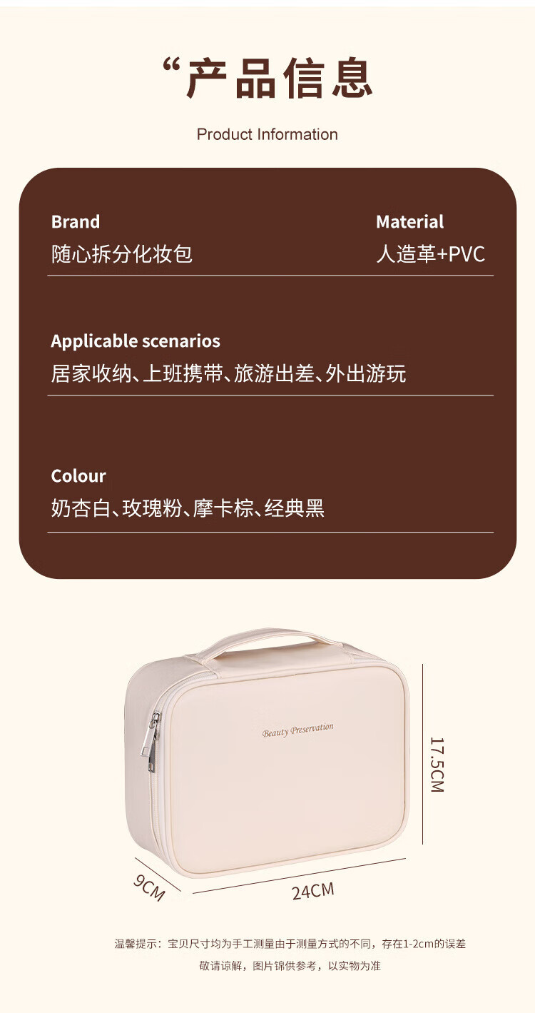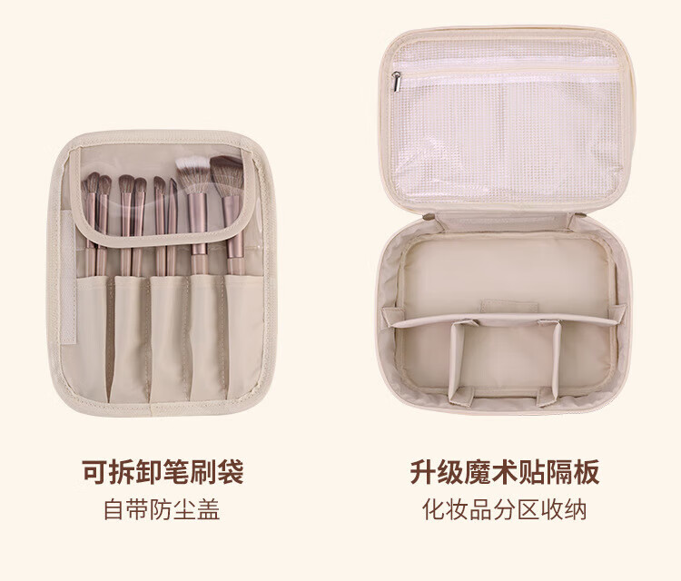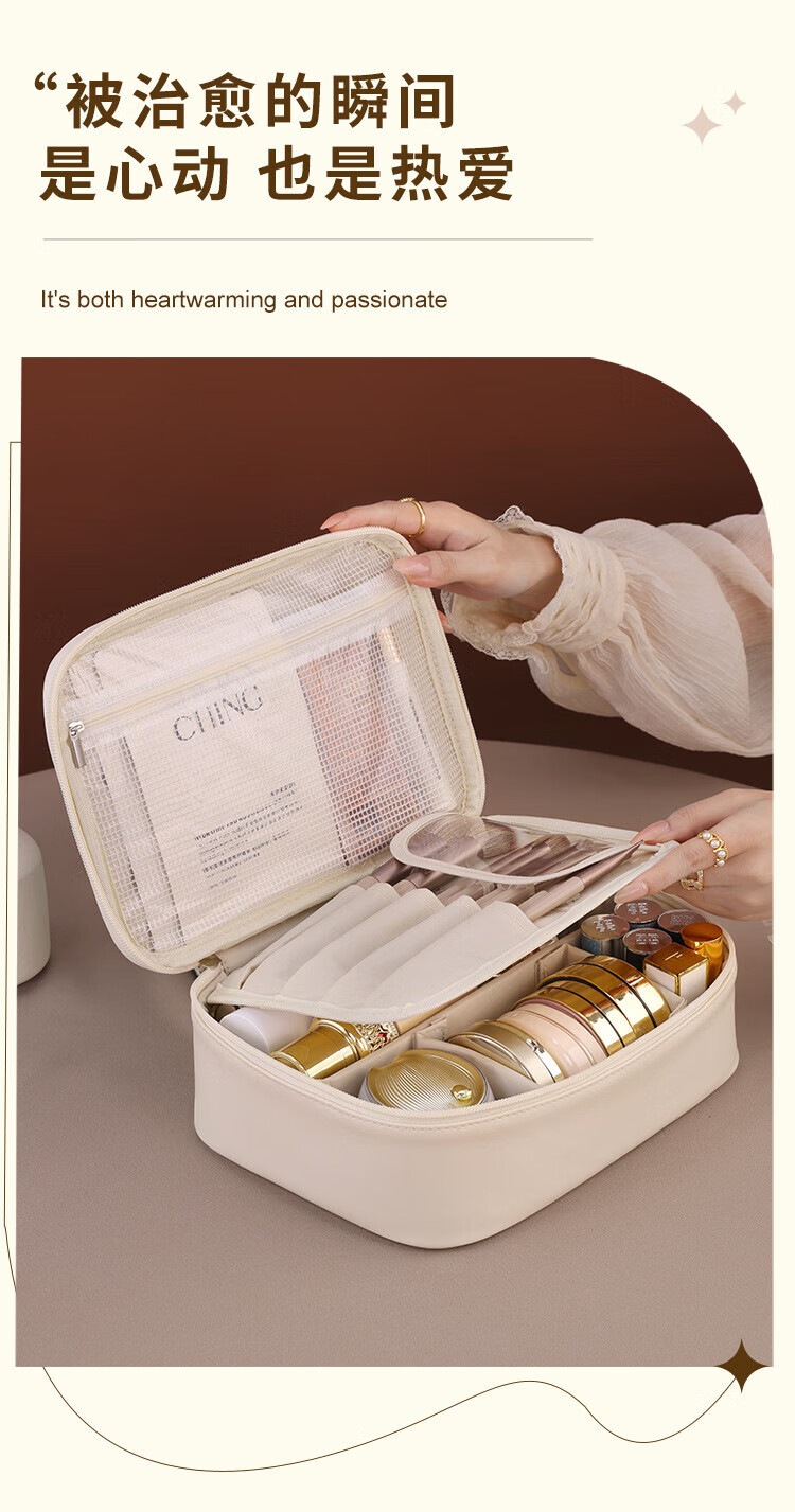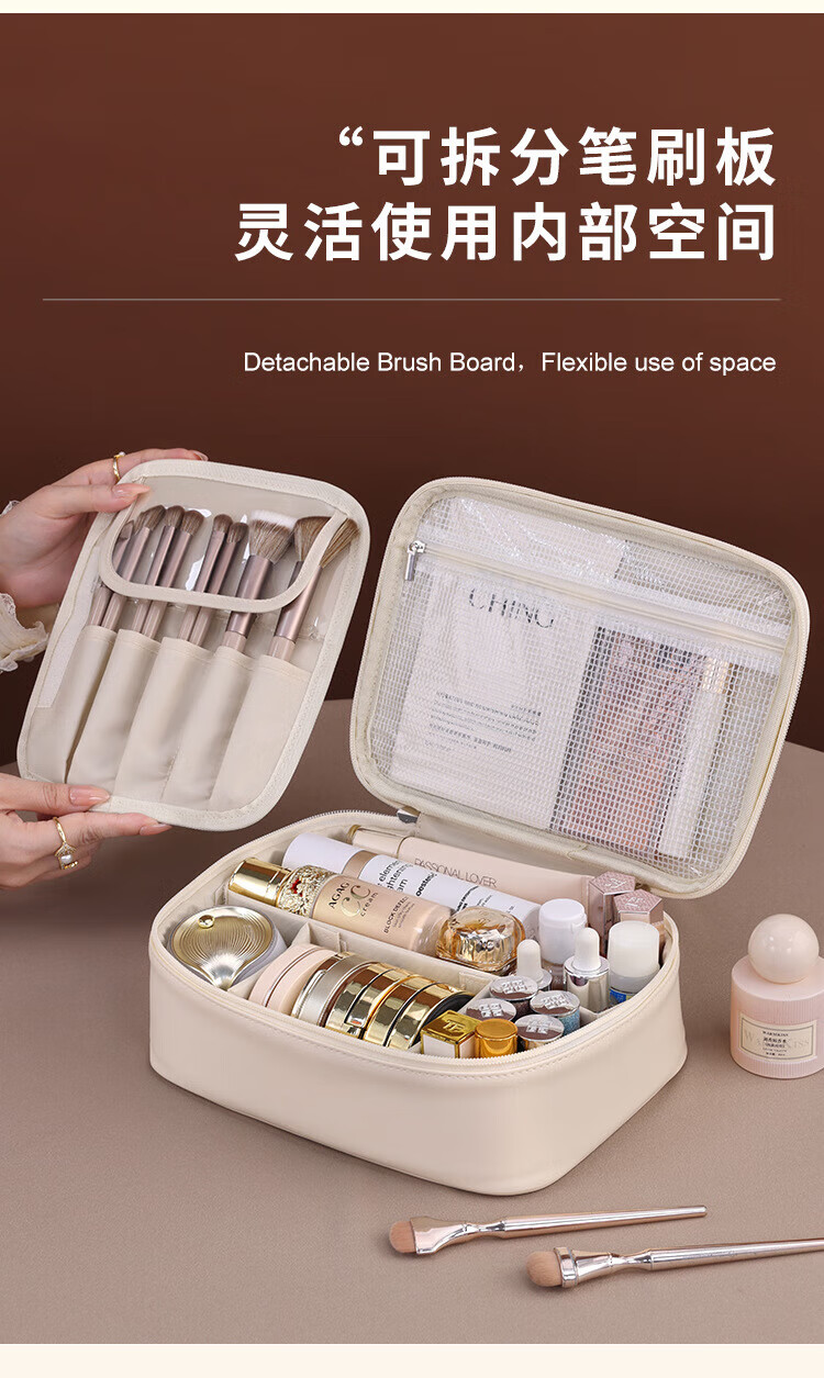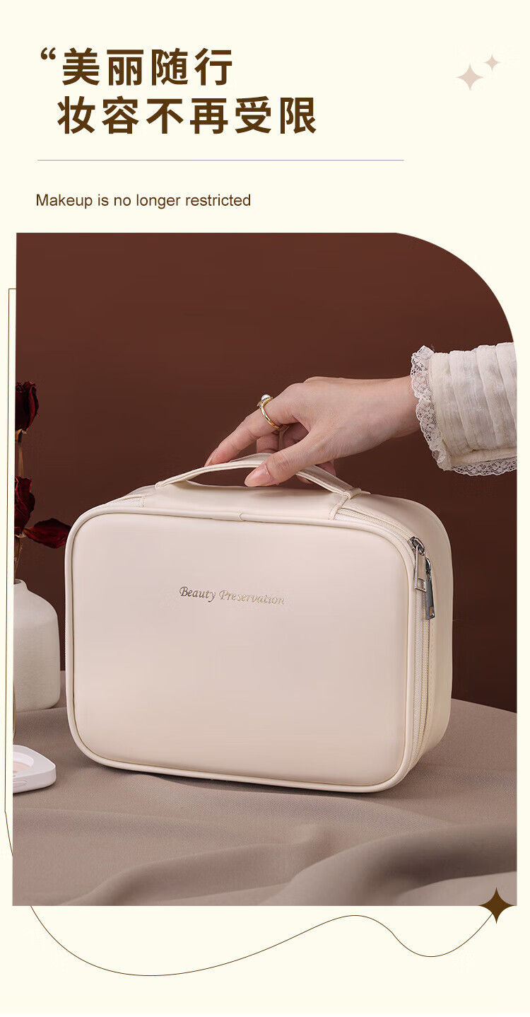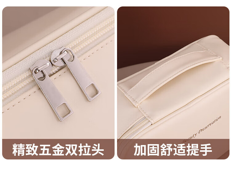 Cosmetics partition storage bag portable large capacity cosmetic bag light luxury high-end travel special portable toiletry bag milk apricot white three-in-one portable cosmetic bag 24*9*17.5cm