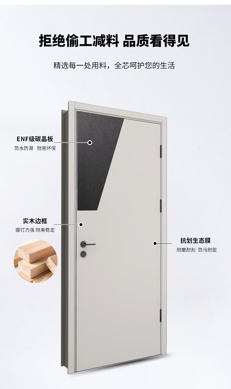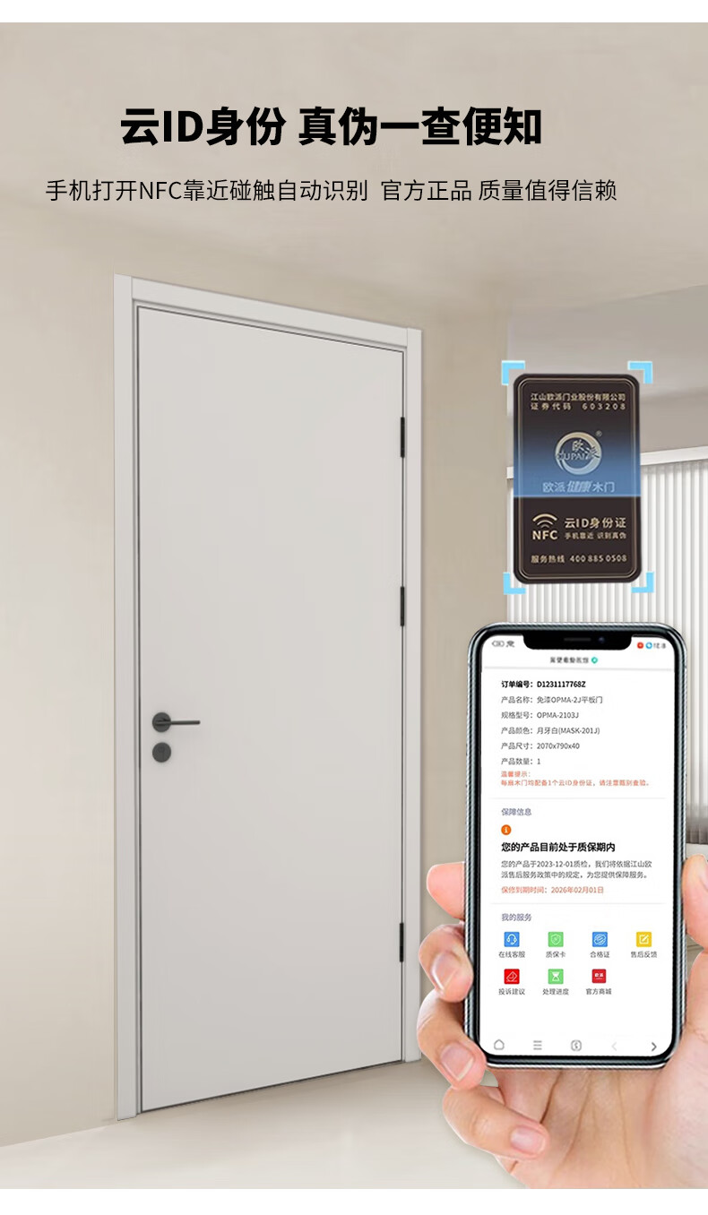 Oupai (OUPAI) wooden door bedroom door interior wooden door room door paint-free door paint-free door full set of wooden door silent door customized carbon crystal door and door frame set Jiangshan wooden door package installation 2001S color contact customer service notes door leaf + double door package + Oupai hardware lock customization