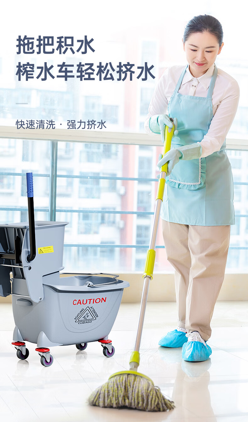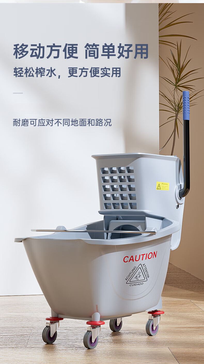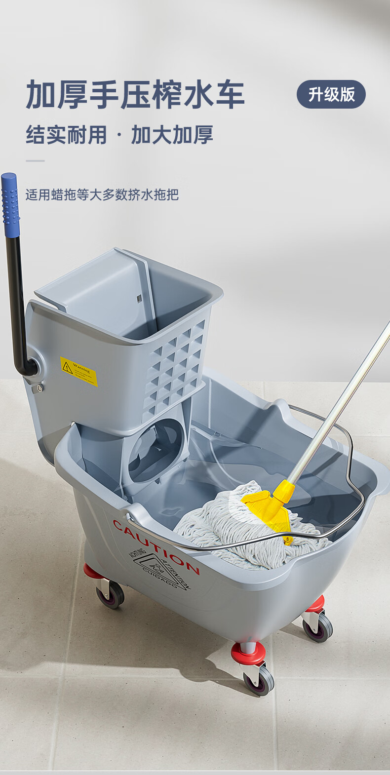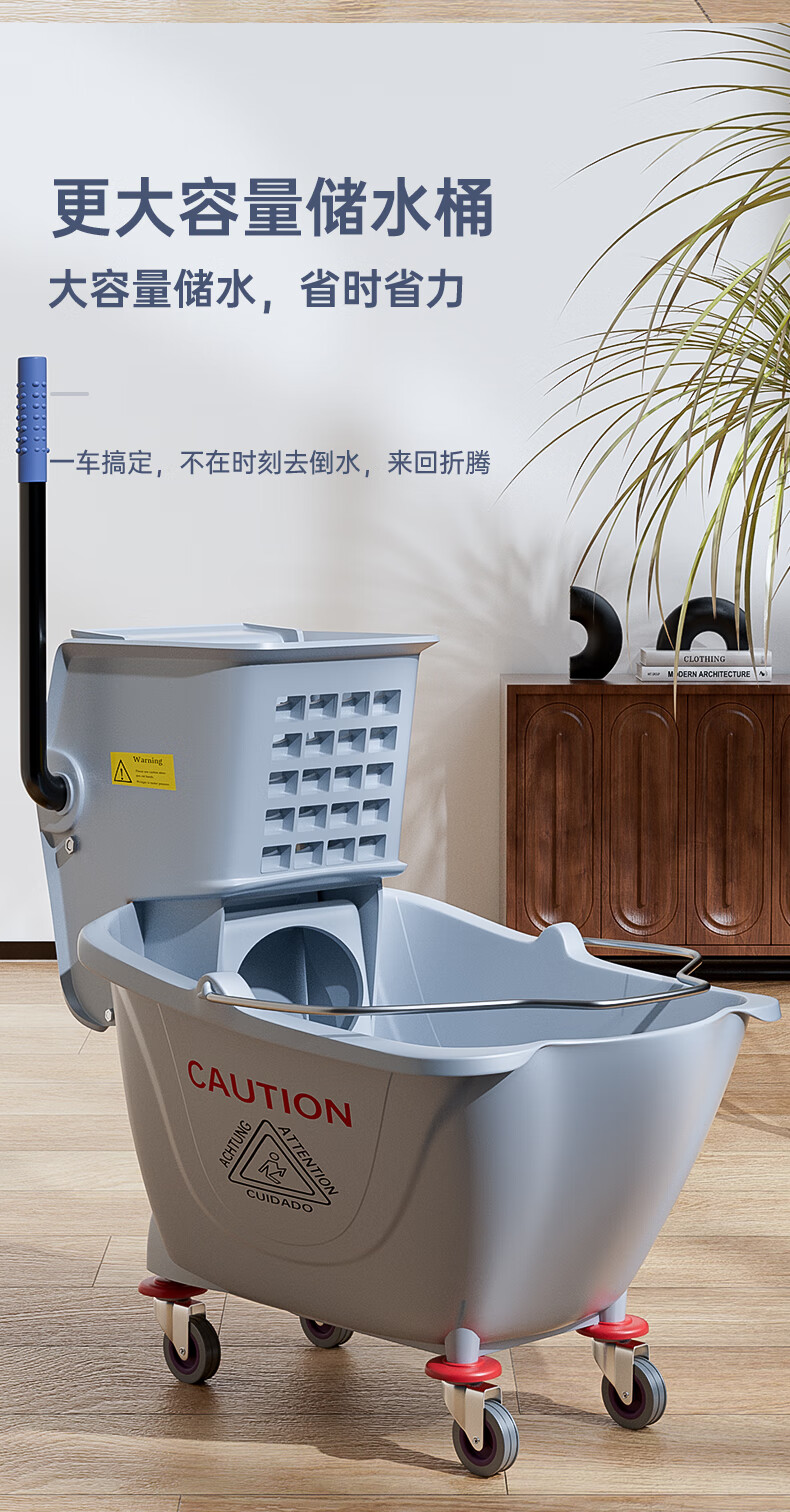 Commercial water press truck mop bucket wash mop squeeze water basket mop press water hotel mobile mop wheeled water truck extra thick 36L red