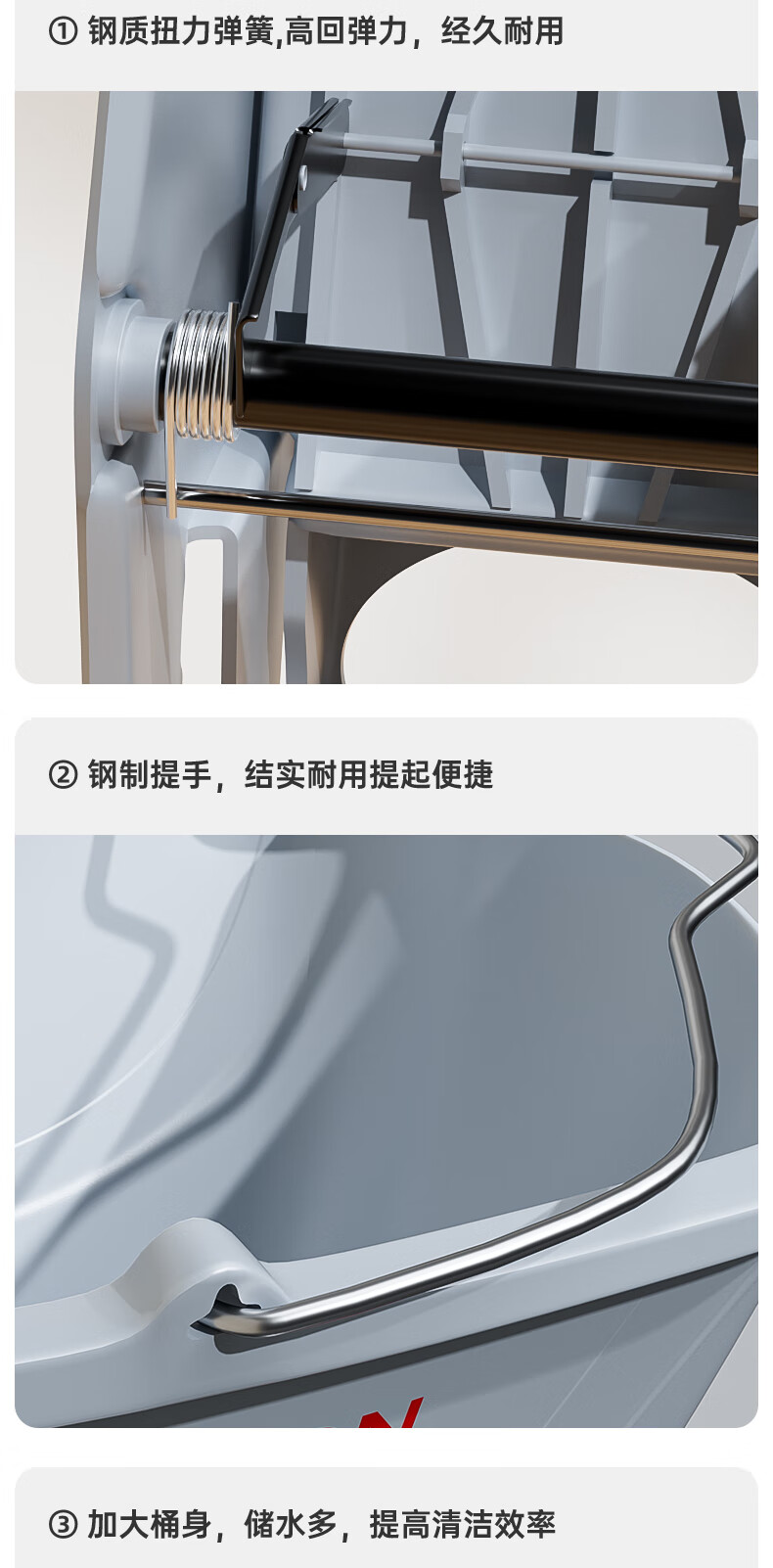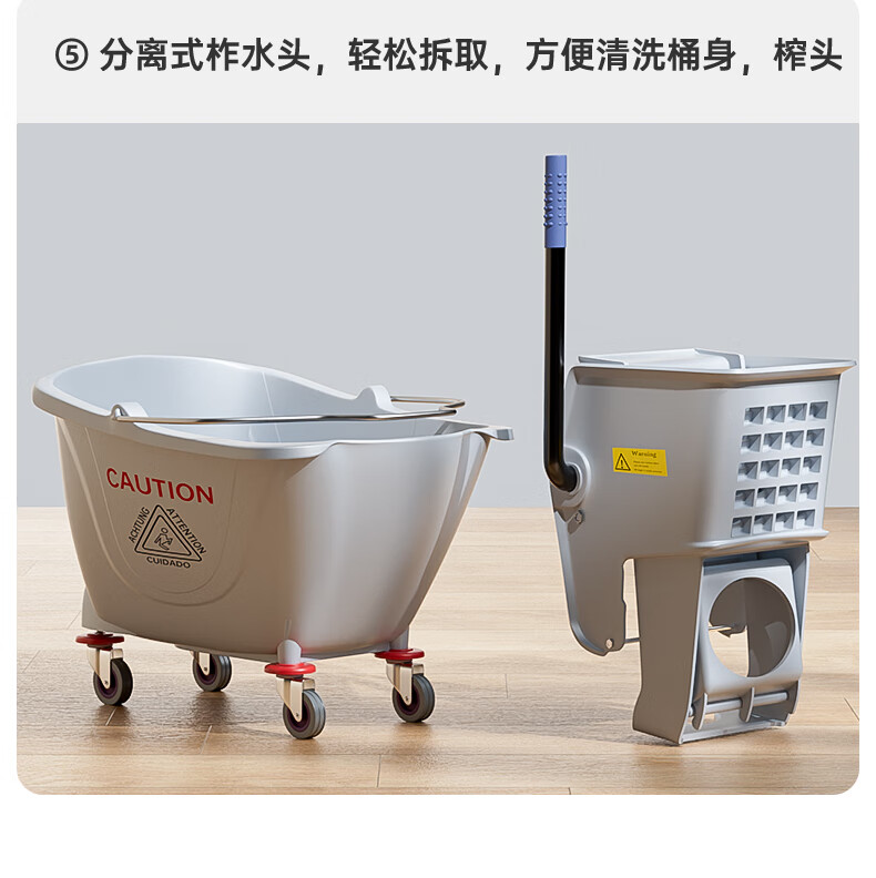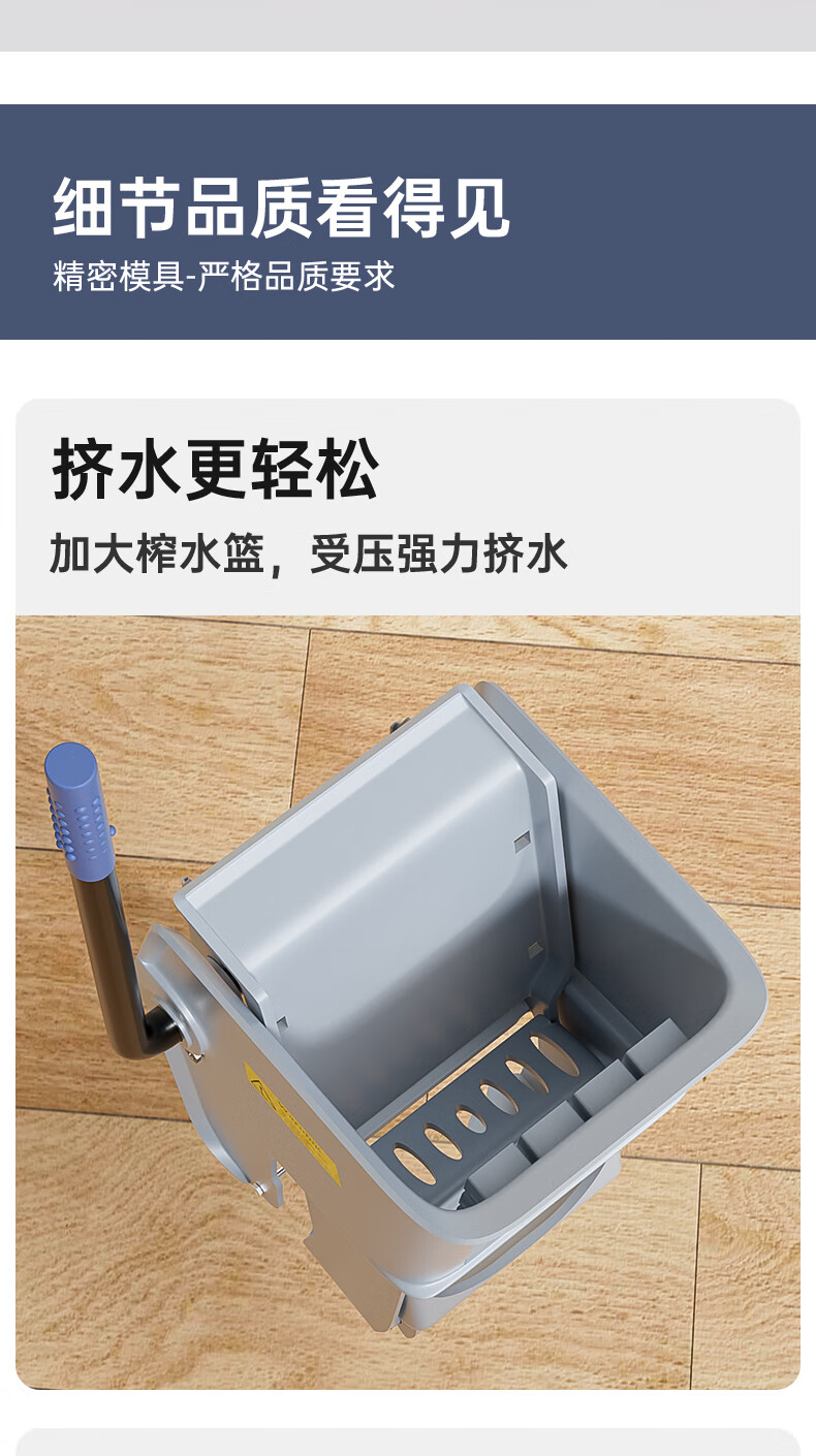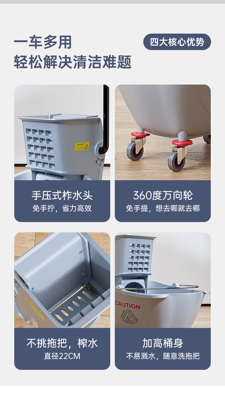 Commercial water press truck mop bucket wash mop squeeze water basket mop press water hotel mobile mop wheeled water truck extra thick 36L red