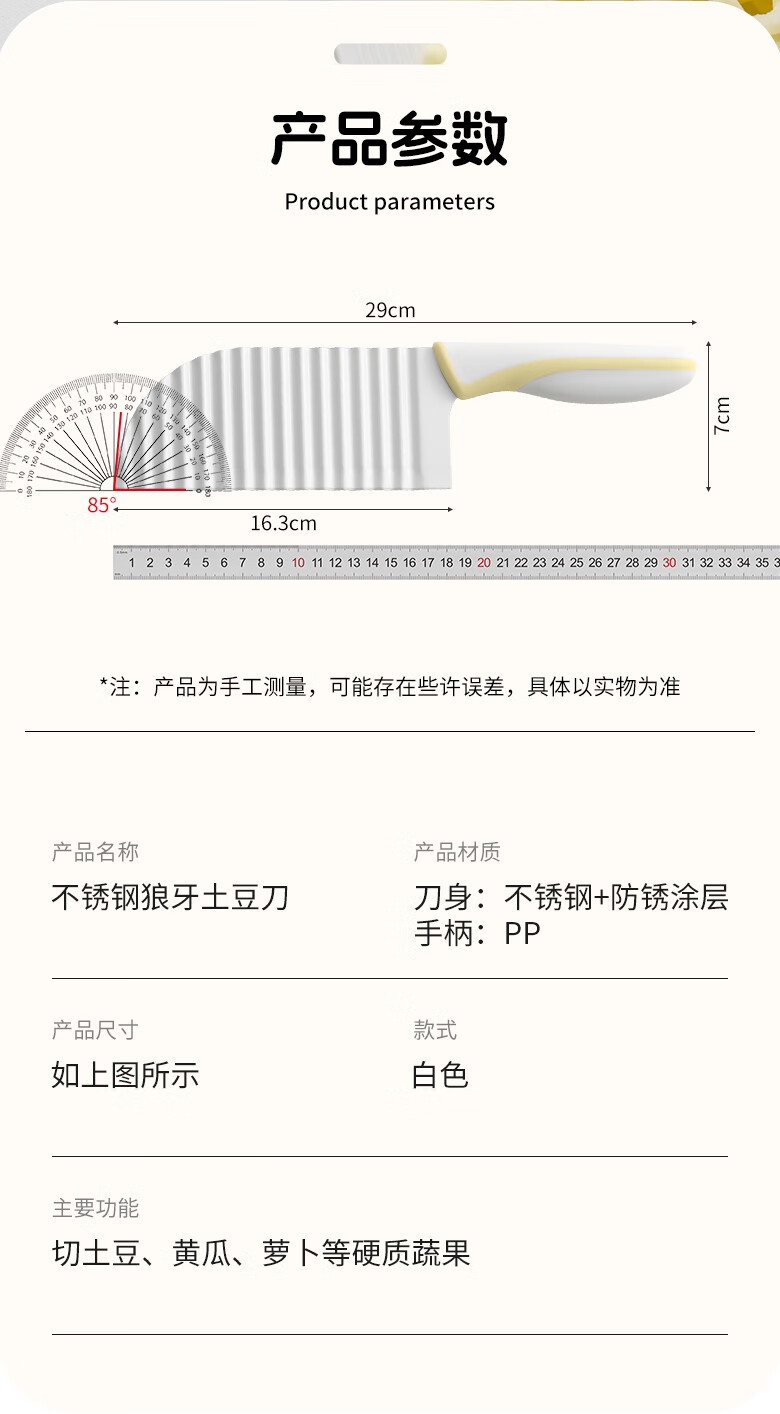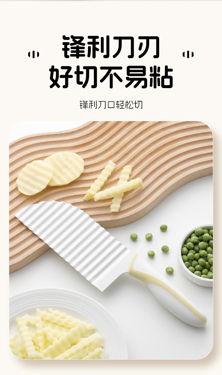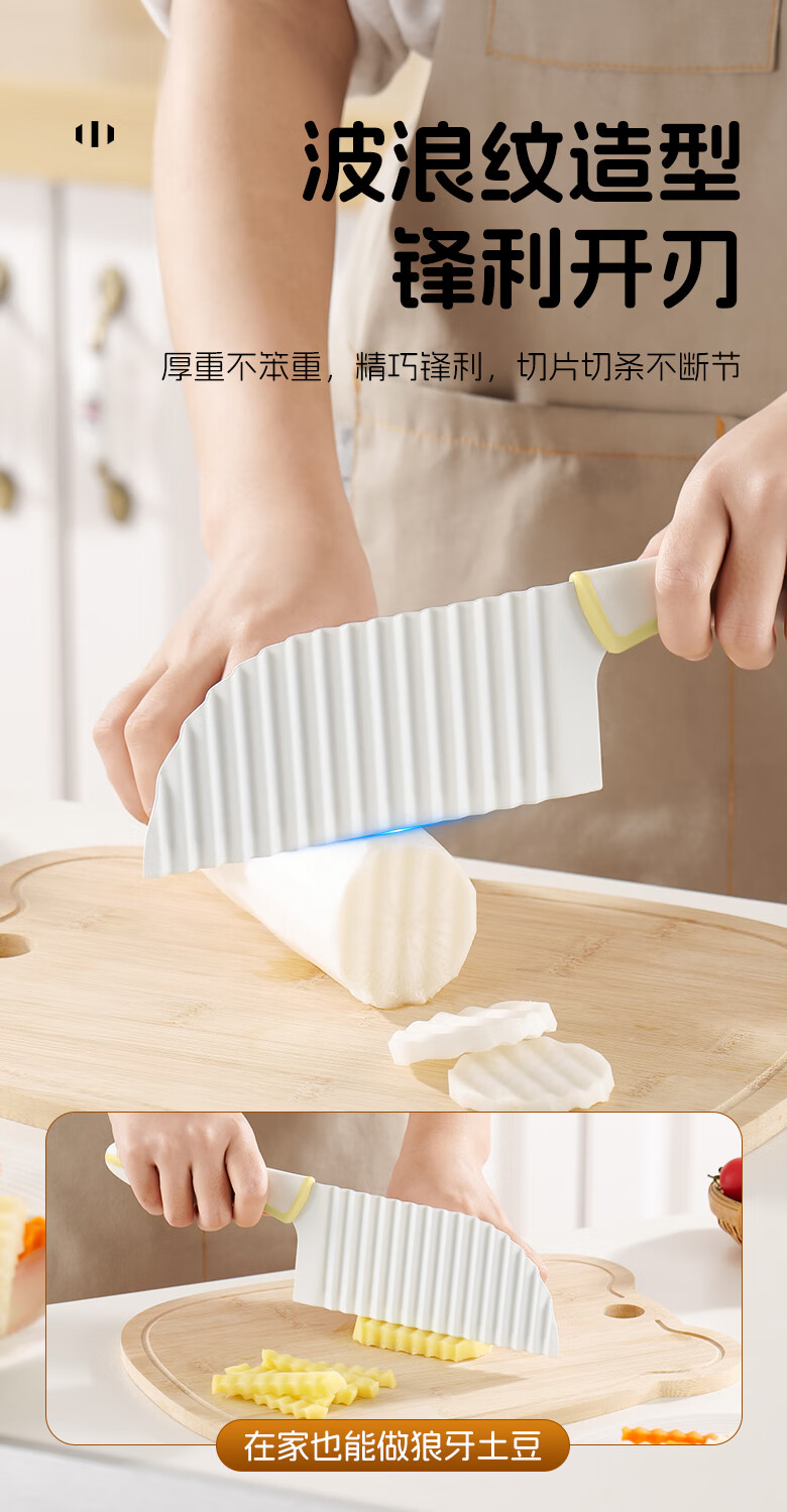 Baig Potato Wolf Tooth Knife Corrugated Knife Stainless Steel Wave Knife Kitchen Cutting Potatoes Fancy French Fries Knife Vegetable Cutting Artifact Wolf Tooth Potato Knife