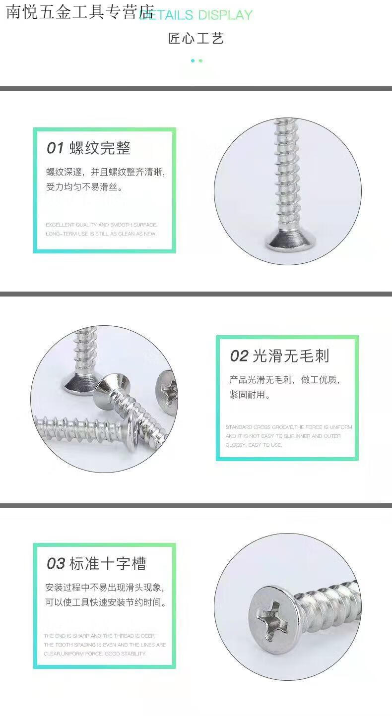 An Junsheng stainless steel countersunk head self-tapping screws national standard flat wood screws screws Rose cross stainless steel screws M3.5*16 (about 550 pieces per pound) five pounds