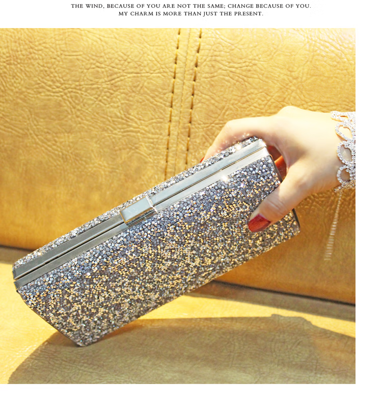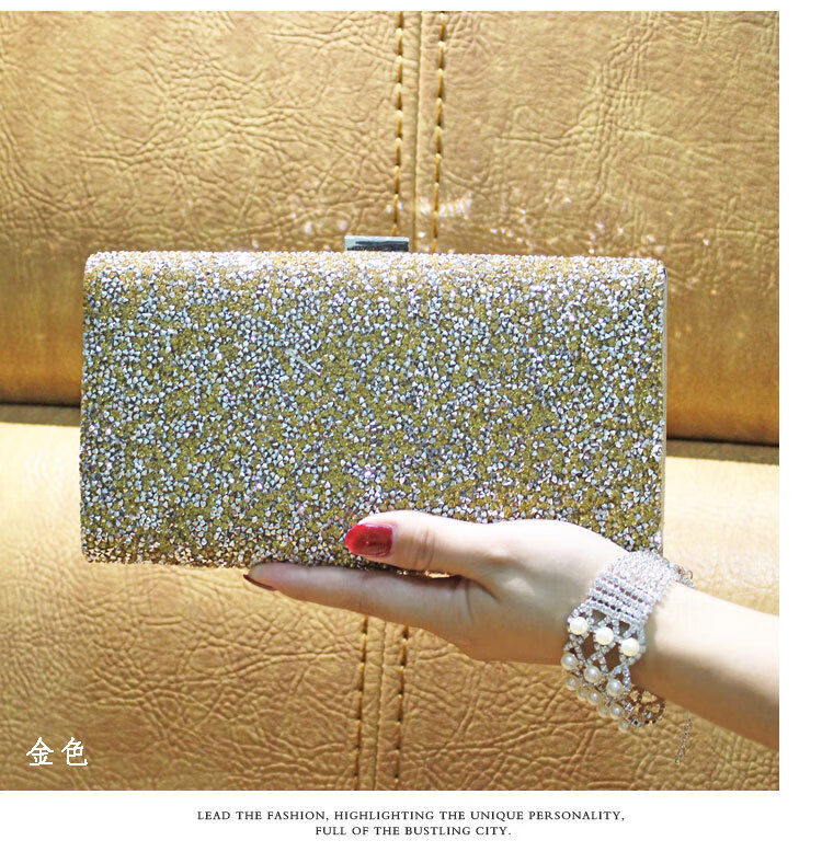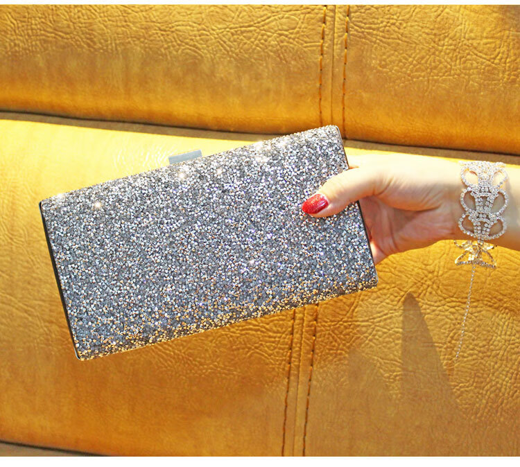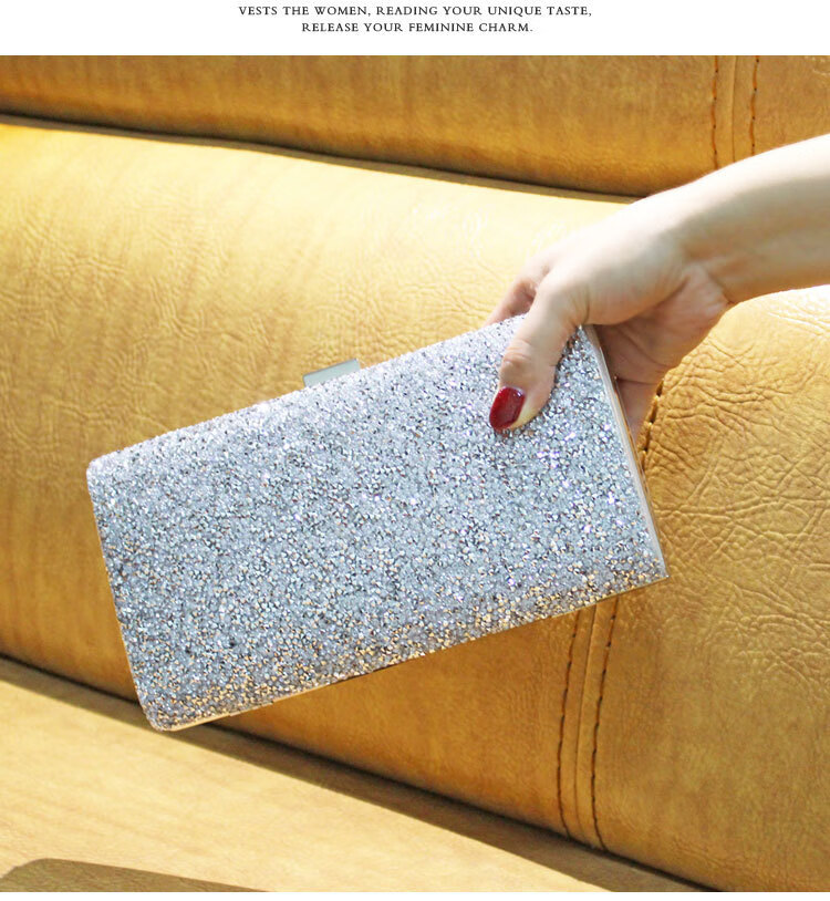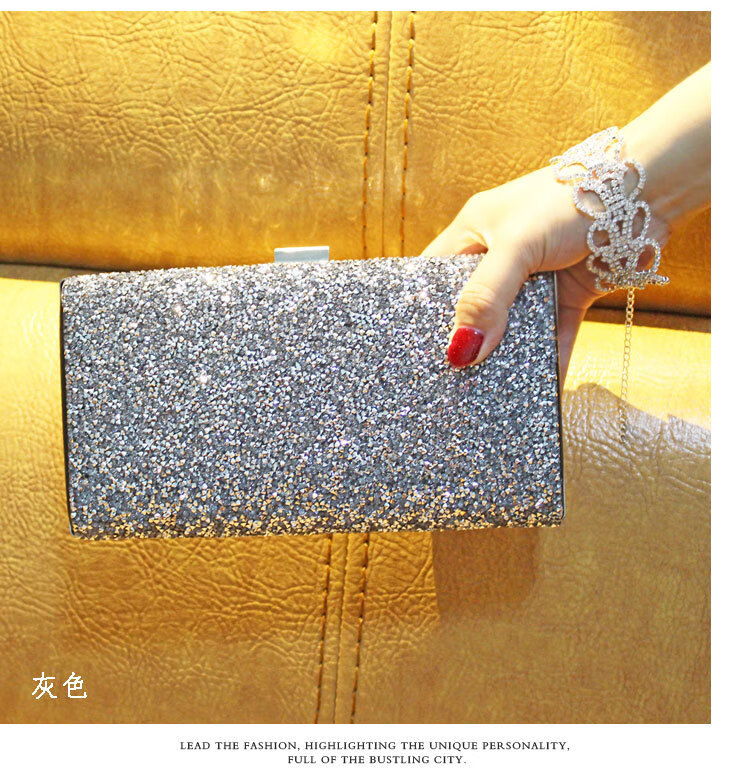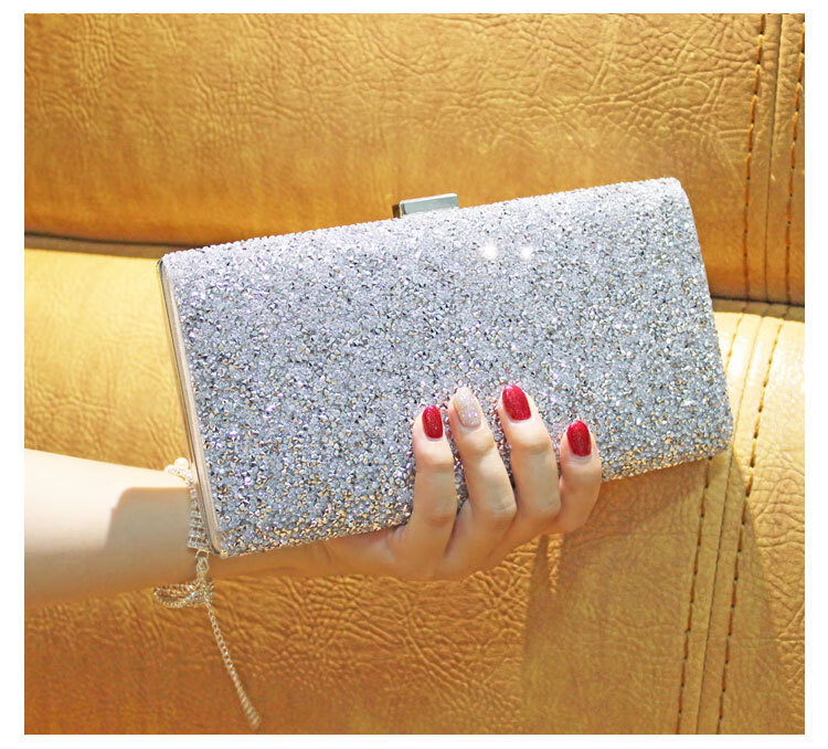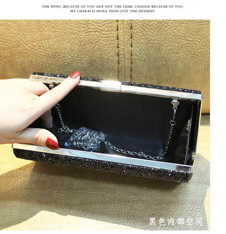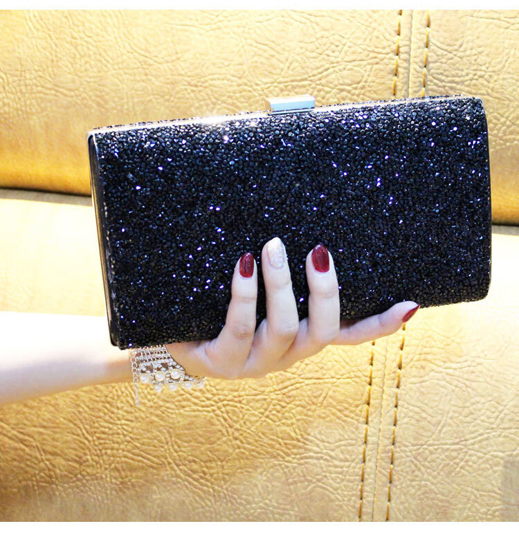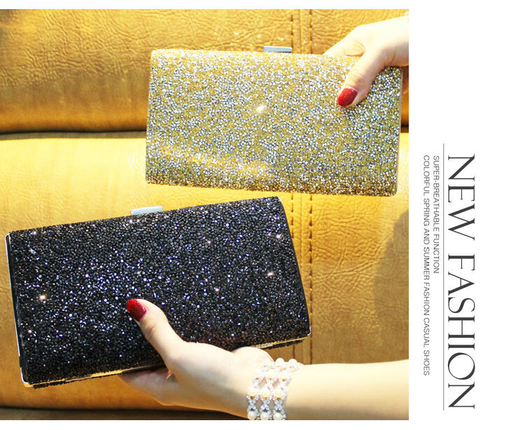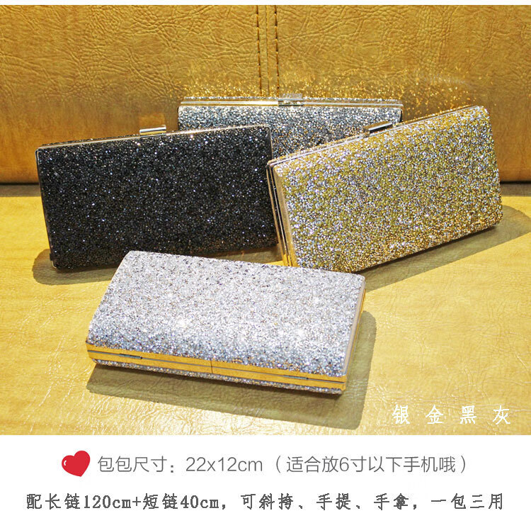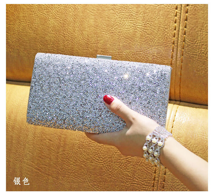 Kangaroo Leather Handbag Wallet Clutch Women's Banquet Bag Dress Cheongsam Rhinestone Women's Bag Gray (Single Sided Diamond)*