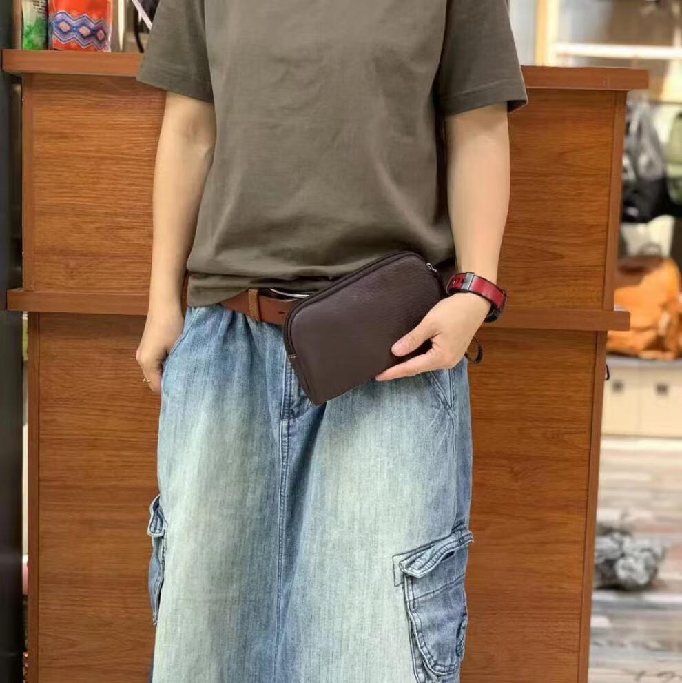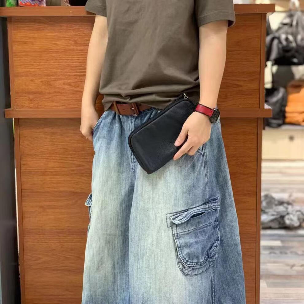 Kangaroo Leather Clutch Couple's Large Capacity Clutch Cowhide Commuting Mobile Phone Bag Women's Long Wallet Coin Purse Black God of Wealth Clutch