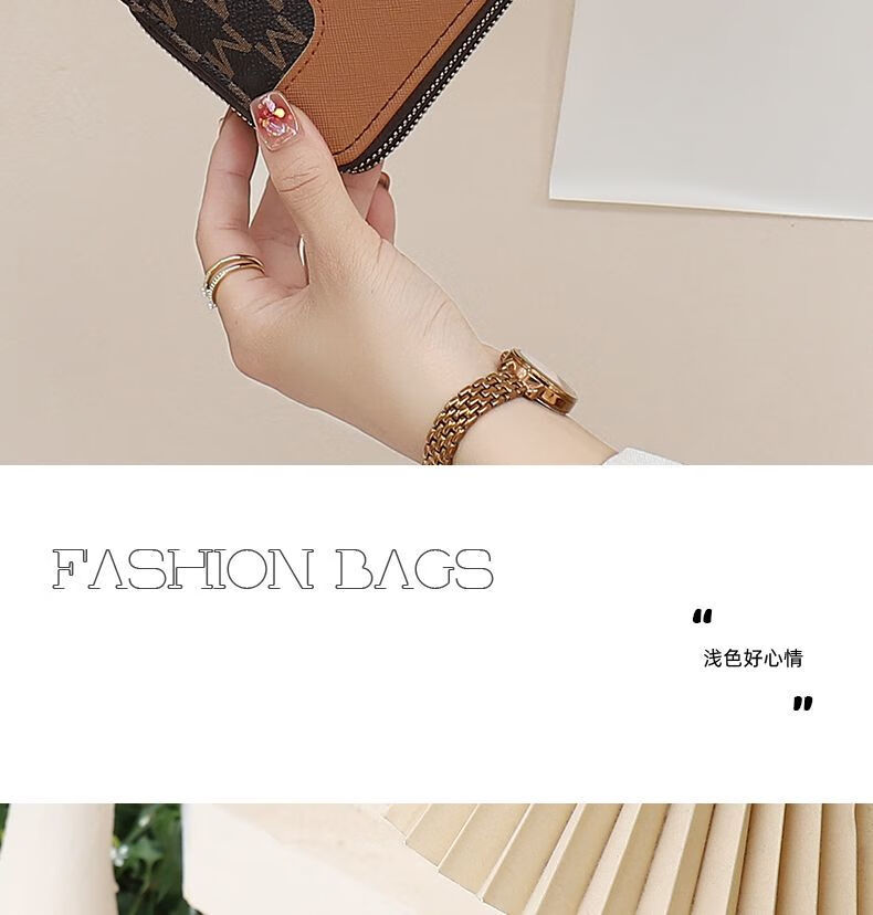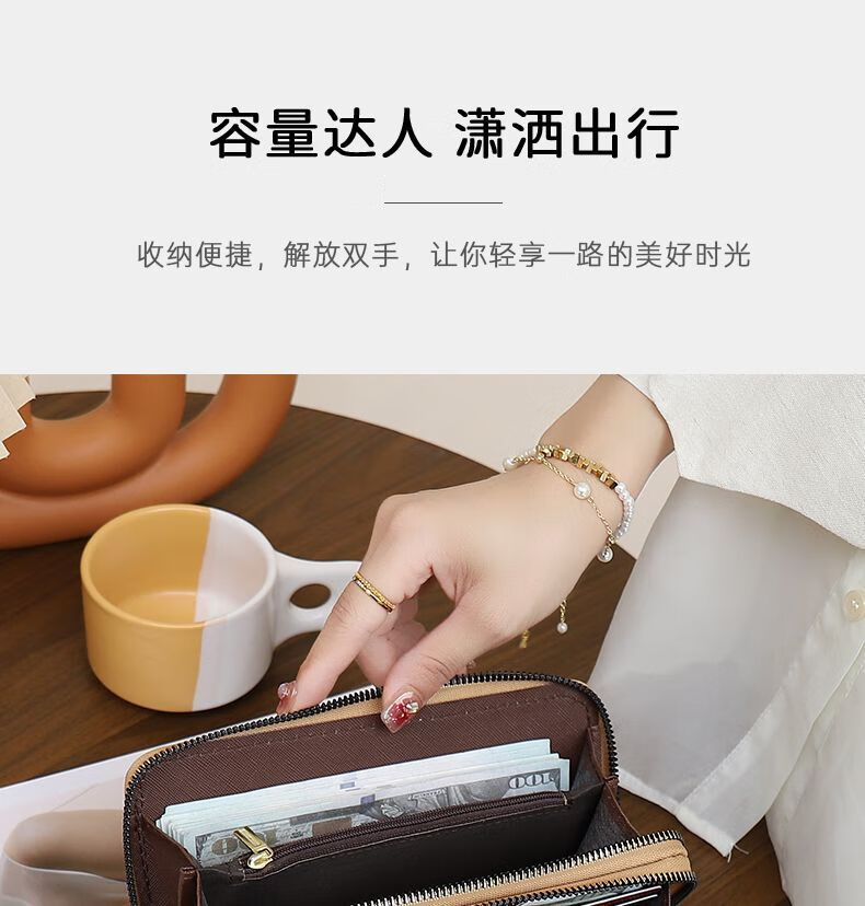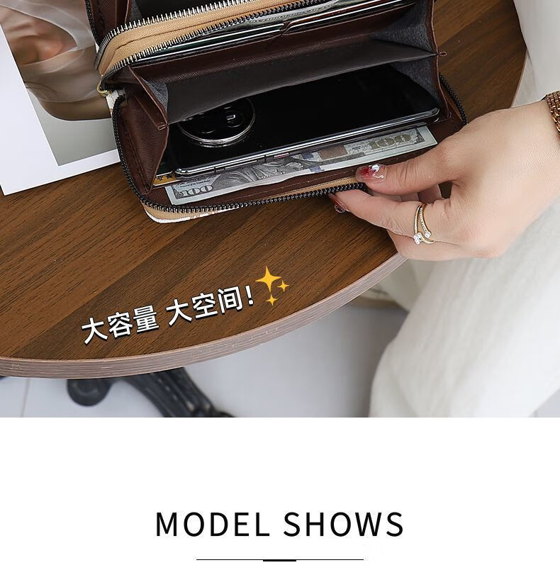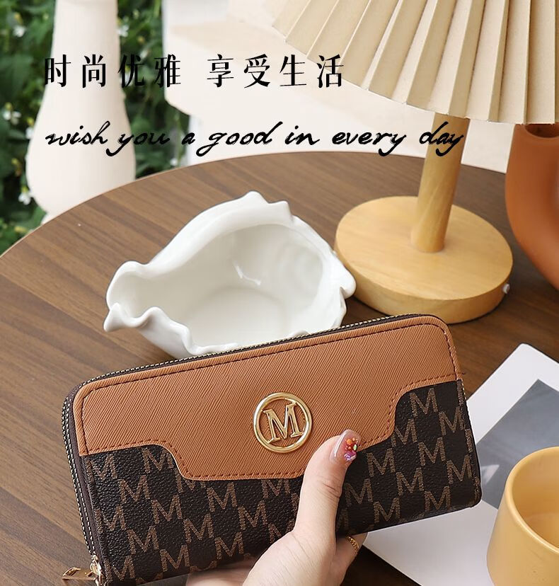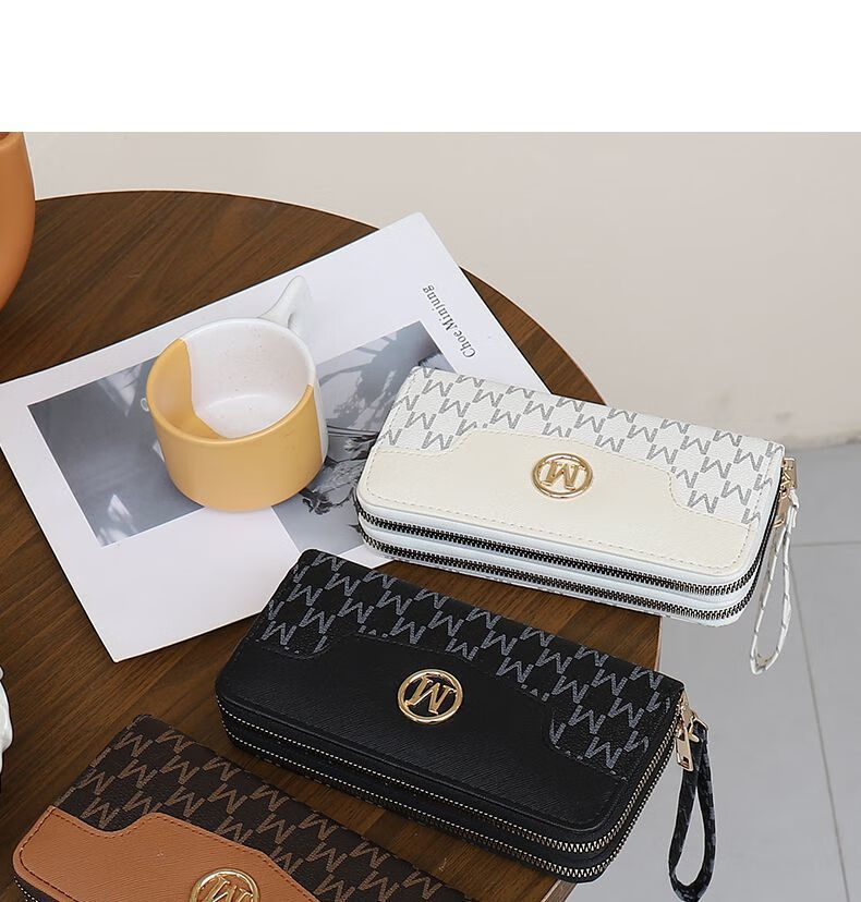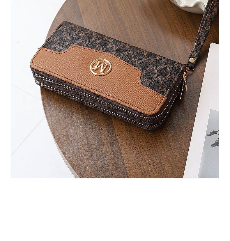 Kangaroo Double Zipper Wallet 2025 New Printed Splicing Large Capacity Clutch Practical Long Wallet Card Holder Integrated Brown