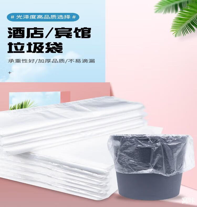Transparent garbage bags wholesale flat mouth guest room hotel bed and breakfast small white disposable hotel special thickened commercial 10,000 white 45*45 ultra-thin style (single 2g)