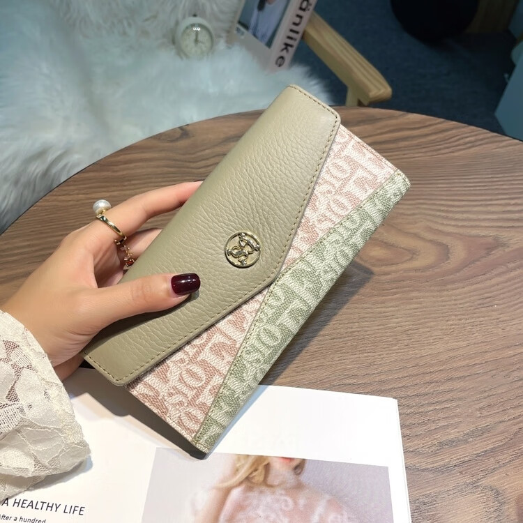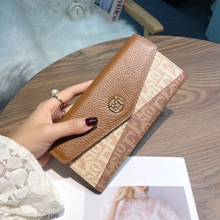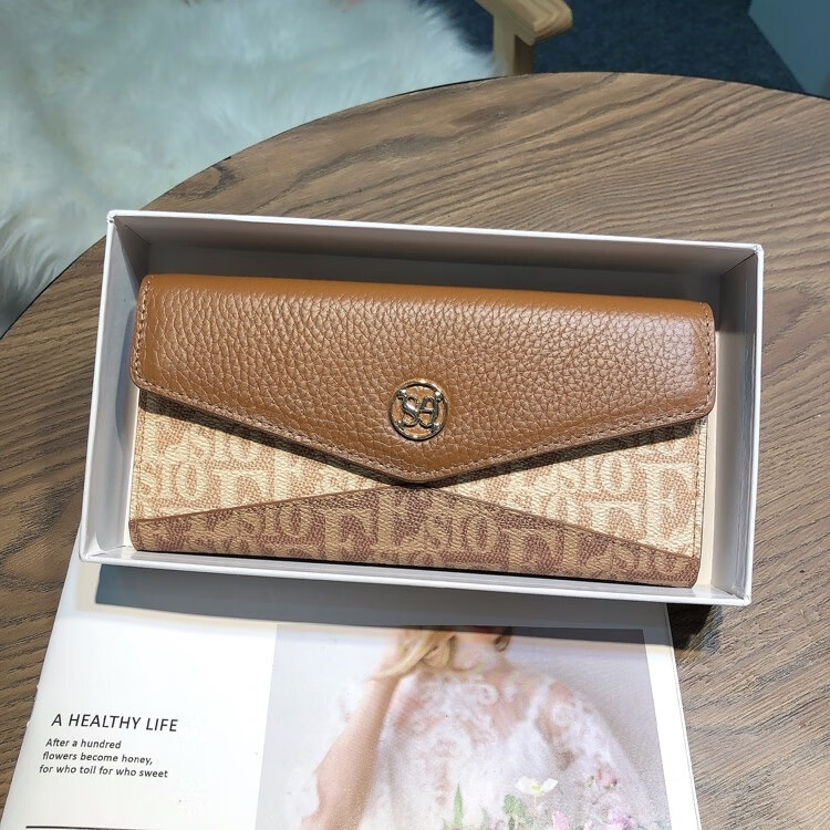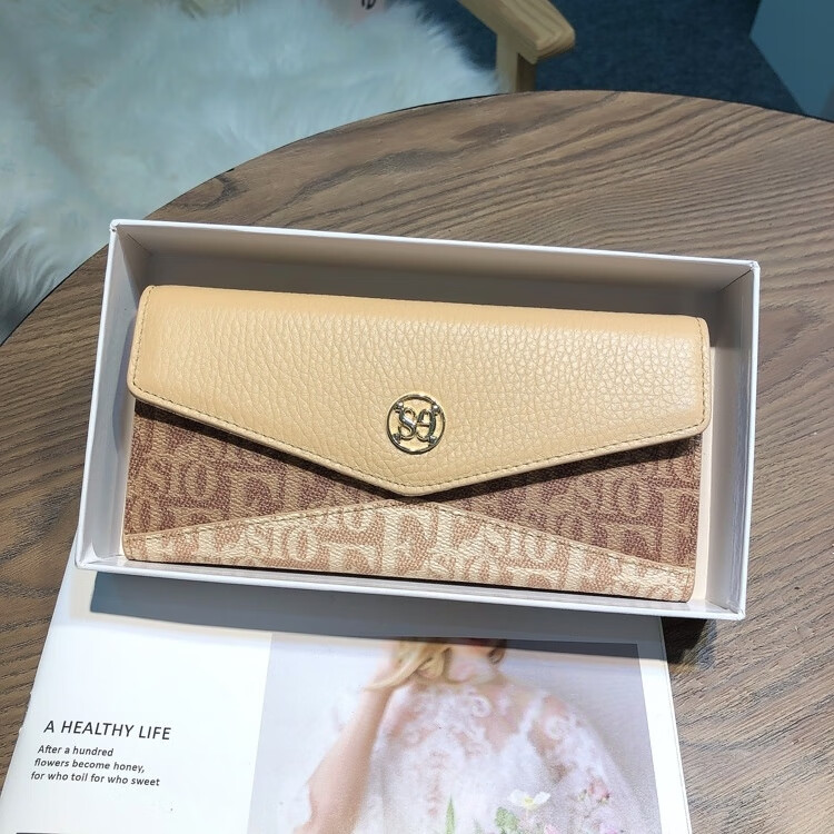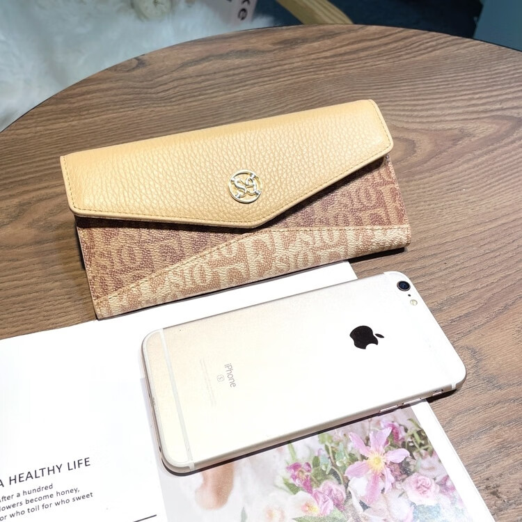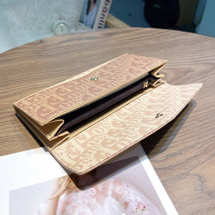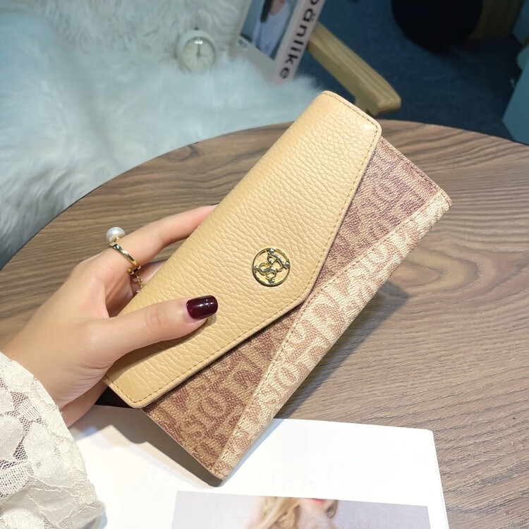 Kangaroo leather wallet 2025 new style women's European and American fashion long wallet large capacity card holder mobile phone bag coffee with earthy yellow