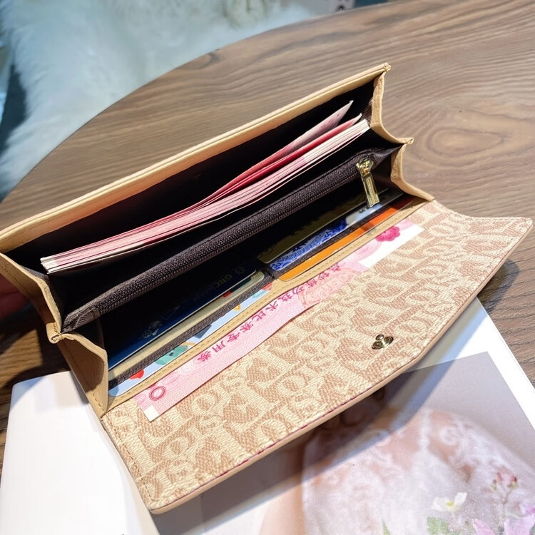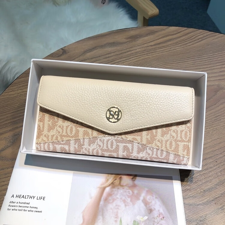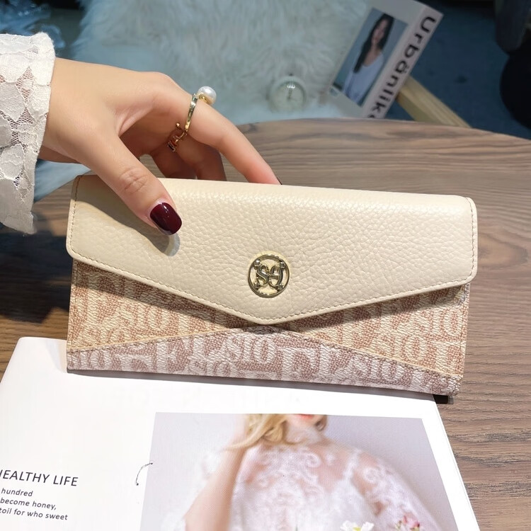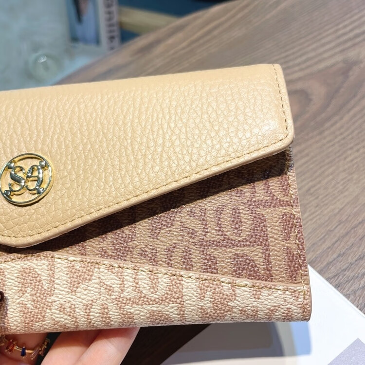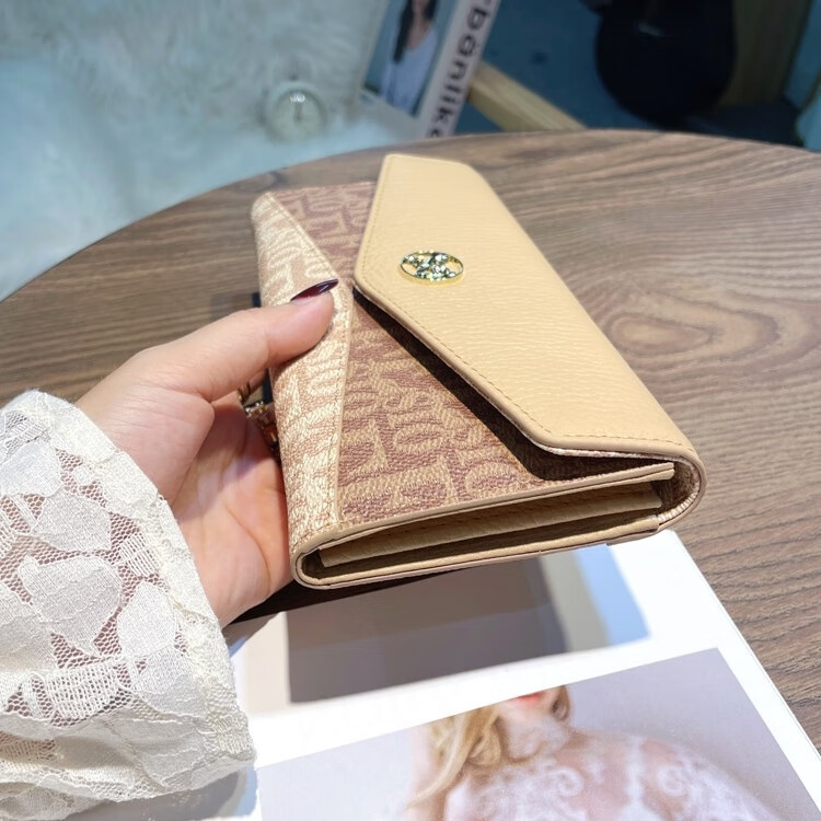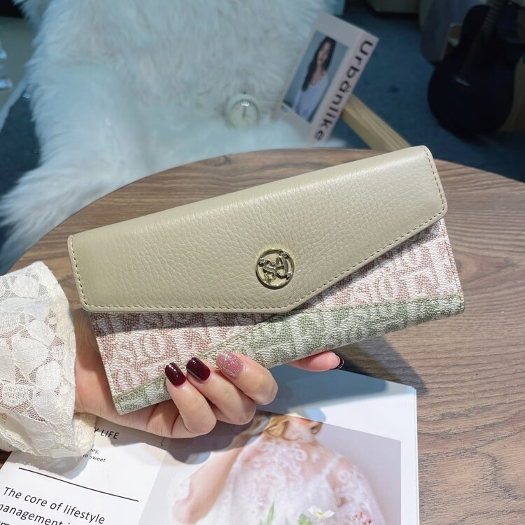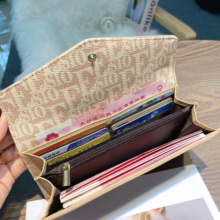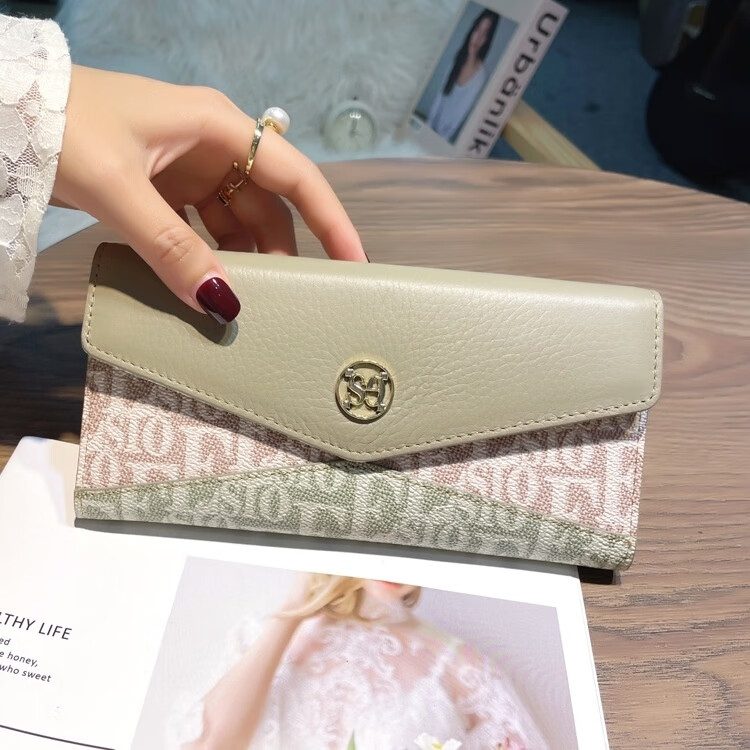 Kangaroo leather wallet 2025 new style women's European and American fashion long wallet large capacity card holder mobile phone bag coffee with earthy yellow