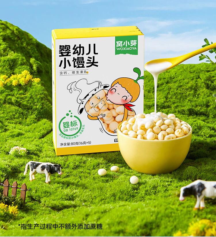 Wo Xiaoya, choose 10 out of 89 and get 4 free, baby snack biscuits, organic rice cakes for infants, luncheon meat sticks, candies, steamed buns, infant steamed buns 80g