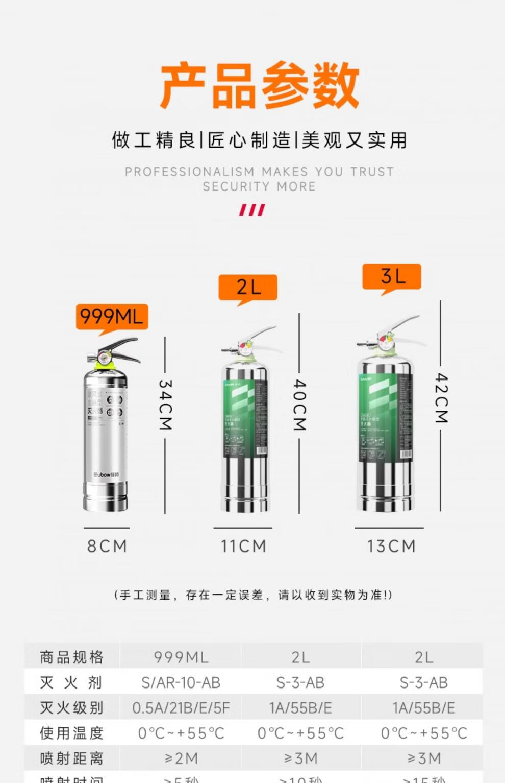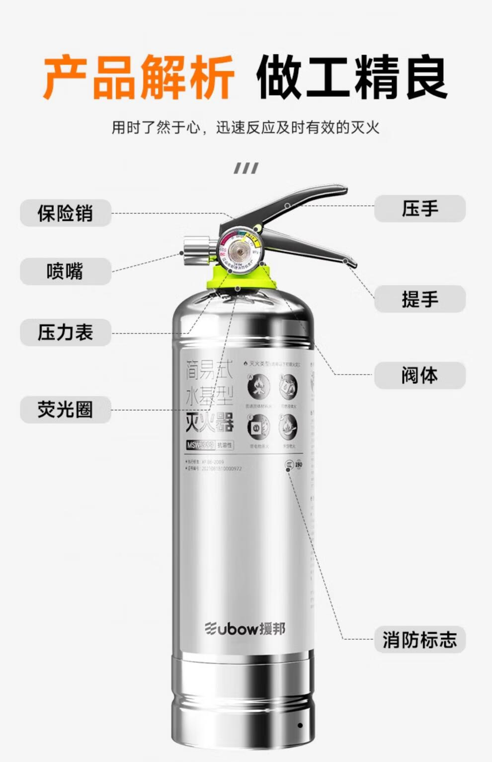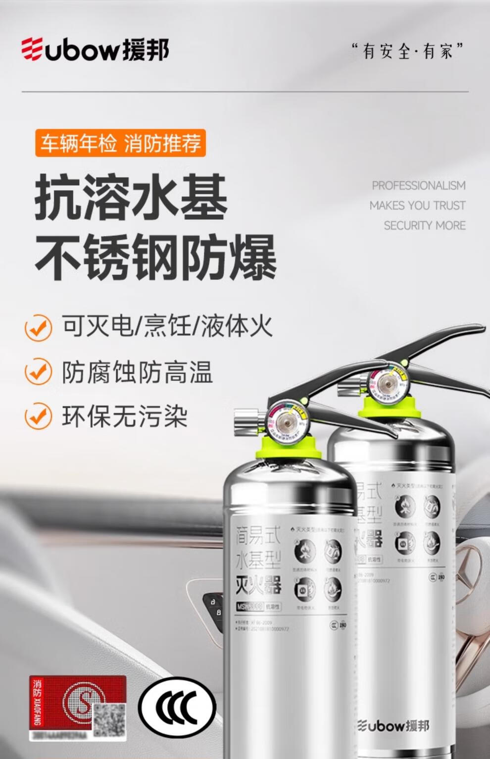 Vehicle-mounted fire extinguisher for private cars, high-temperature-resistant and explosion-proof stainless steel, household water-based fire extinguisher annual fire inspection, new generation environmentally friendly water-based 1L stainless steel, rust-proof and explosion-proof, insured in China, delivered to vehicle