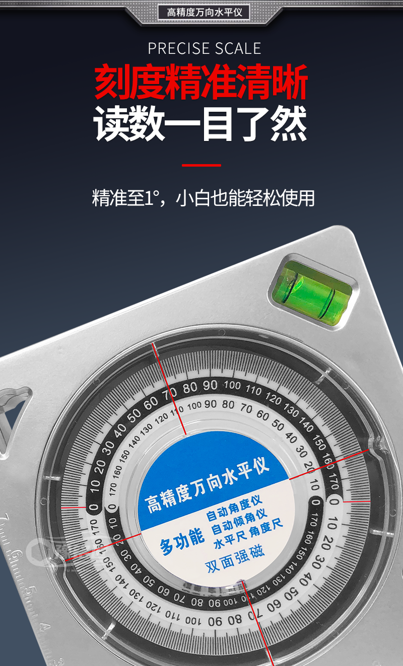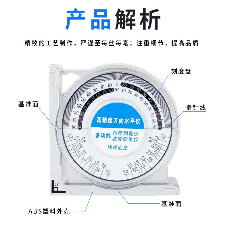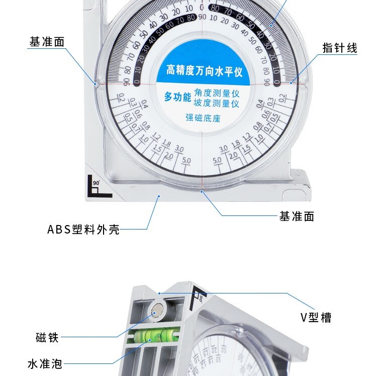 Angle measuring instrument level ruler high-precision slope meter with magnetic universal ruler slope angle ruler bricklayer tool upgraded double-sided strong tape scale