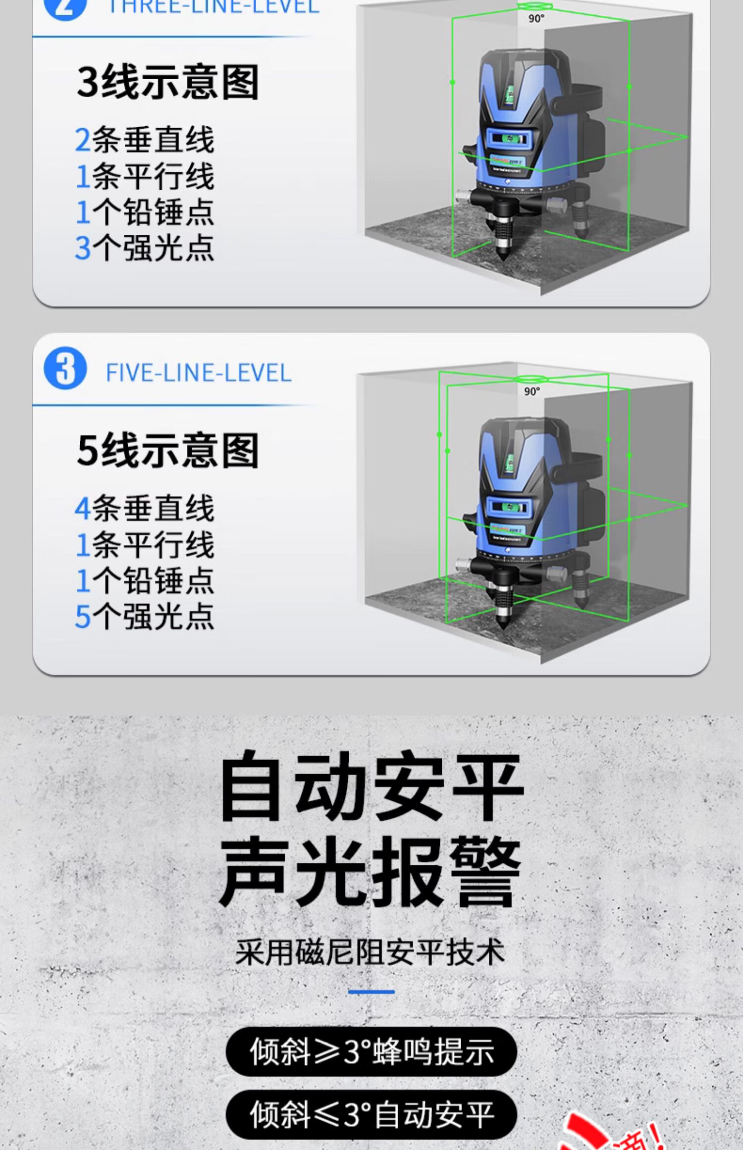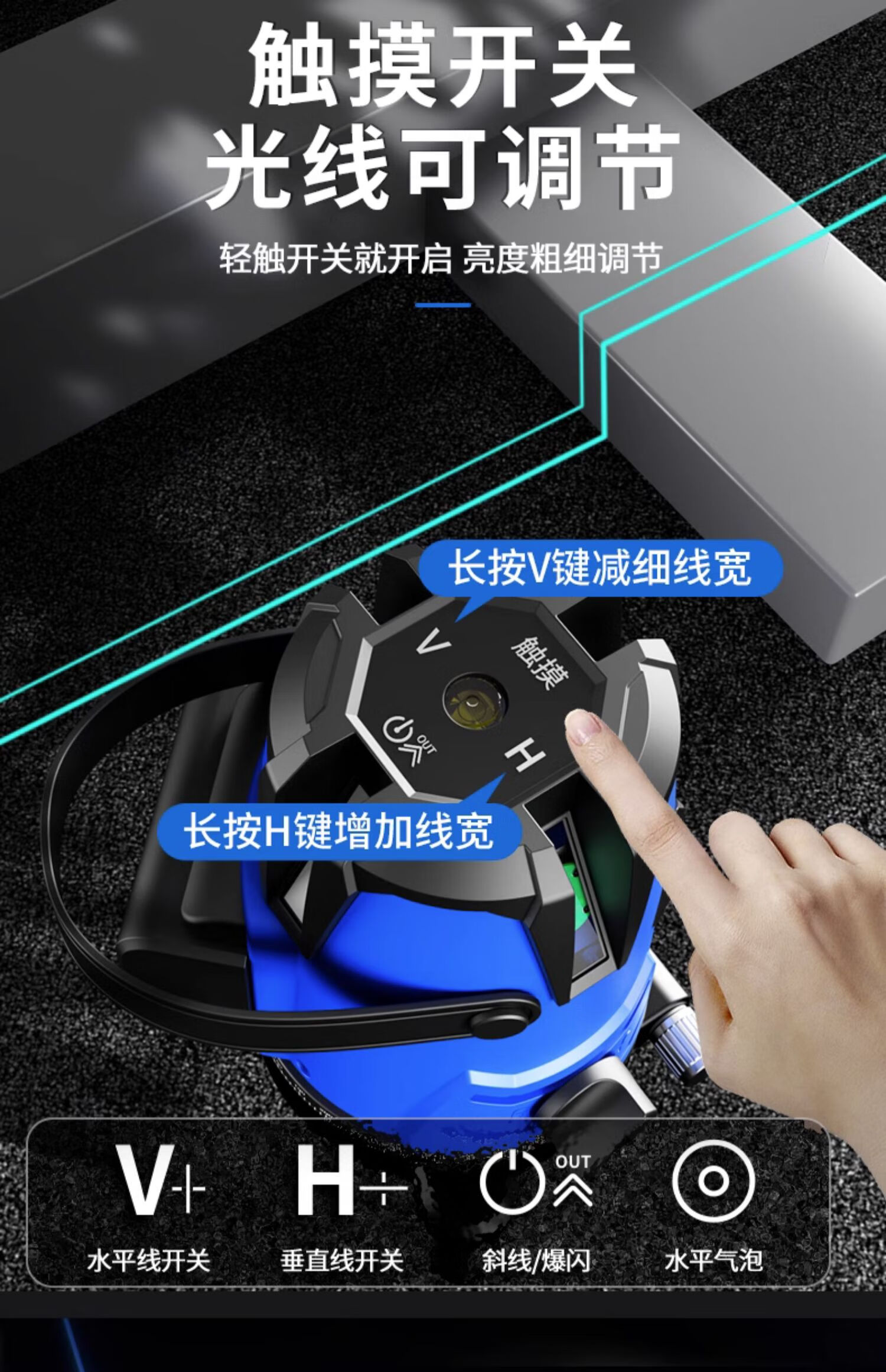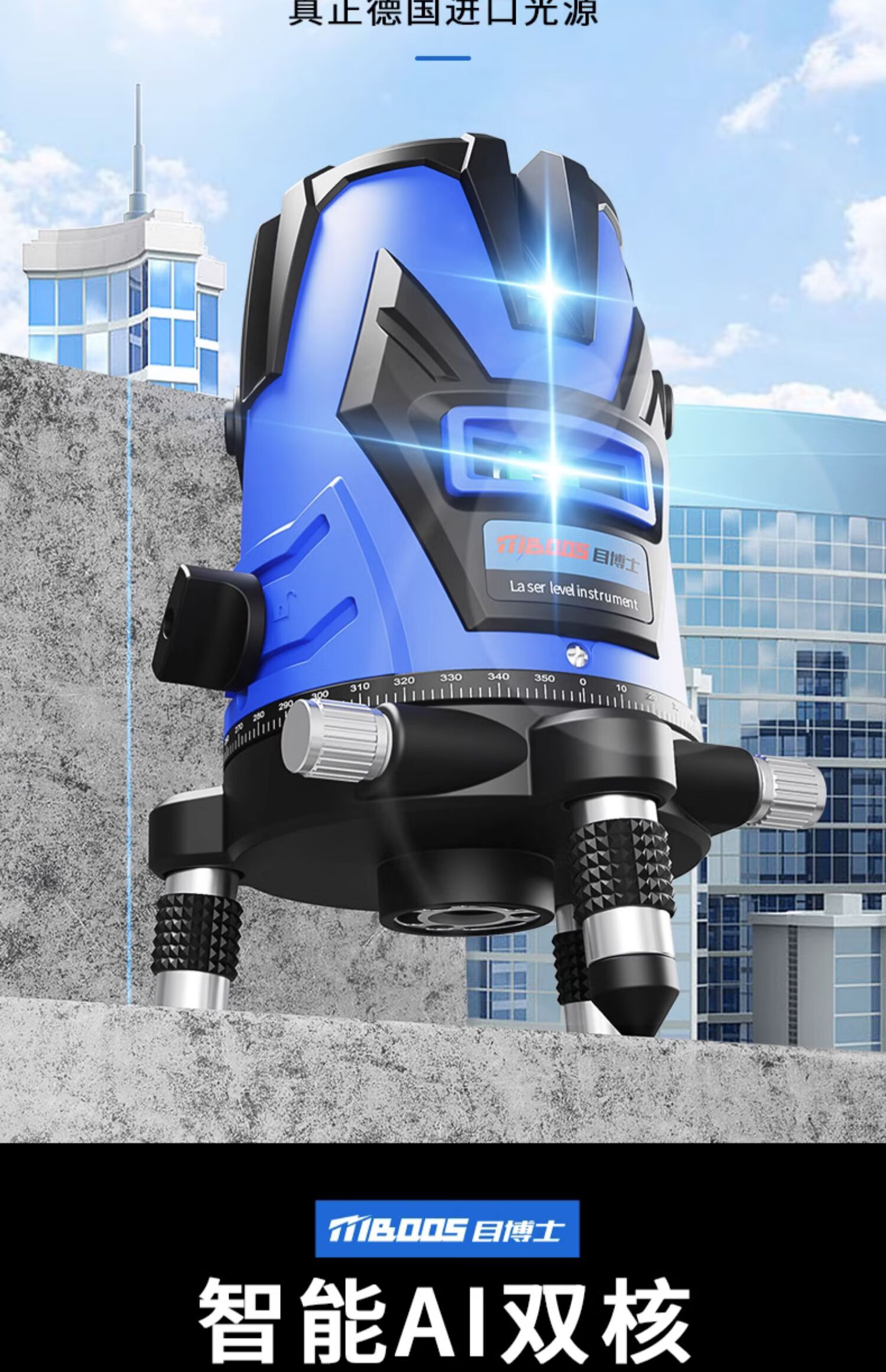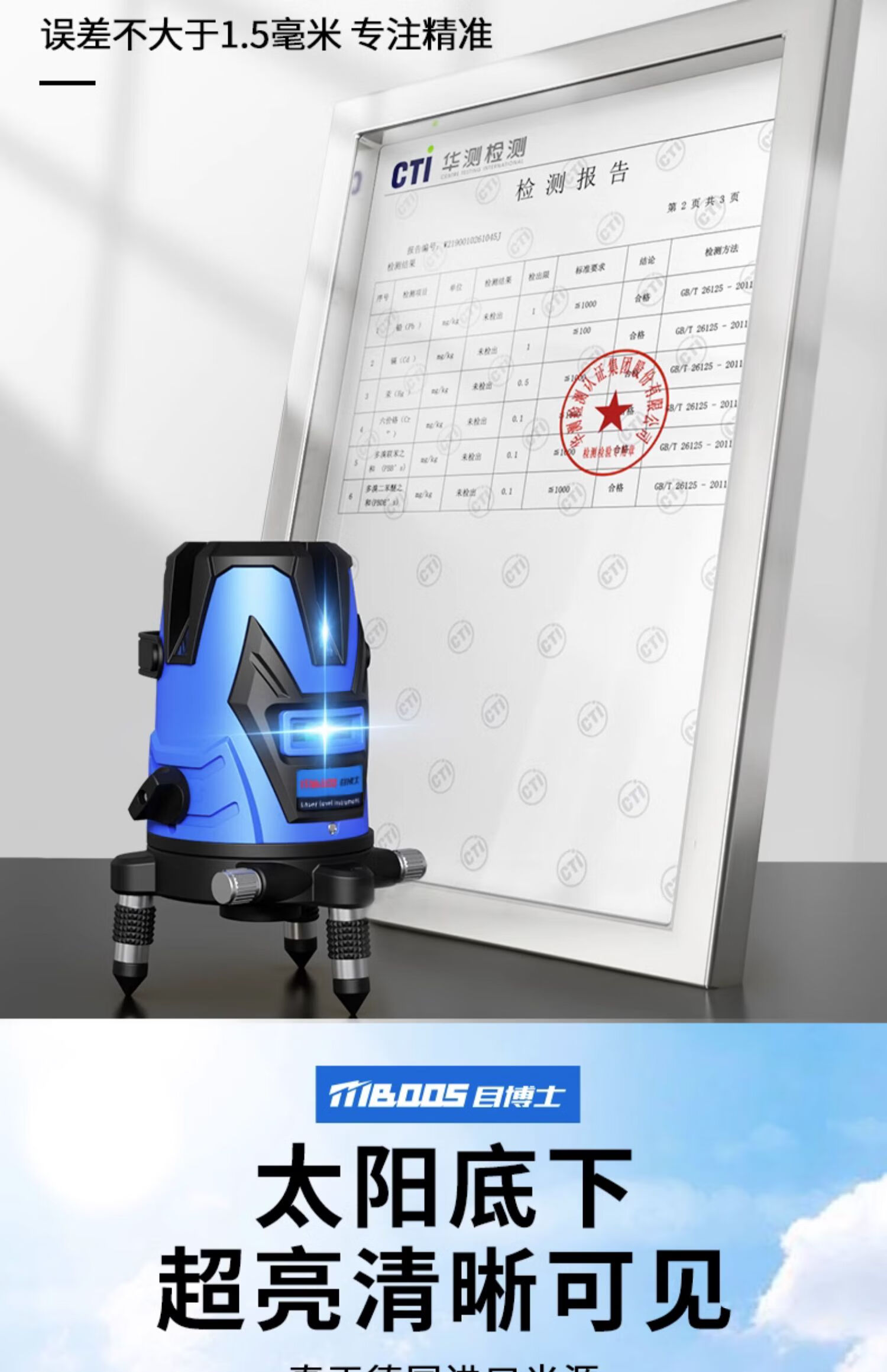 Jingxi Selection Infrared Level Meter Level High-precision Five-Line Green Light Automatic Leveling Water Meter Precision Green Light 2-Line Single Lithium Battery No Specifications