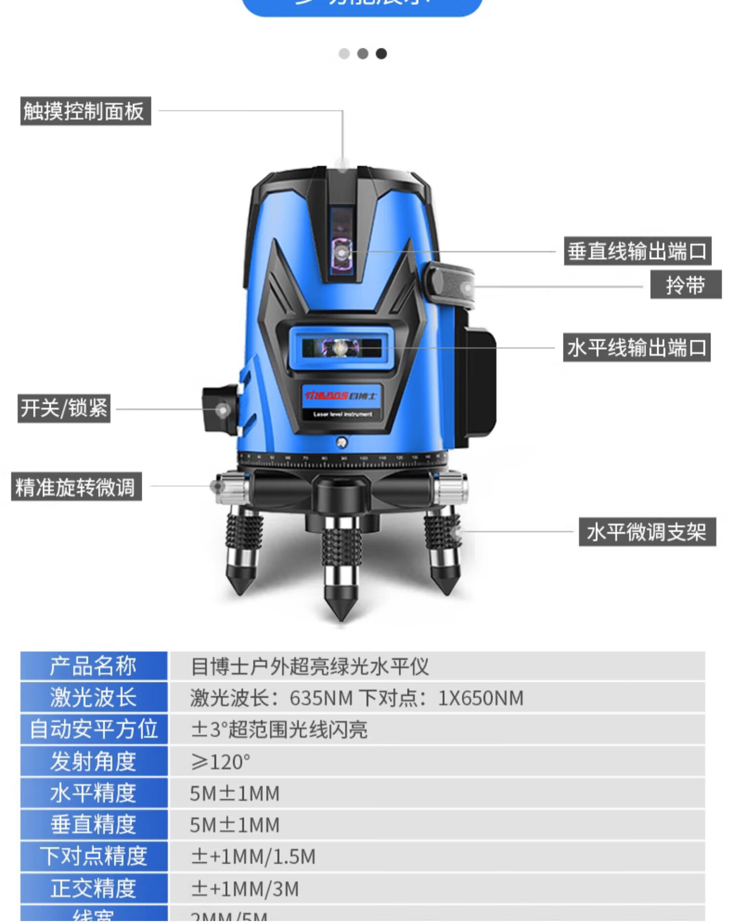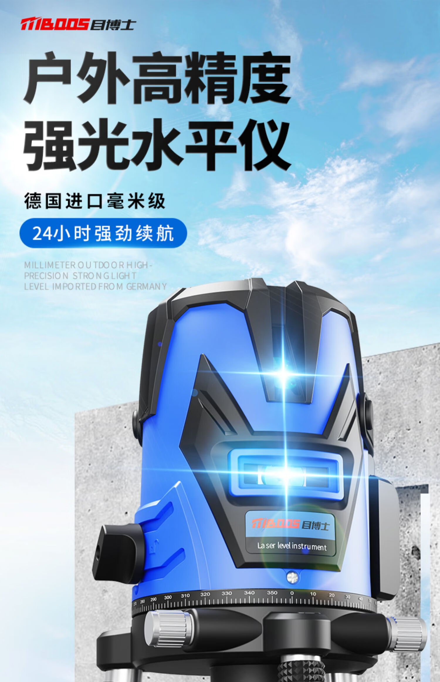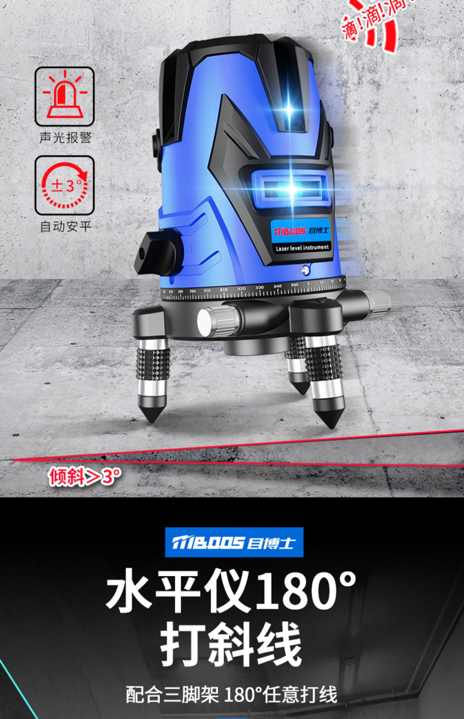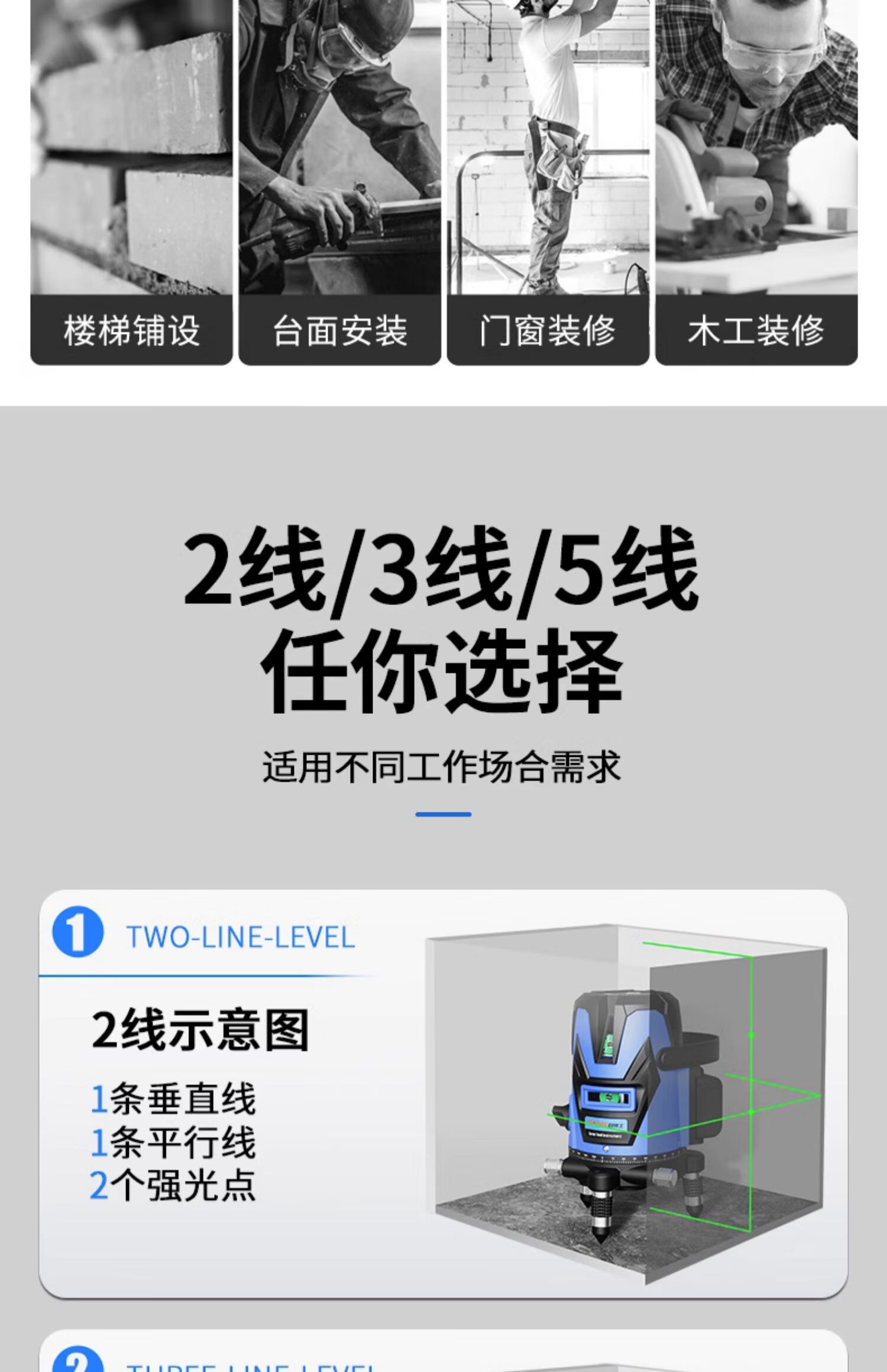 Jingxi Selection Infrared Level Meter Level High-precision Five-Line Green Light Automatic Leveling Water Meter Precision Green Light 2-Line Single Lithium Battery No Specifications