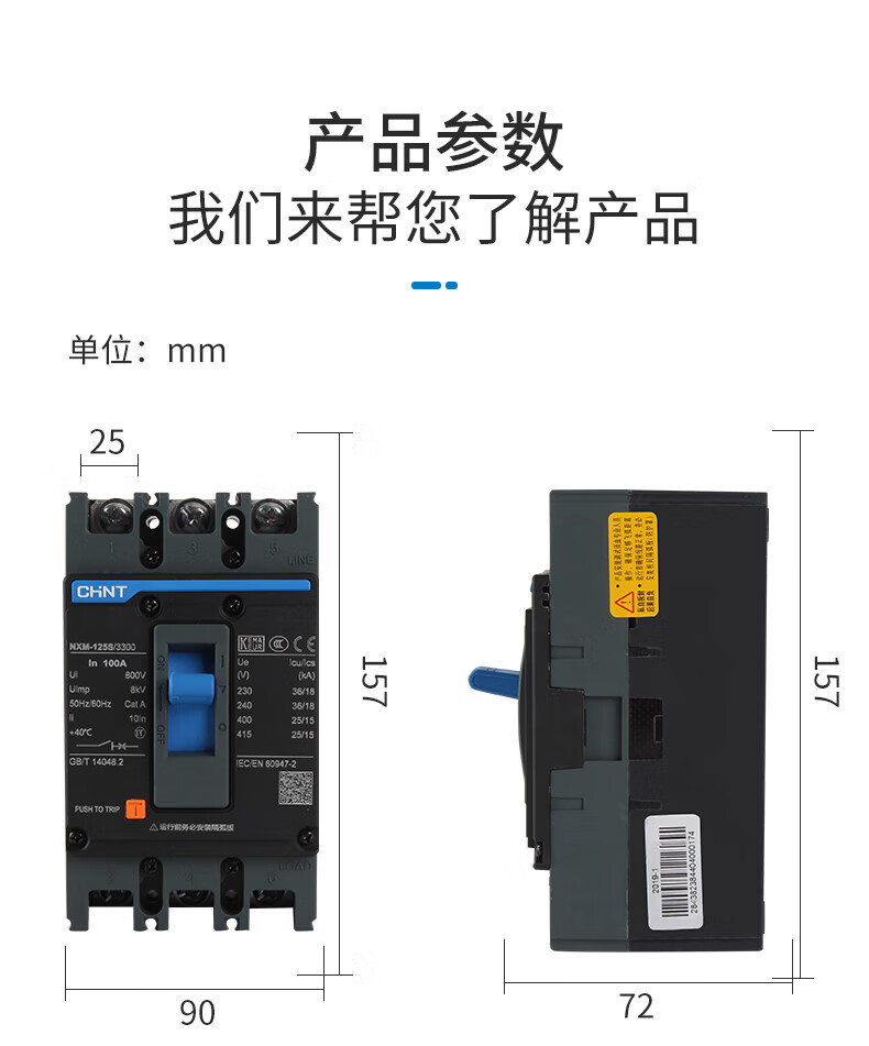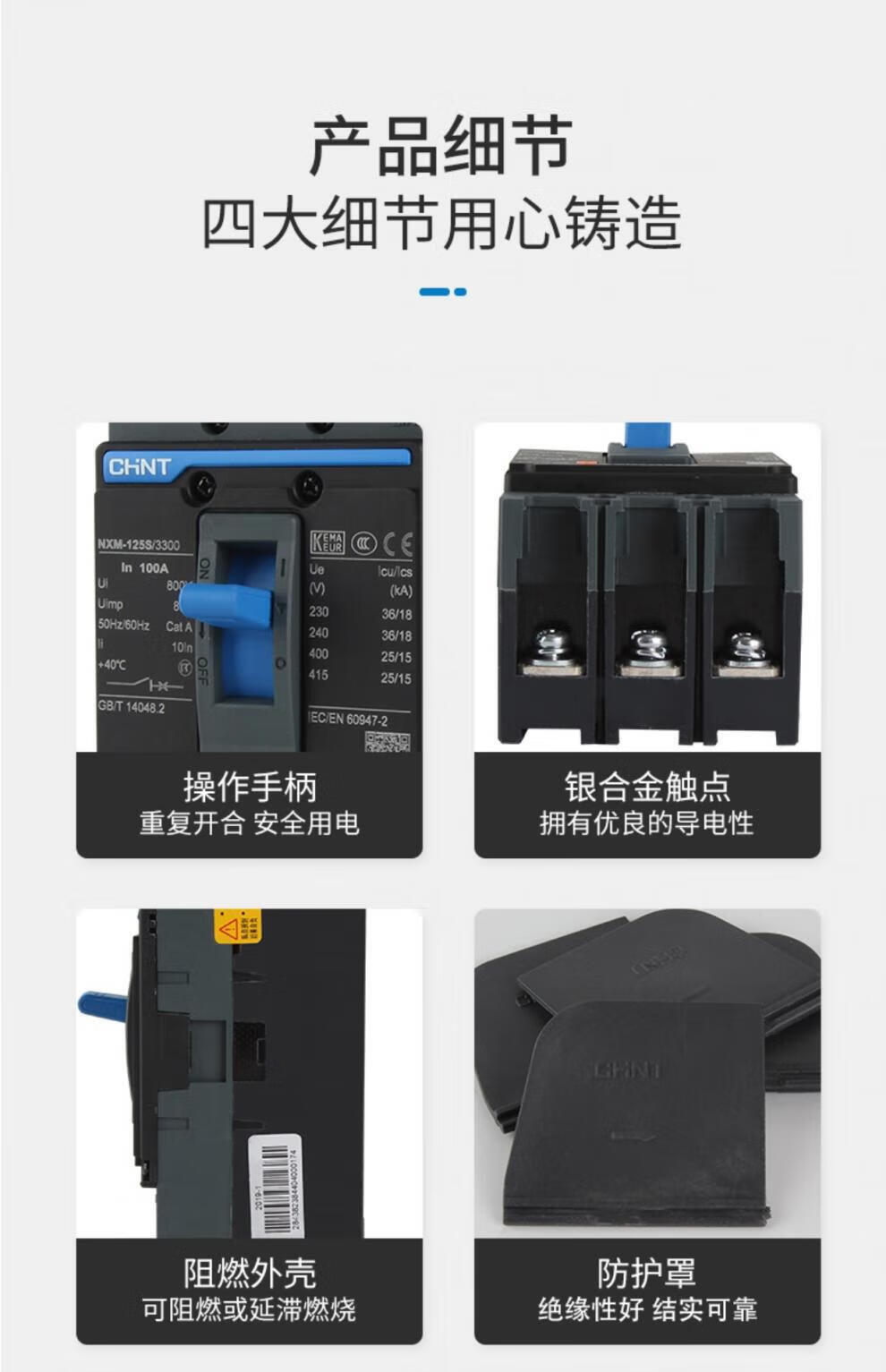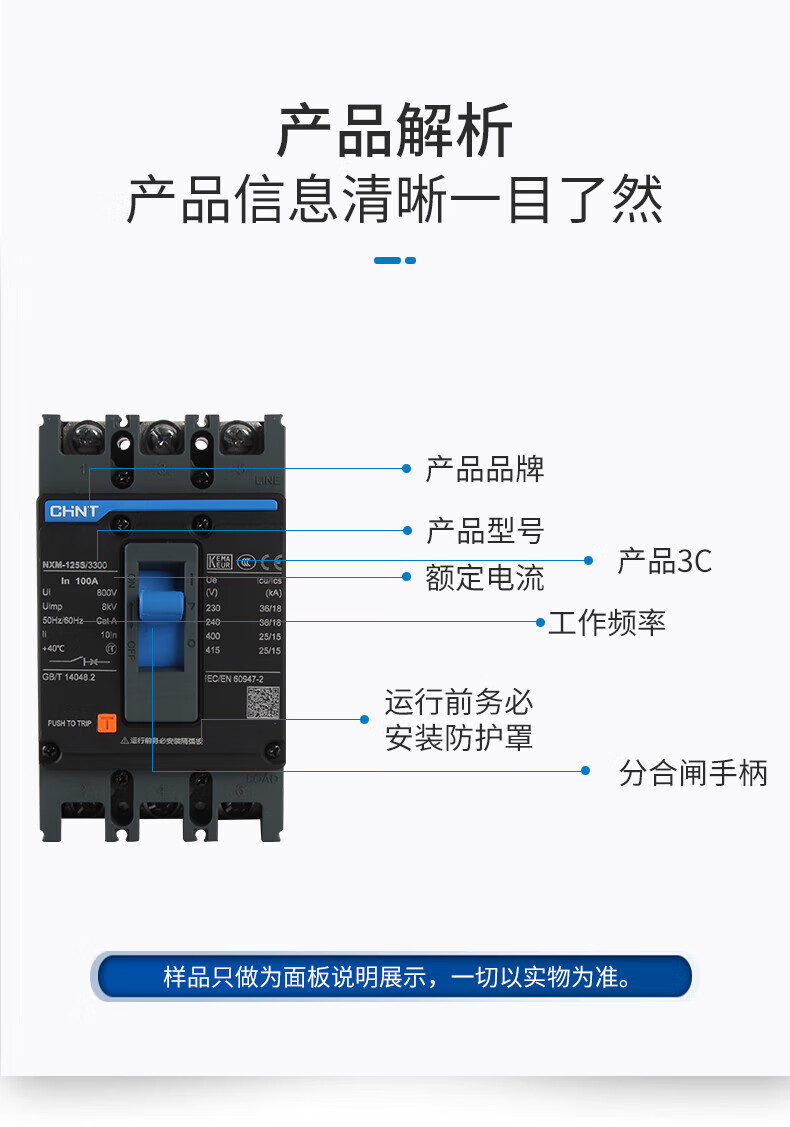 Chint Kunlun molded case circuit breaker NXM-63S/3300 125 160 250 400 630 800A 3P4 3P 1250A
