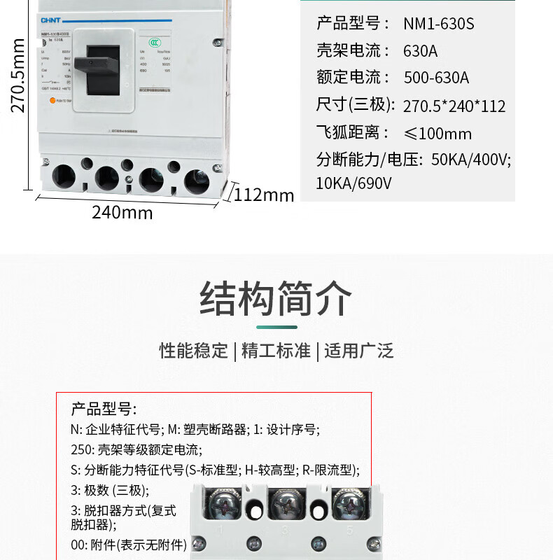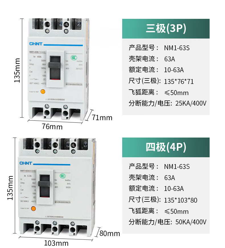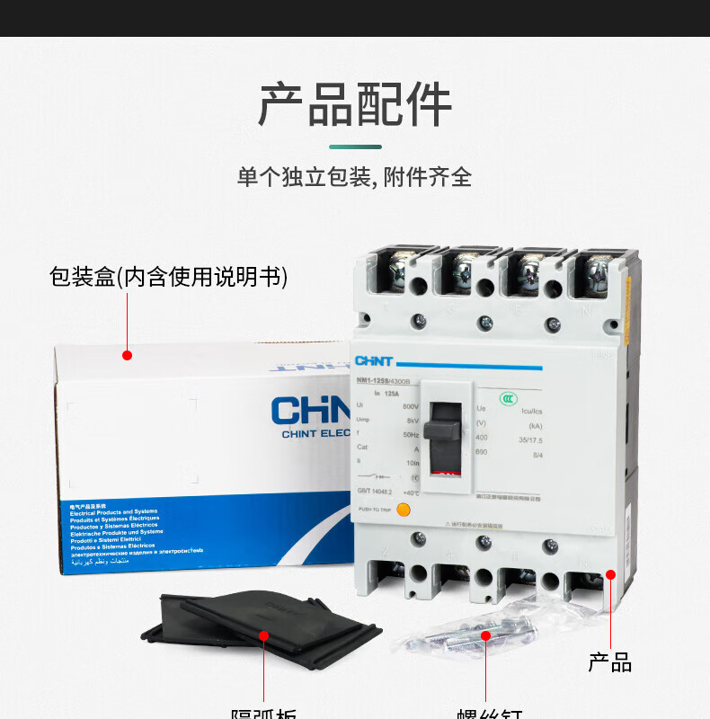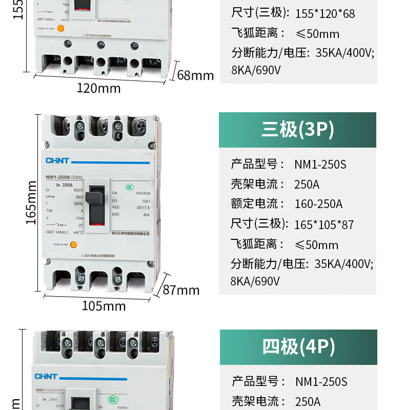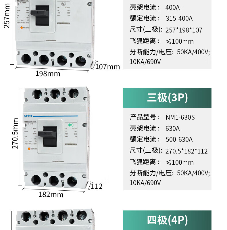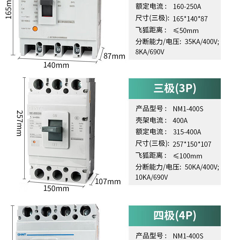 Chint plastic case circuit breaker 100A200 plastic case type 400 air switch 3P three-phase four-wire leakage 380v 10A 4p