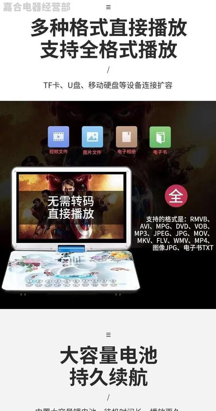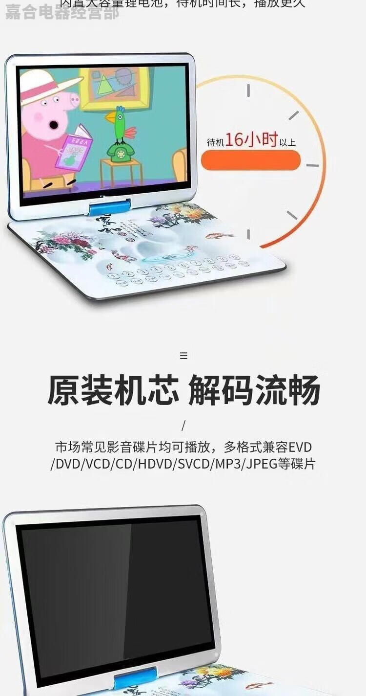 SAST mobile DVD player, portable EVD, small TV for children and the elderly, CD/VCD integrated high-definition WF player, 39-inch high-definition eye protection screen, black host + gift package
