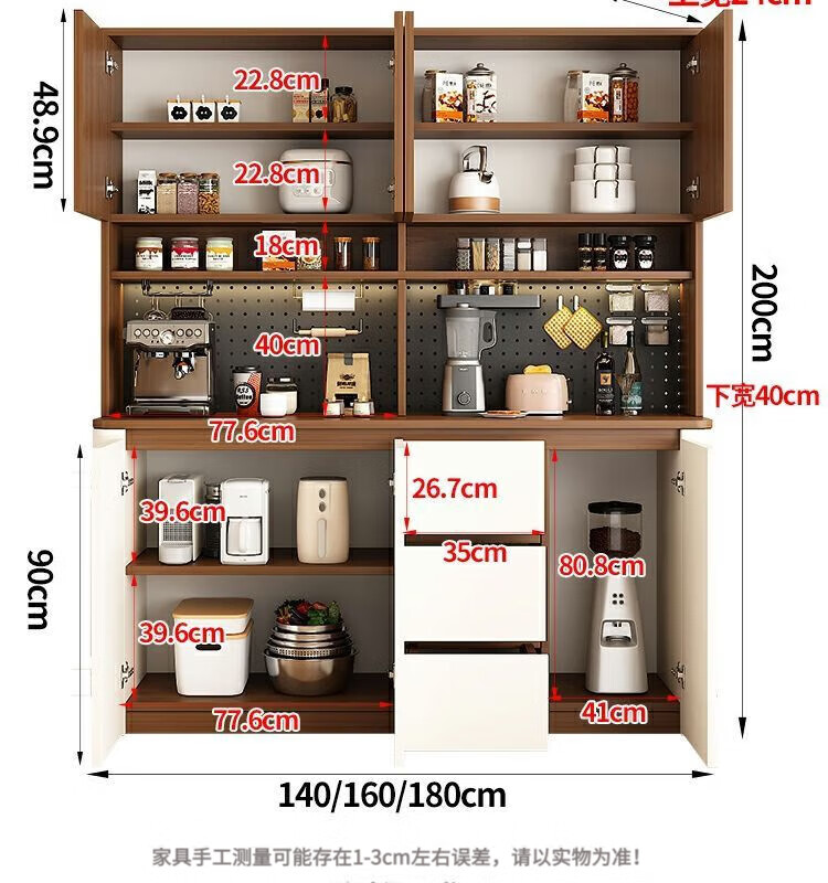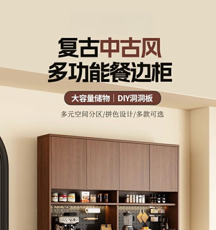Feiguiren 2026 new style medieval sideboard wine cabinet storage rack multi-functional hole board wall living room storage kitchen cabinet 120*40*200 walnut+cream high style