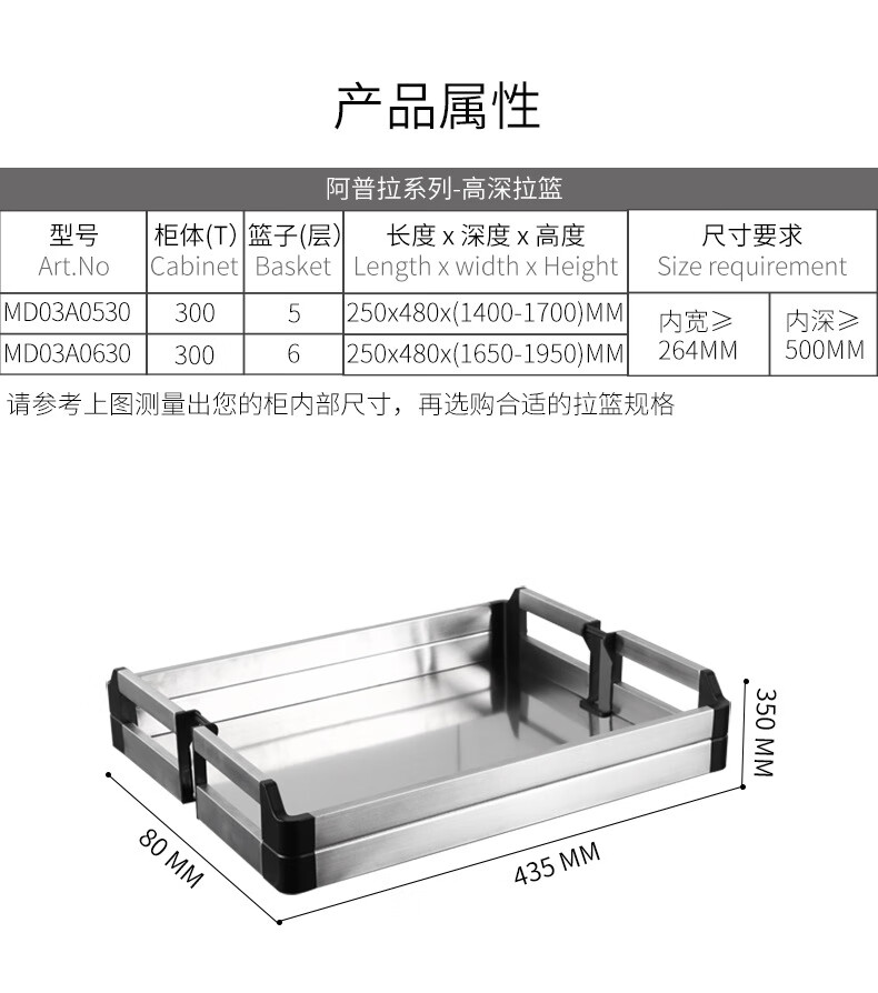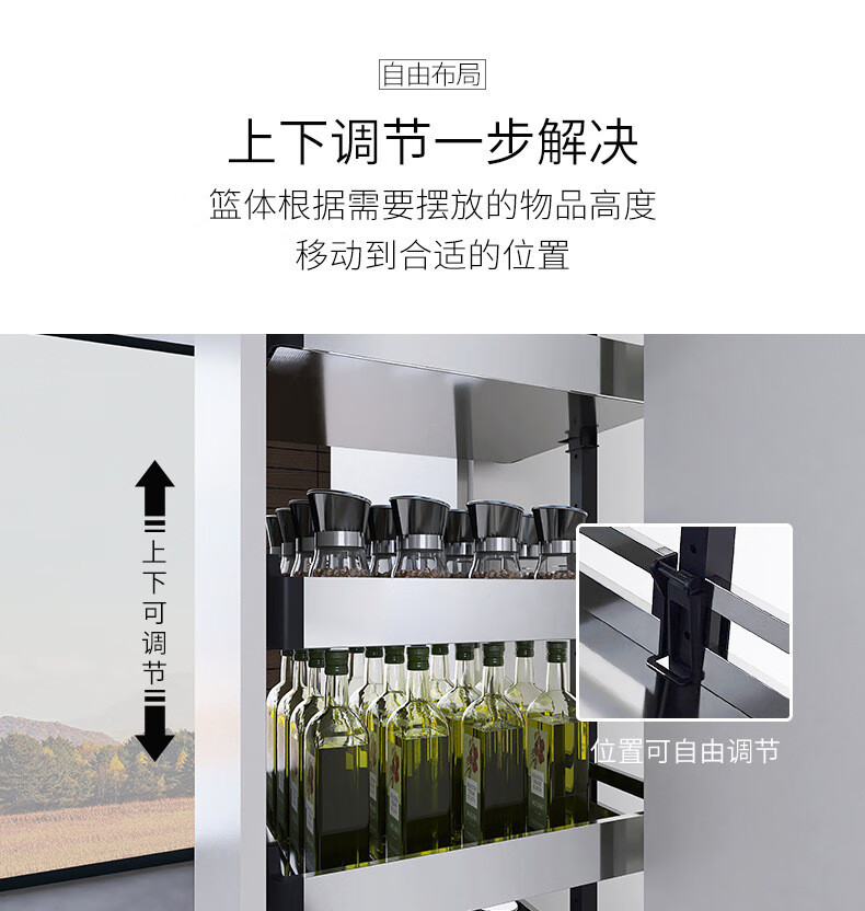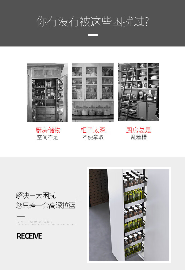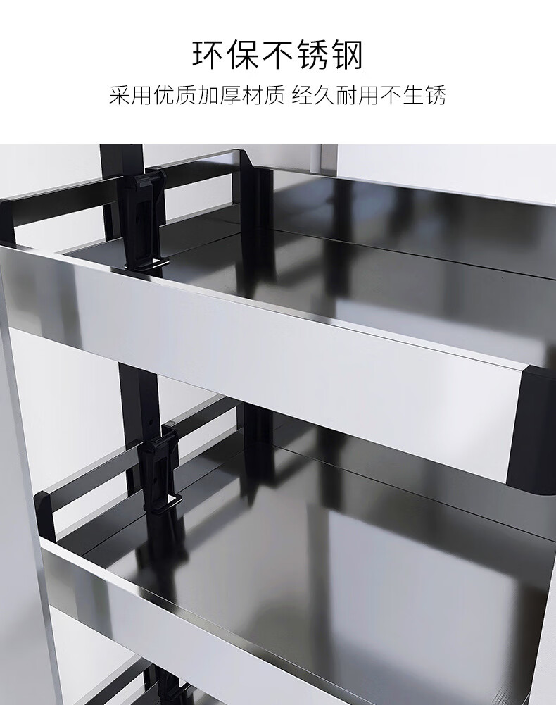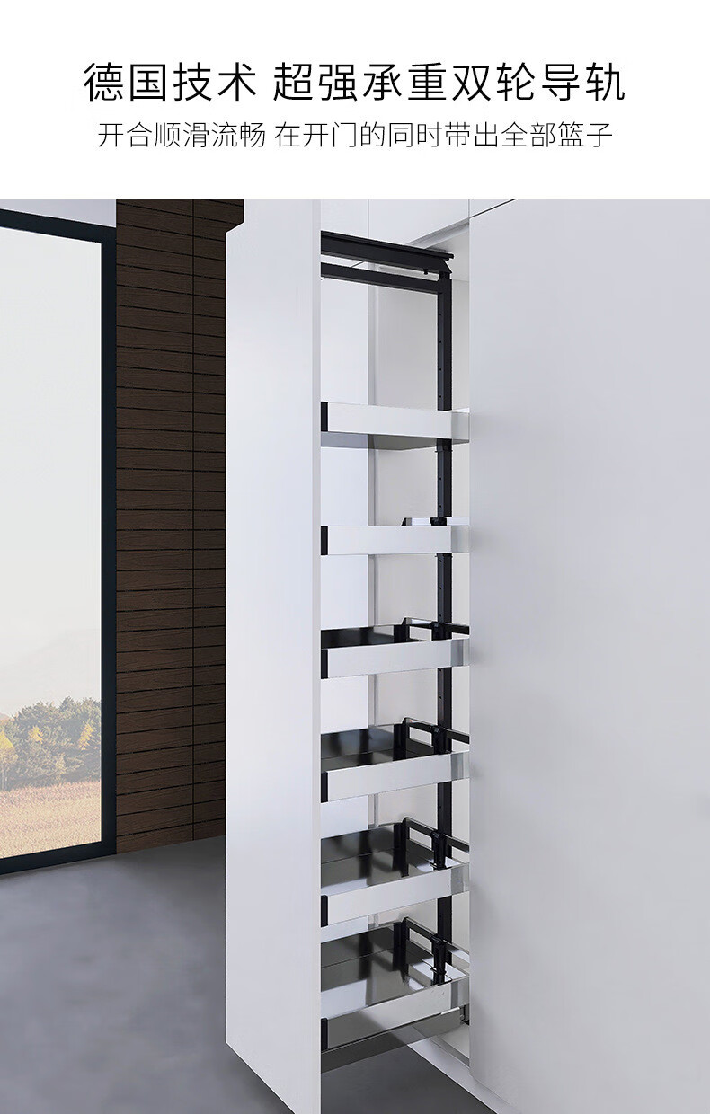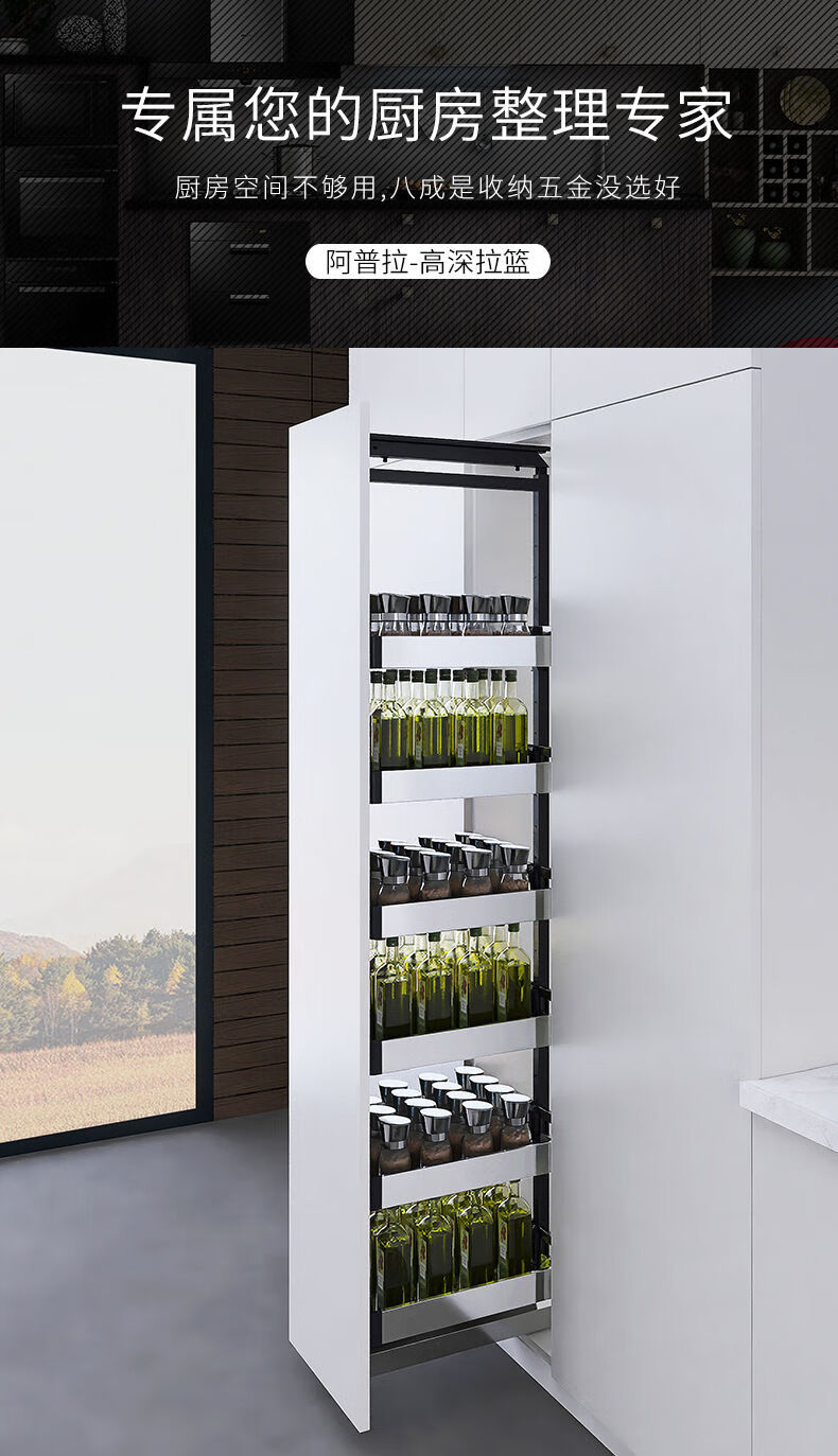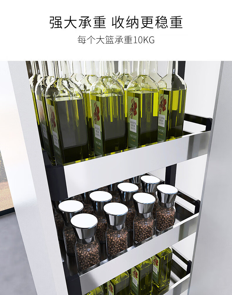 Kangyale stainless steel tall cabinet large monster pull basket cabinet seasoning basket high-depth linkage pull basket with heavy-duty guide rail 300 cabinet-4-layer basket
